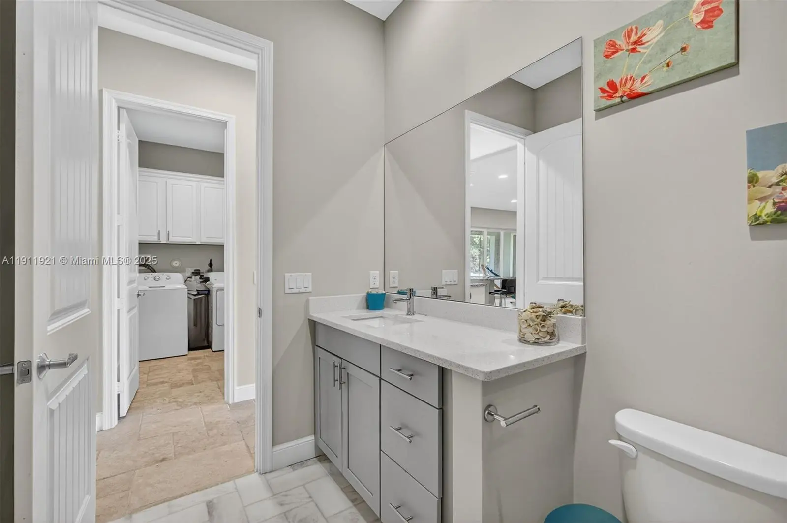 LOCATION! Immaculate 4 bedroom, 3 full bath, 1 half bath home in Jupiter with large yard and Freedom of No HOA. This residence includes a multi-purpose/office room and features a gourmet kitchen with center island, stainless appliances, and PGT impact-resistant casement windows and sliding doors. Interior highlights include travertine marble flooring in the living room, oversized bedrooms, dual closets in the primary suite, and an expanded master shower. Custom Constructed with ICF exterior walls and a durable metal roof, the home also offers a 3-car garage, stamped concrete driveway, central vacuum, and dual A/C equipment with zoned climate control. Panasonic solar system. Outdoor living is enhanced by a spacious lanai, partially fenced yard, and plenty of room for a swimming pool.