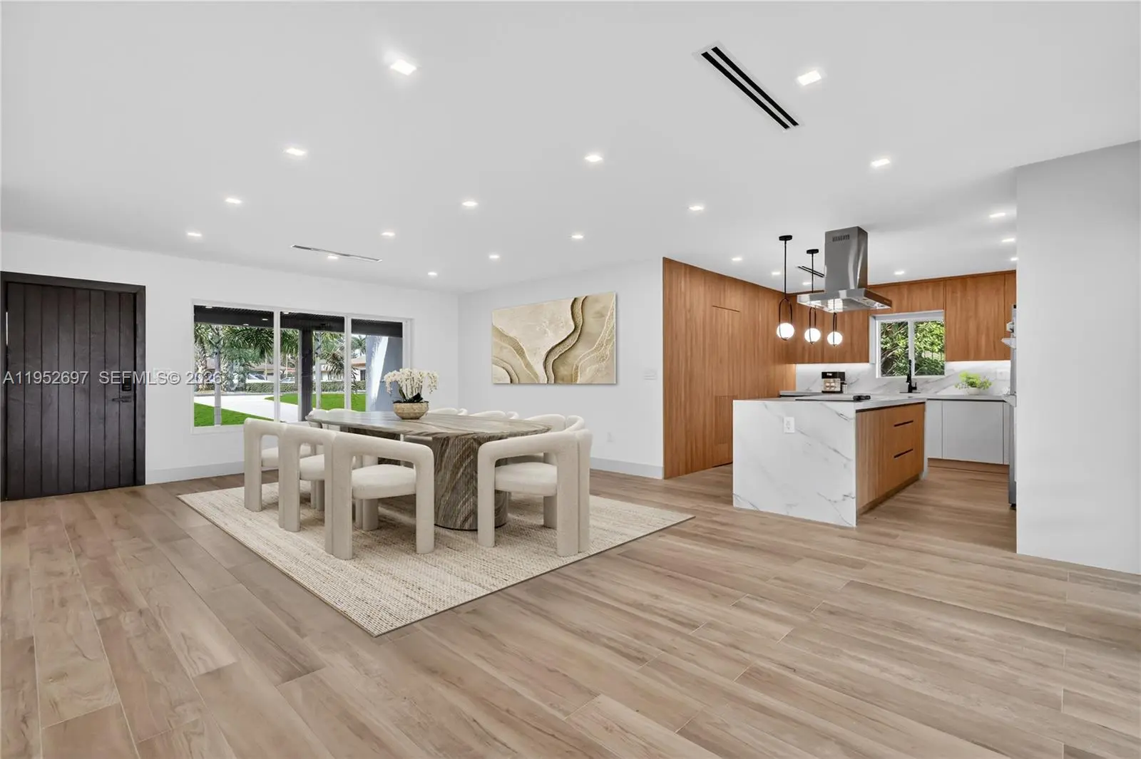 Beautifully renovated single-story home in Delray Beach featuring 3 bedrooms, 2.5 bathrooms, and 1,968 SqFt of living area on an 8,275 SqFt corner lot with only one neighboring property, offering enhanced privacy. Open-concept floor plan with abundant natural light, ideal for comfortable living and entertaining. The property offers a modern kitchen with custom cabinetry, quartz countertops, and stainless steel appliances. Spacious primary suite with walk-in closet and updated en-suite bathroom featuring double vanity and contemporary finishes. Recent improvements include new roof, impact windows, and new HVAC system. Large driveway with capacity for up to 5 vehicles, providing dual access from both the main street and the side street, a rare and highly desirable feature. Car garage. Private backyard with room for outdoor entertaining or future enhancements. Convenient location close to beaches, dining, shopping, and major roadways. Move-in ready. No HOA. Virtually staged photos are for illustrative purposes only. Furnishings shown are not present and are not included in the sale. The pool shown is a digital rendering of a proposed improvement; construction has not begun and remains subject to governmental permit approval. The purchase price does not include the cost of pool construction. No representation is made that the pool will be completed unless expressly agreed in writing. Buyers must independently verify all plans, approvals, and costs.