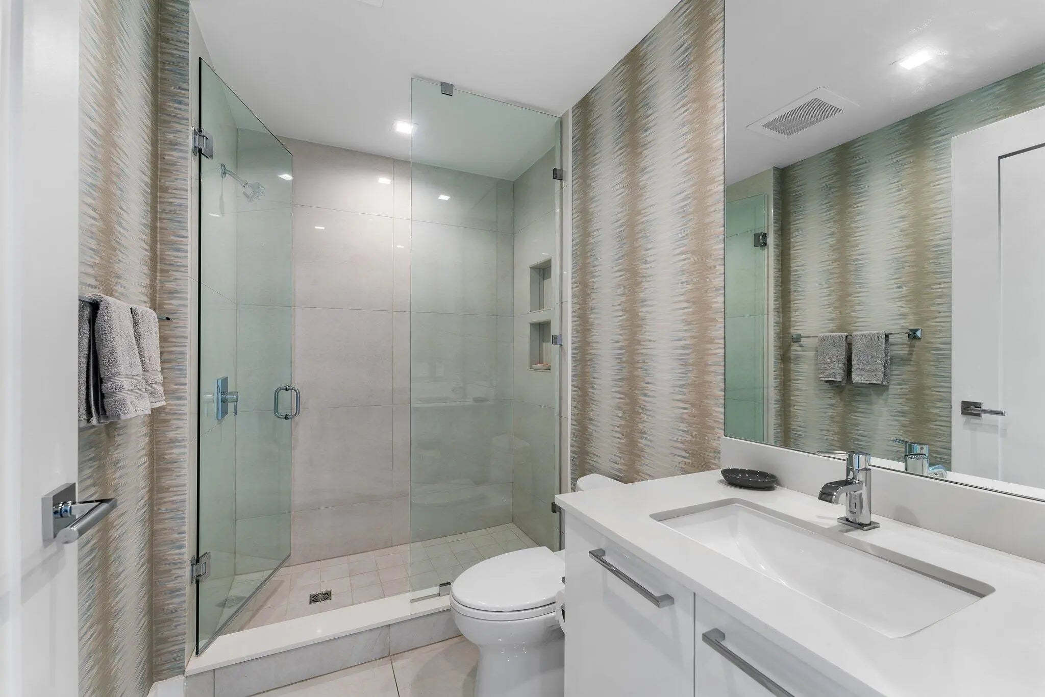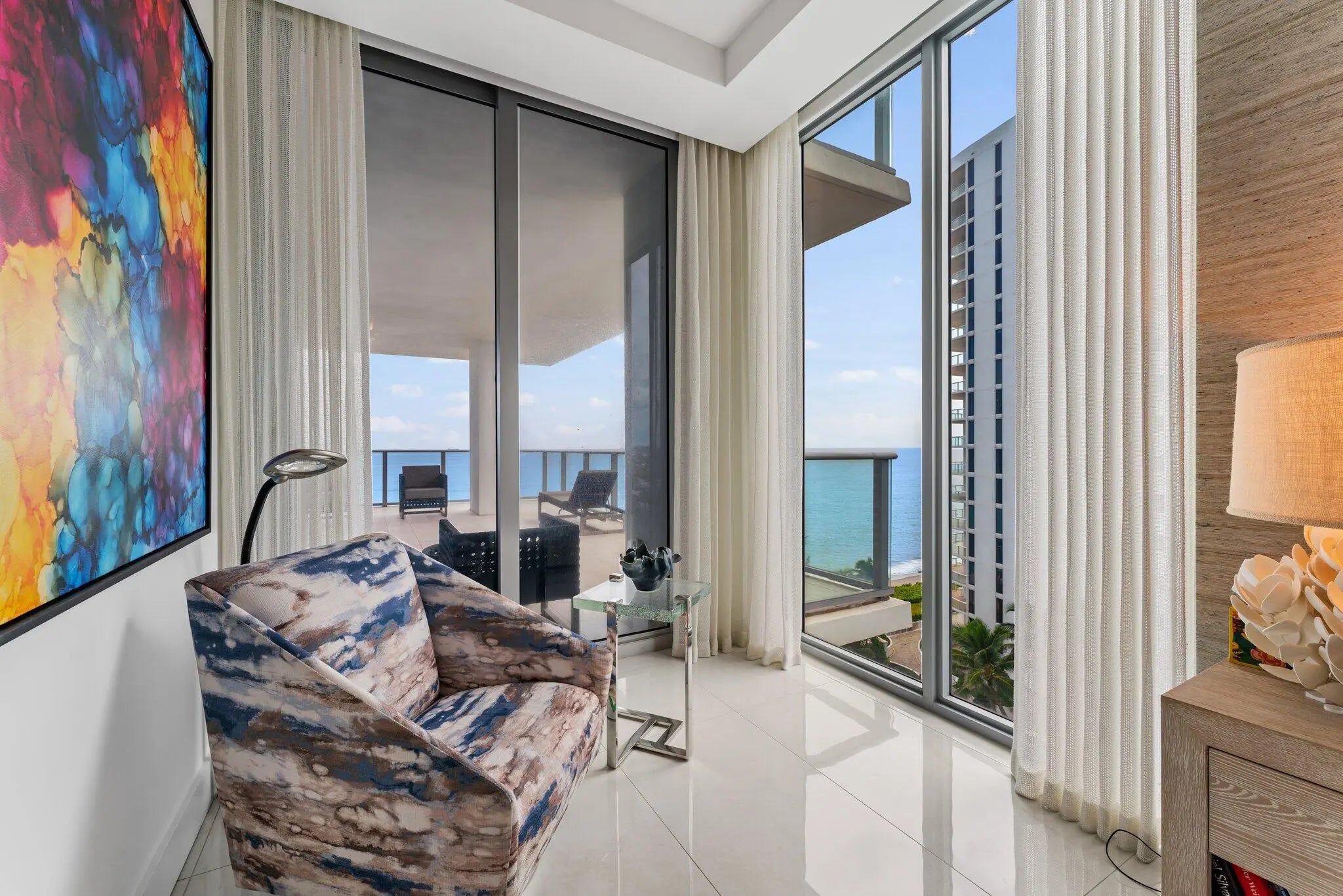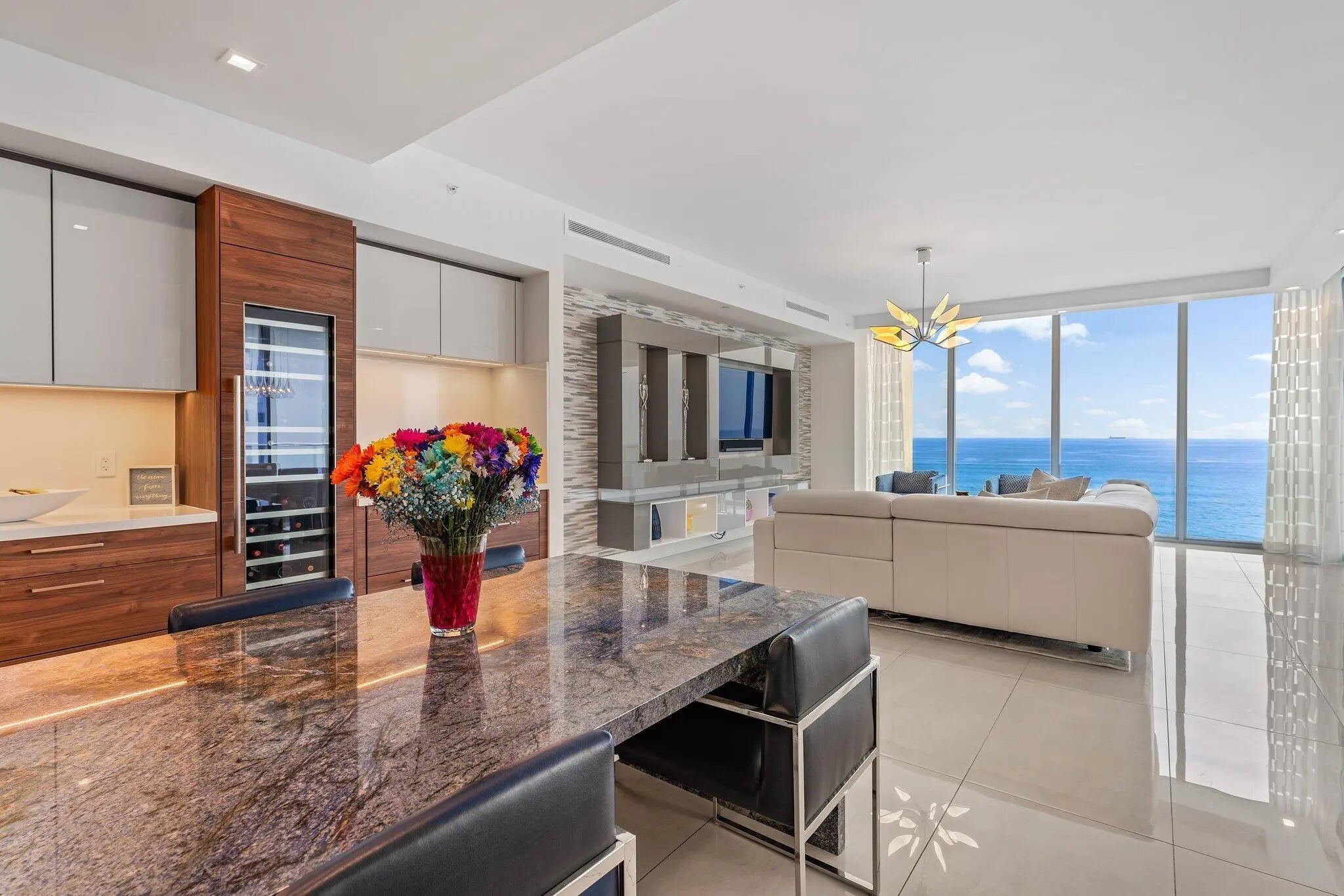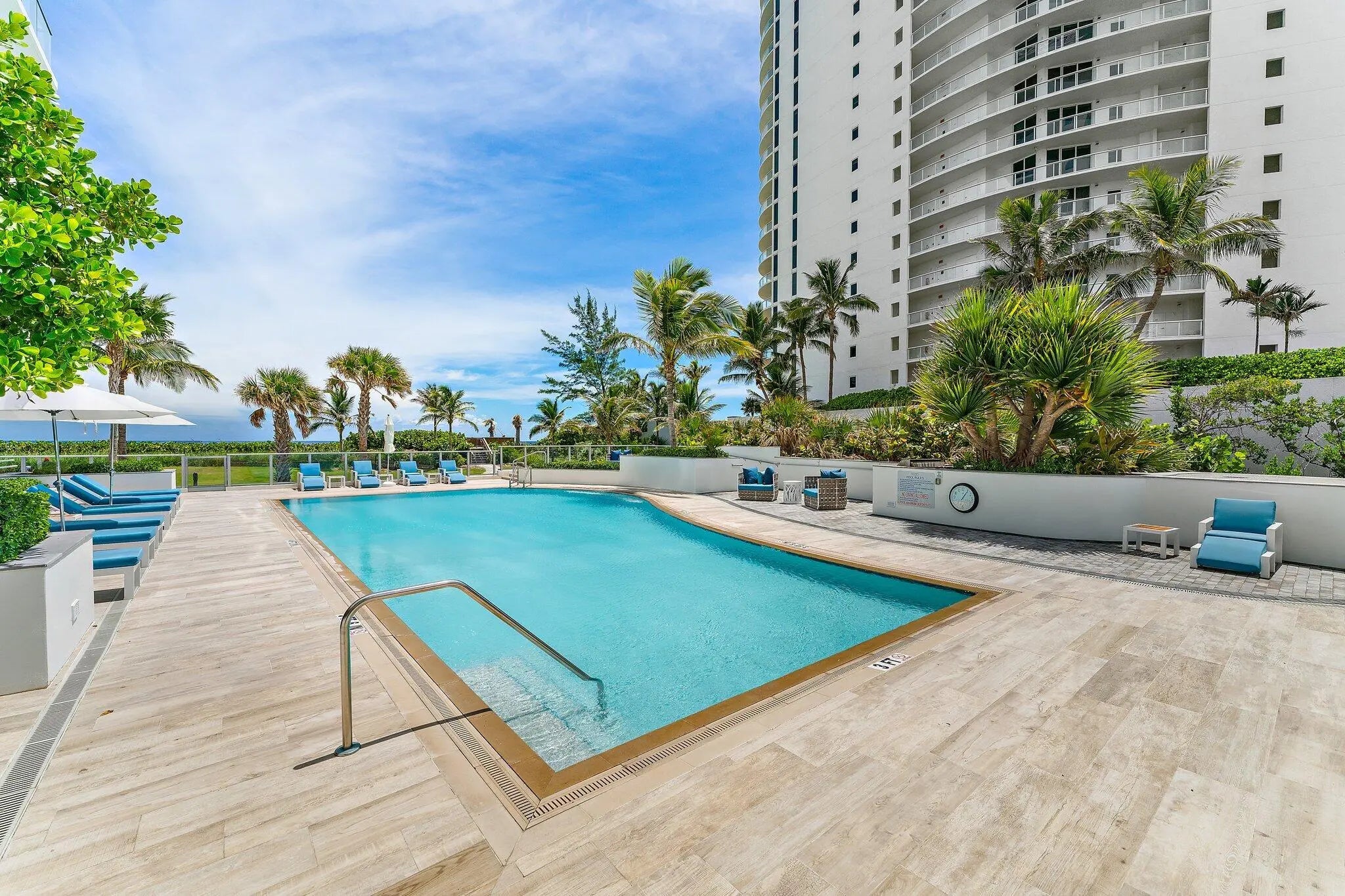 Experience the finest in Ocean to Intracoastal living in 5000 N. Ocean Drive, the newest building on Singer Island. Located directly on the sand, this boutique luxury building has only 48 units, and this particular suite enjoys preferred southern exposures which offer a ''light and bright'' atmosphere all year round. Your family will enjoy two large entertainment areas - one directly on the ocean near the kitchen and dining area in the ''Great Room'', and the other space, the ''Family Room'' facing the wide water of the Intracoastal Waterway. Enjoy morning coffee with the sunrise, and evening cocktails with the sunset - all in the same property. Best of all, 5000 N. Ocean boasts the most luxurious amenities imaginable: 24/7 manned security at the street; concierge lobby services; under building parking with two spaces for this suite; state-of-the-art fitness center; community lounge with bar; pool with patio and BBQ area; walking paths and gazebo with two sets of stairs to the beach, and more.