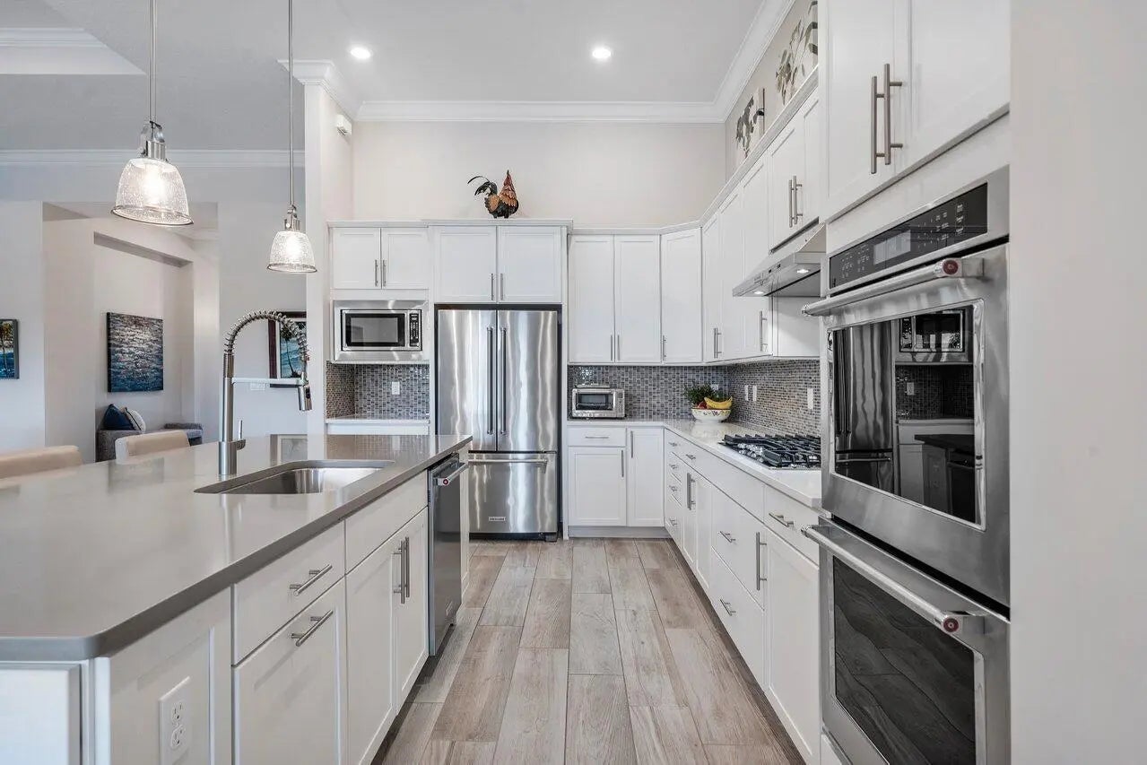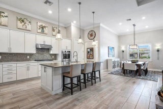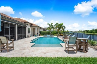 Situated on an oversized, custom landscaped, lakefront lot in the much sought after community of Sonoma Isles, this 4 bedroom, 3 bath home has it all. The popular and rarely available Clubview floorplan is the largest one-level model in Sonoma Isles and is overflowing with upgrades. The chef's kitchen contains stainless steel KitchenAid appliances, including a gas cooktop, and built in double wall ovens, quartz countertops and custom pantry shelving. The office has custom cabinetry, a duel desk & French doors for privacy. An additional bonus/hobby room for crafts or school projects offers even more space for the homeowner. With porcelain wood look tile and crown molding throughout, Hunter Douglas window treatments and custom closet systems, this house is perfectly appointed, meticulously maintained and move in ready. Pocket sliders fully open to the screened lanai and back yard. The custom designed salt water pool and spa with sunshelf, travertine decking and PebbleTec Blue Lagoon surface is equipped with gas heater and variable speed pool pump, all easily operated with your mobile phone. The pool was constructed with the necessary footers to easily add a cage/screen if desired. The custom outdoor kitchen has everything you need with side burners, venting hood, sink and refrigerator. The garage has Racedeck flooring, loads of cabinetry and shelving and a Tesla charger. This house has impact glass throughout, a whole-house generator, carbon based full house water filtration system and the screened lanai has motorized hurricane rated screens. Sonoma Isles is conveniently located minutes to the beaches, shopping, dining, I-95 and the Turnpike. Come see this magnificent home today!