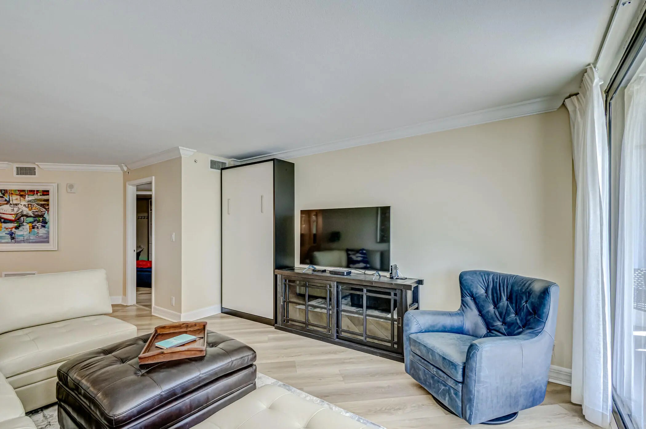 Discover coastal living in this turnkey 1BR/1.5BA Singer Island condo with sweeping ocean views and the heated pool below. Neutral tones and tasteful decor create a welcoming setting. The living area offers a dry bar and Murphy bed for guest flexibility and the kitchen features granite countertops and KitchenAid appliances. Resort-style amenities include valet, 24/7 concierge and staffed gate, beach access, heated pool, hot tub, tennis, pickleball, bocce ball, men's and women's fitness centers with steam and sauna, billiard room, library, card room, 1BR guest suite, beachside restaurant with eat-in or delivery and the 43rd-floor Marquis Lounge serving drinks & dinner with 360-degree views. Only 15 minutes to world class shopping, dining and entertainment. 25 minutes to PBI.