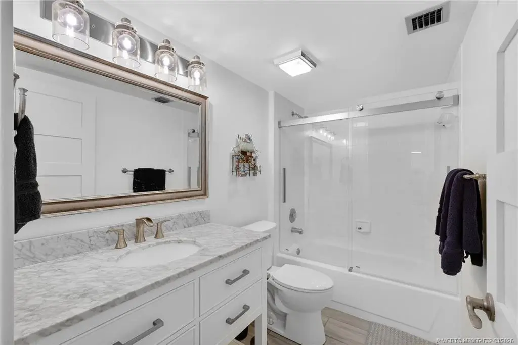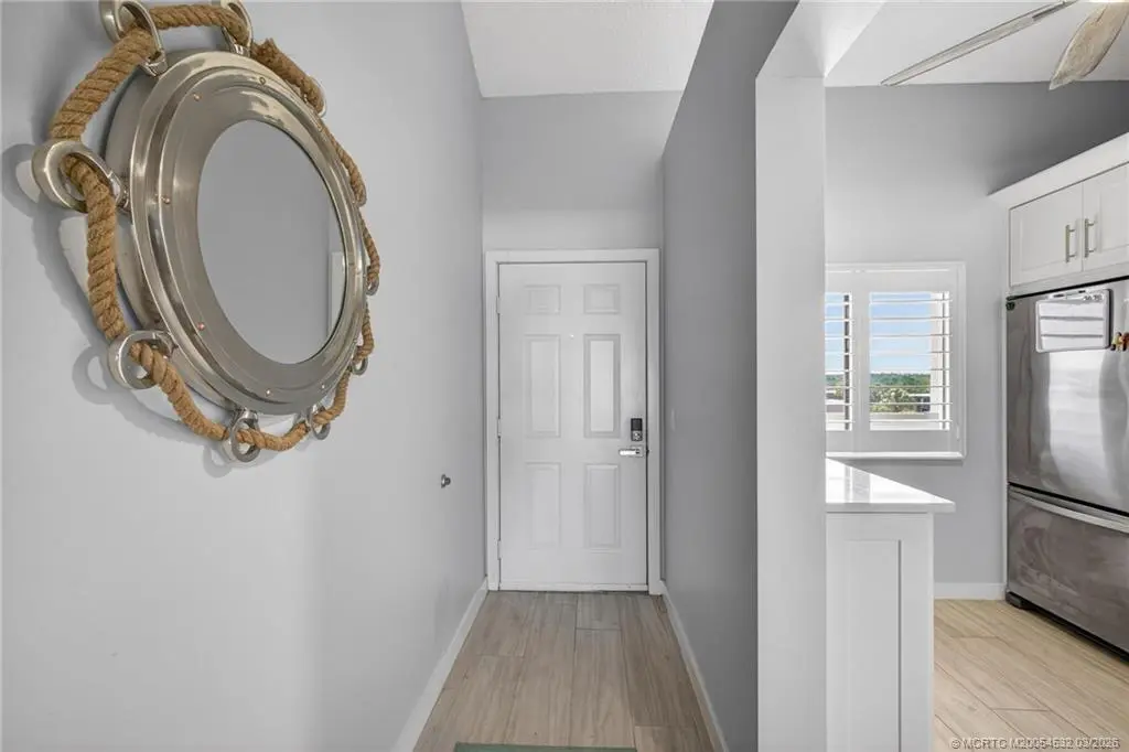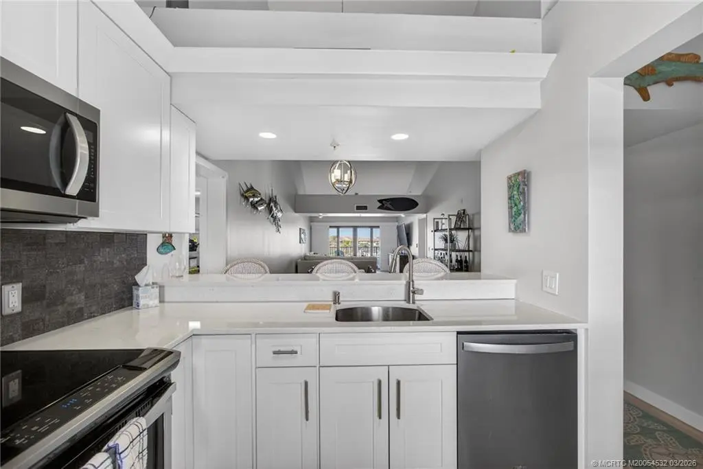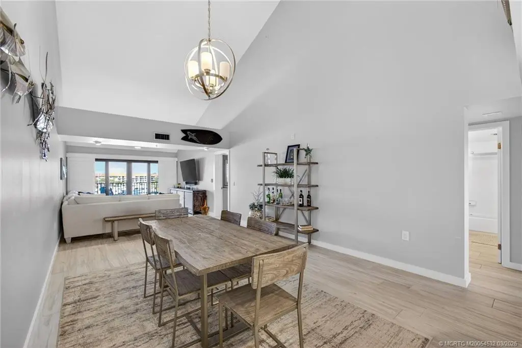 Experience Penthouse Living with Unrivaled Marina Views in this renovated 5th-floor residence, where dramatic 20-foot vaulted ceilings and a seamless open layout offer an roomy, sunny feel found only on the building’s top level. The interior features wood-look ceramic tile flooring; a designer kitchen (2019) finished with custom cabinetry, quartz countertops, and stainless appliances. Relax on your expansive balcony while watching the boats in the marina. Impact glass in the master and patio, plantation shutters throughout, plus a sizeable laundry/bonus room perfect for a home office, third bedroom or extra storage. Residents enjoy resort-style amenities including four lakeside pools, tennis and pickleball. Located just one mile from the friendly beaches of Jupiter and Juno, and minutes from world-class dining and shopping. SOLD FURNISHED—including King Tempur-Pedic mattress (except for wall art and certain personal items) - enjoy the ultimate Florida lifestyle!