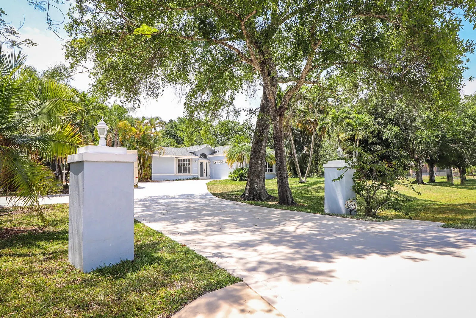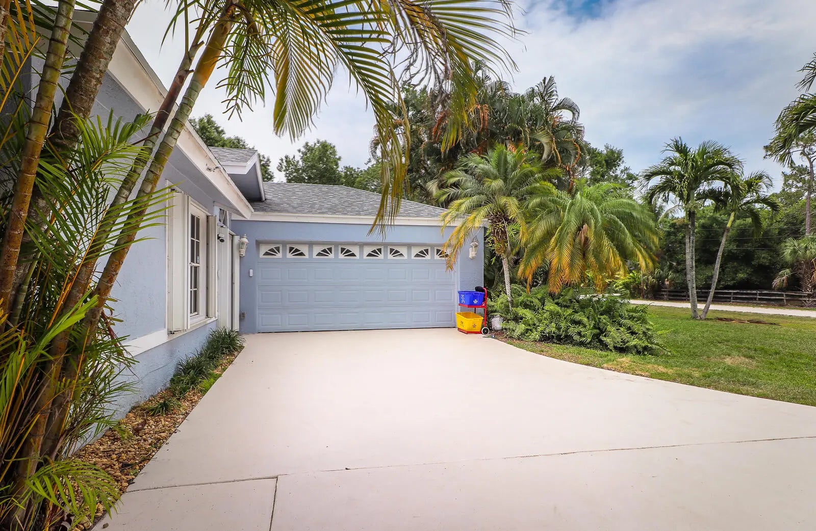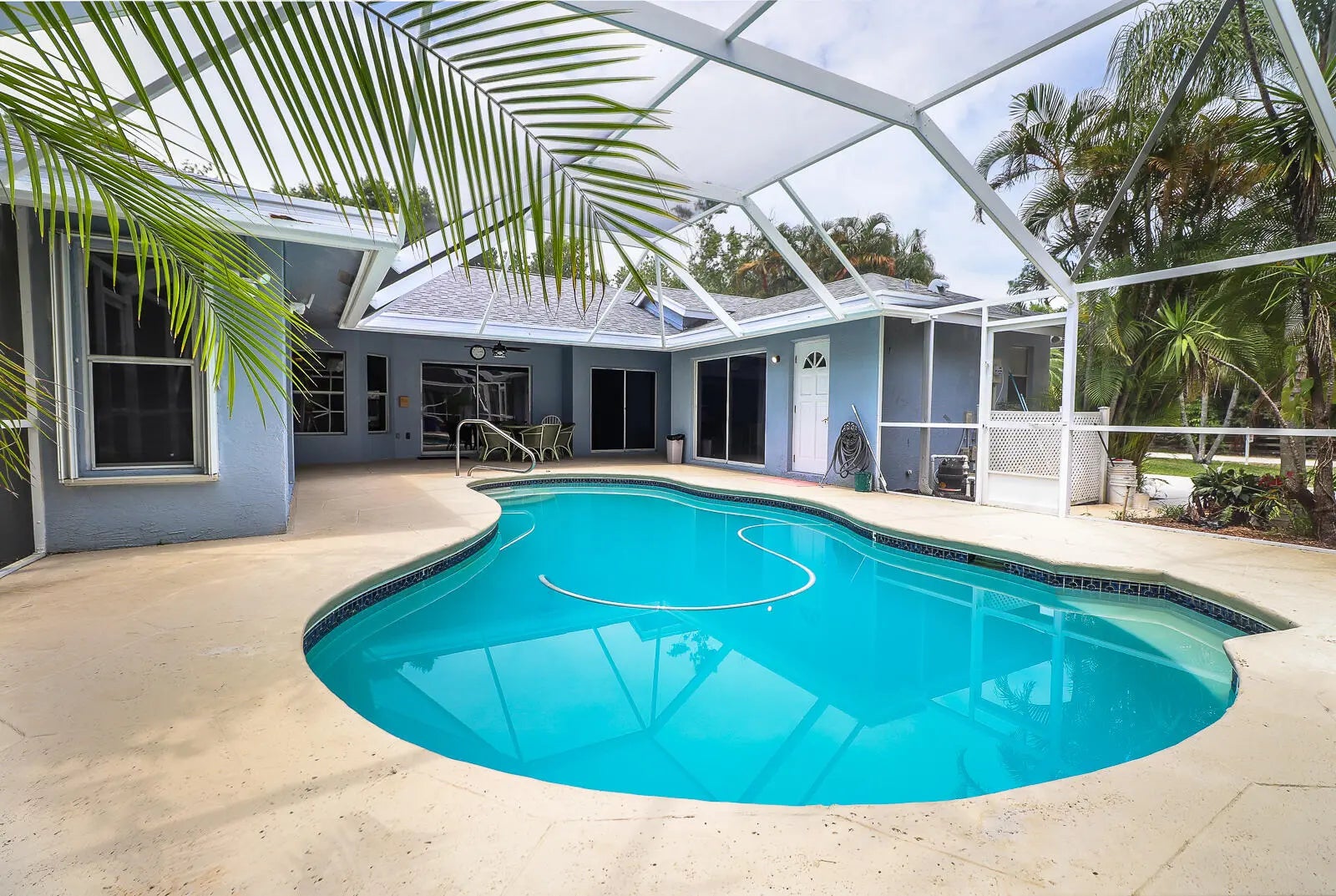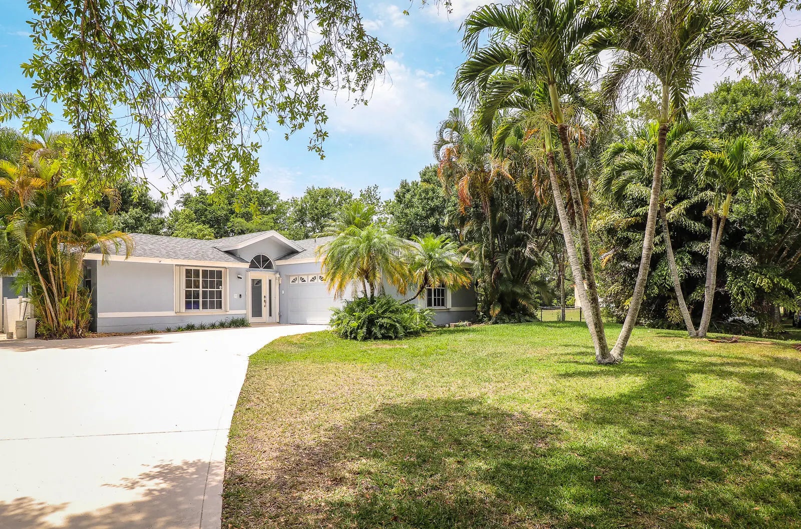 This courtyard-style CBS home on a 1.17-acre lot in Palm Beach Country Estates features a 3BR/3.5BA/2-car garage main house and additional detached 1BR/1BA/1-car garage guest house that was newly-remodeled in June 2025. There aren't many opportunities to own a property like this one. In addition to being in an area of PBCE that is extra peaceful - far from the highway - it is located just steps away from the spectacular Riverbend Park - featuring many miles of tree-shaded hiking, biking, and horse trails. The full-featured guest home is perfect for in-laws or possible short/long-term rental income - with 700sf of living area (included in the total) and its own screened porch and garage. Newer roof on the main house (2018) and brand-new roof on the guest house (June 2025). The pool deck, driveway, and garage floor are all newly-resurfaced All of the bedrooms in this house have a view of the spacious screened pool and patio with covered porch. Large walk-in master closet with shelving. Beautifully-landscaped lot with a large variety of trees and plenty of shade. Garage features built-in cabinets and a generator hook-up panel. Palm Beach Country Estates features quiet country living with no HOA, city water, and close proximity to area amenities such as Alton Town Center and Abacoa.