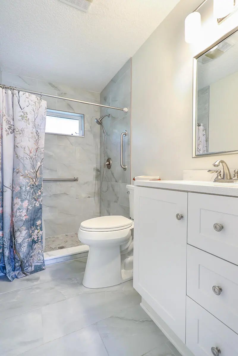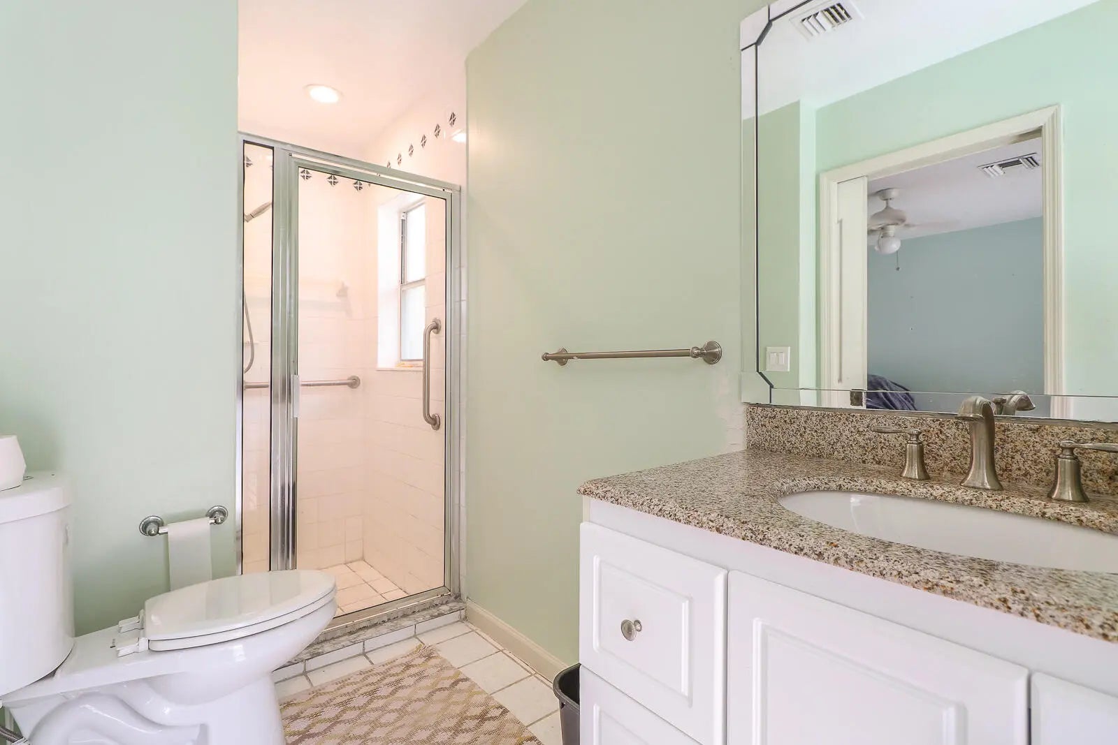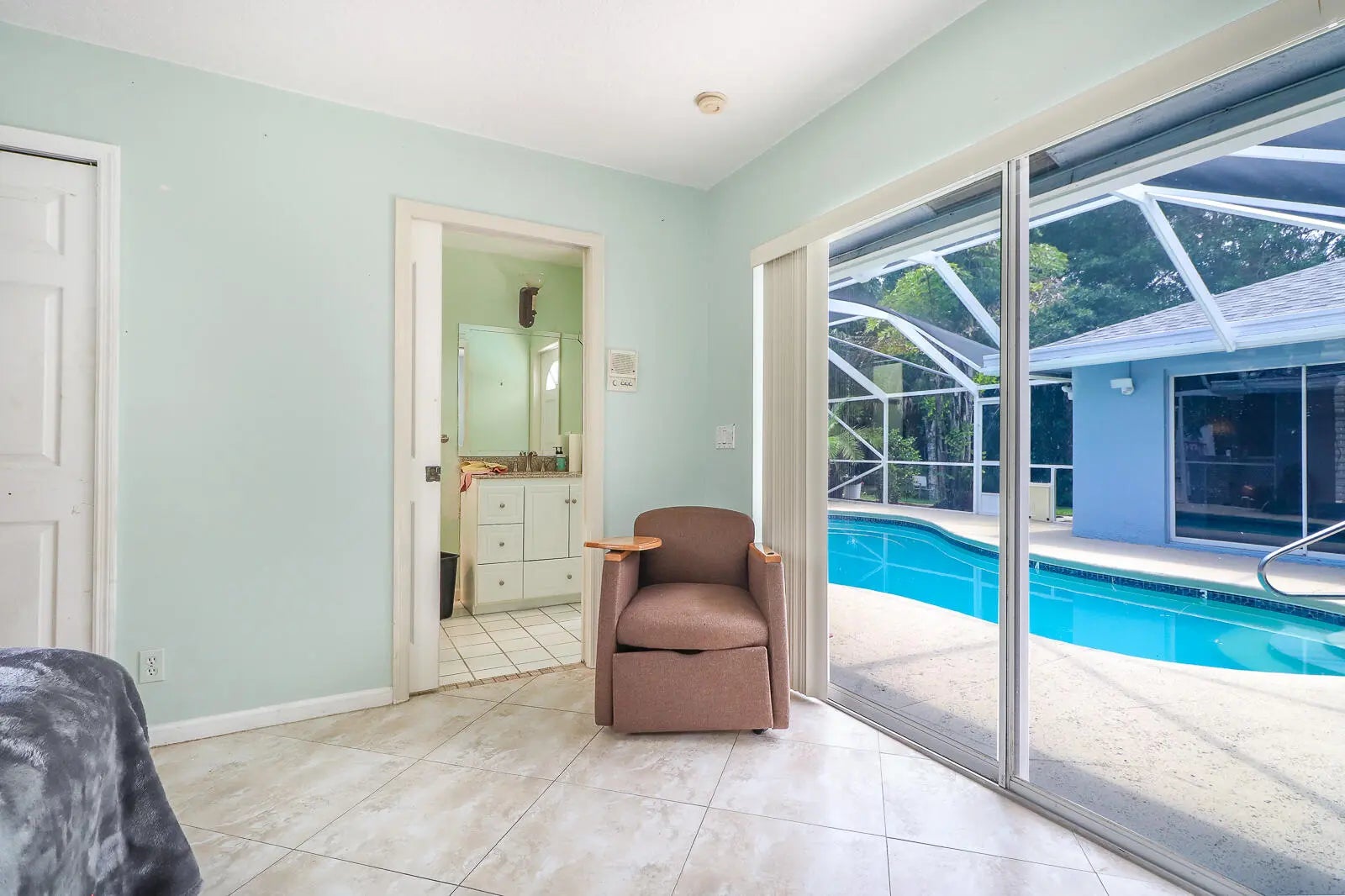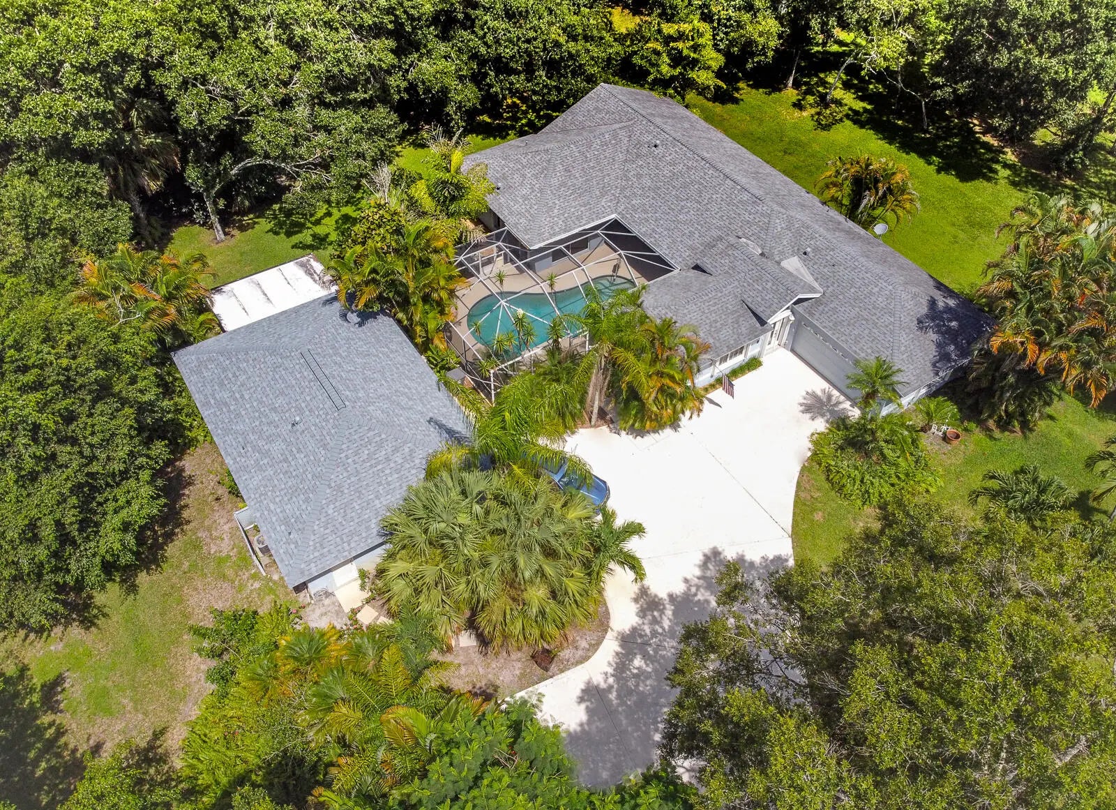 This courtyard-style CBS home on a 1.17-acre lot in Palm Beach Country Estates features a 3BR/3.5BA/2-car garage main house and additional detached 1BR/1BA/1-car garage guest house that was newly-remodeled in June 2025. There aren't many opportunities to own a property like this one. In addition to being in an area of PBCE that is extra peaceful - far from the highway - it is located just steps away from the spectacular Riverbend Park - featuring many miles of tree-shaded hiking, biking, and horse trails. The full-featured guest home is perfect for in-laws or possible short/long-term rental income - with 700sf of living area (included in the total) and its own screened porch and garage. Newer roof on the main house (2018) and brand-new roof on the guest house (June 2025). The pool deck, driveway, and garage floor are all newly-resurfaced All of the bedrooms in this house have a view of the spacious screened pool and patio with covered porch. Large walk-in master closet with shelving. Beautifully-landscaped lot with a large variety of trees and plenty of shade. Garage features built-in cabinets and a generator hook-up panel. Palm Beach Country Estates features quiet country living with no HOA, city water, and close proximity to area amenities such as Alton Town Center and Abacoa.