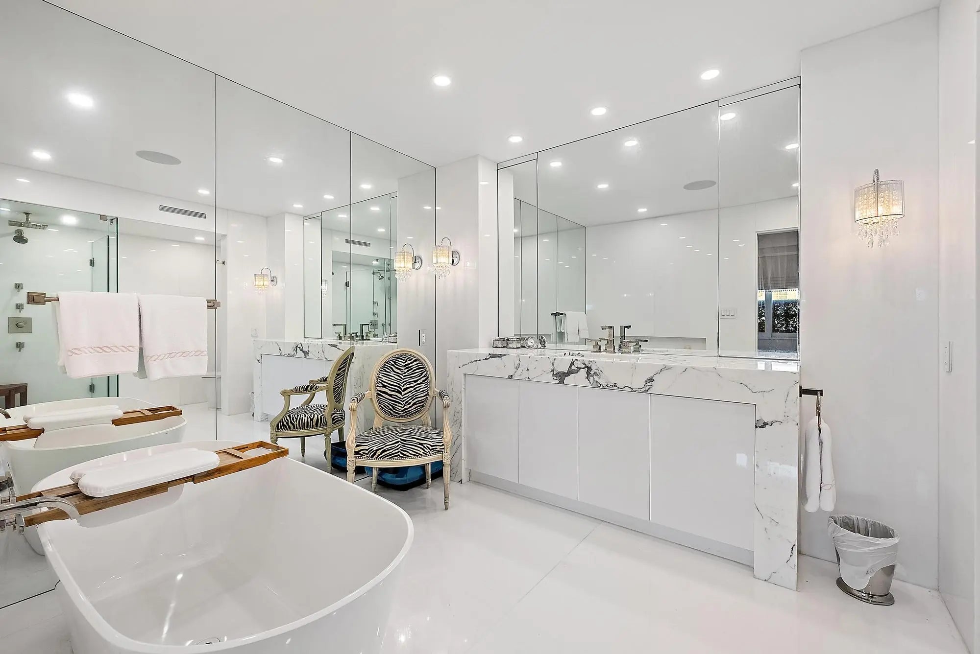 One-of-a-kind. Breathtaking Triple Apartment lives like a home at 3600+ sq. ft. 3 Ensuite Bedrooms, Primary Bedroom with Separate His/Her Bathrooms, 4 ½ Total Baths, plus Den and Dedicated Office Space, Separate Family Room (can be Formal Dining Room), Fabulous Chef's Kitchen, Spacious Laundry Room, Open Balcony with Magnificent Views of the Intracoastal. Three Parking Spaces Included in Price. Palm Beach Towers is a Premier Full-Service In-town Property Located just Steps from the Fabulous Restaurants and Shops at THE ROYAL. Amenities include on-site Hair Salon (Woody's) and Restaurant (Salute) with Room Service, Putting Green, Hot Tub, Gym, Exercise Studio and So Much More.