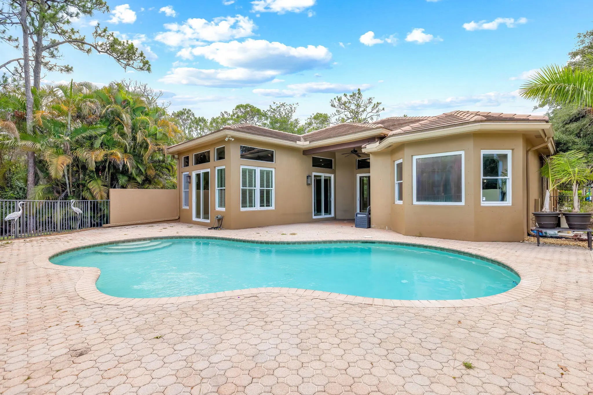 Elegant 4BR/3BA estate home in Osprey Isles, surrounded by serene nature preserves on two sides. Enjoy a private pool with paver deck, covered patio, and a fenced yard perfect for outdoor living. Inside, you'll find impact windows, 12' volume ceilings, and coffered ceilings in the living room and primary suite. The kitchen features custom cabinetry, while the spacious primary bath offers dual sinks, a soaking tub, and a separate shower. A guest bedroom includes its own en-suite, and two additional bedrooms share a Jack & Jill bath. Located next to Sandhill Crane Golf Club and close to shopping, dining, and top-rated schools. Don't miss this opportunity make it your home today!