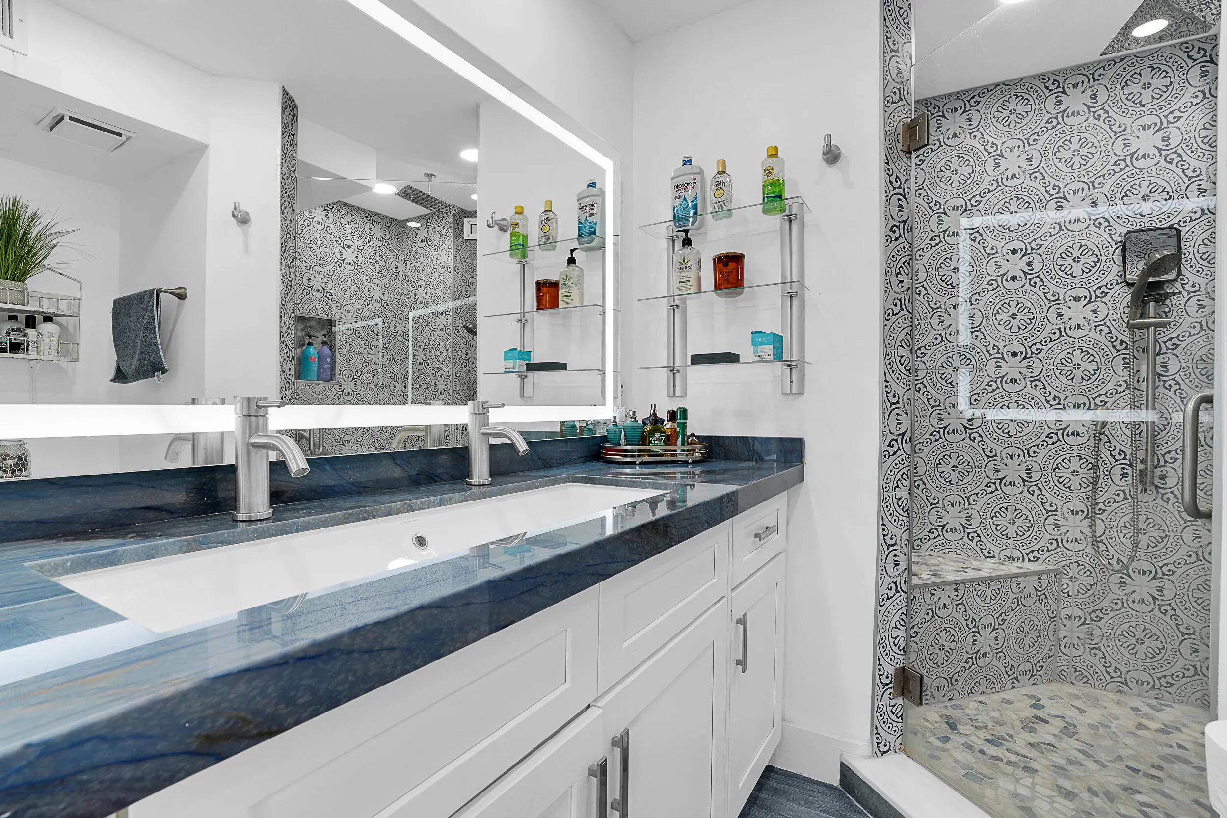 The finest three-bedroom waterfront residence in Hillsboro Cove, offering unparalleled views of the river & Capone Island. Meticulously remodeled, this condo features Azul Macaubus quartzite counters in the chef's kitchen, top-of-the-line KitchenAid appliances, & LED high hat lighting. custom translucent barn doors lead into each bedroom. The master bath features a bidet with multi heads in the oversized shower. The guest bath boasts a luxurious soaking tub overlooking the river with a view of the mega yachts as they go by. A Dimplex custom-built light & steam fireplace wrapped in quartzite adds a warm elegance. Just a few minutes' walk to local dining in Deerfield Beach & Boca Mizner a 5-minute drive. This residence epitomizes luxury living. Boat slips, when available. CONCRETE PAID !