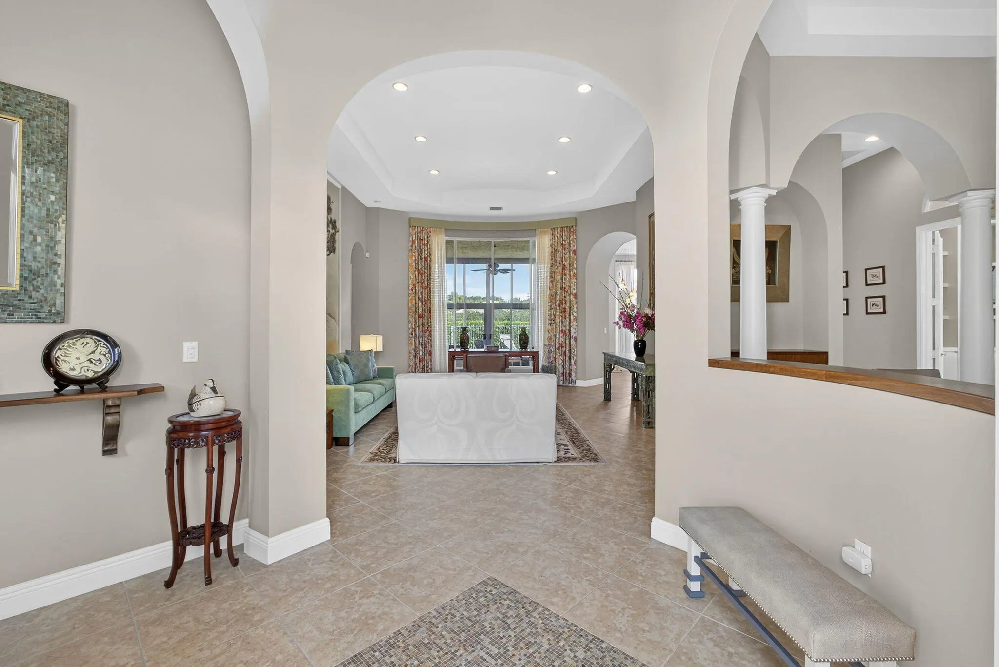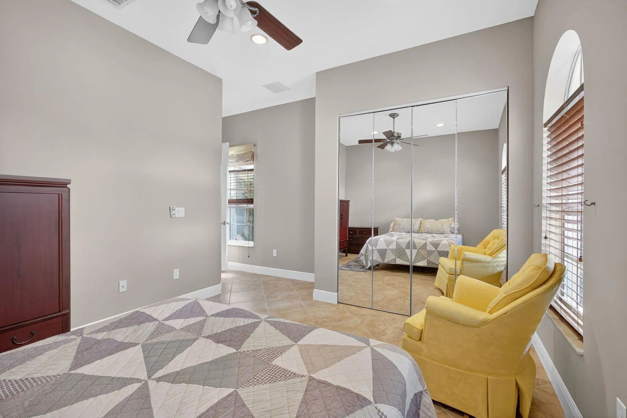 Blinds, Bay Window(s), Drapes, Arched, Double Hung Metal