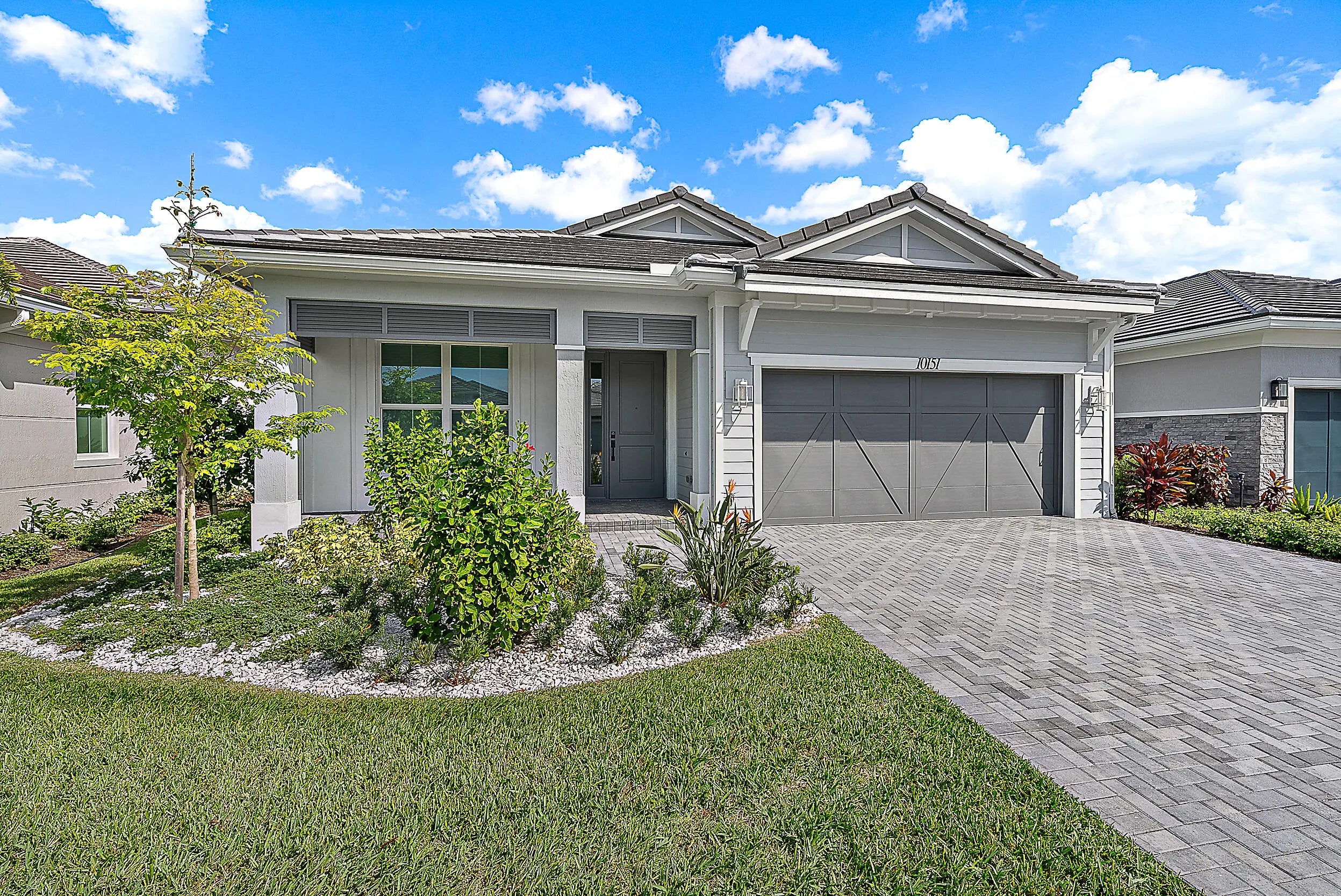 This beautifully designed Samantha Coastal has never been lived in and is just steps from the Pearl Clubhouse, Regency's premier amenity center. A welcoming entry and tray-ceiling foyer open to the spacious great room and dining area with views of the covered lanai. The chef's kitchen offers a large island, abundant storage, and a generous pantry. The primary suite includes a tray ceiling, oversized walk-in closet, and spa-like bath with dual vanities, soaking tub, glass shower, and private water closet. A secondary bedroom with walk-in closet and full bath, plus a third bedroom that's also ideal as a den or office, provide flexible living. Resort-style living awaits with fitness, sports courts, resort pool, cabanas, and endless social opportunities. Enjoy resort-style living with access to the Pearl Clubhouse, where you'll find activities, fitness, sports courts, resort pool and cabanas, and endless opportunities to connect with neighbors.