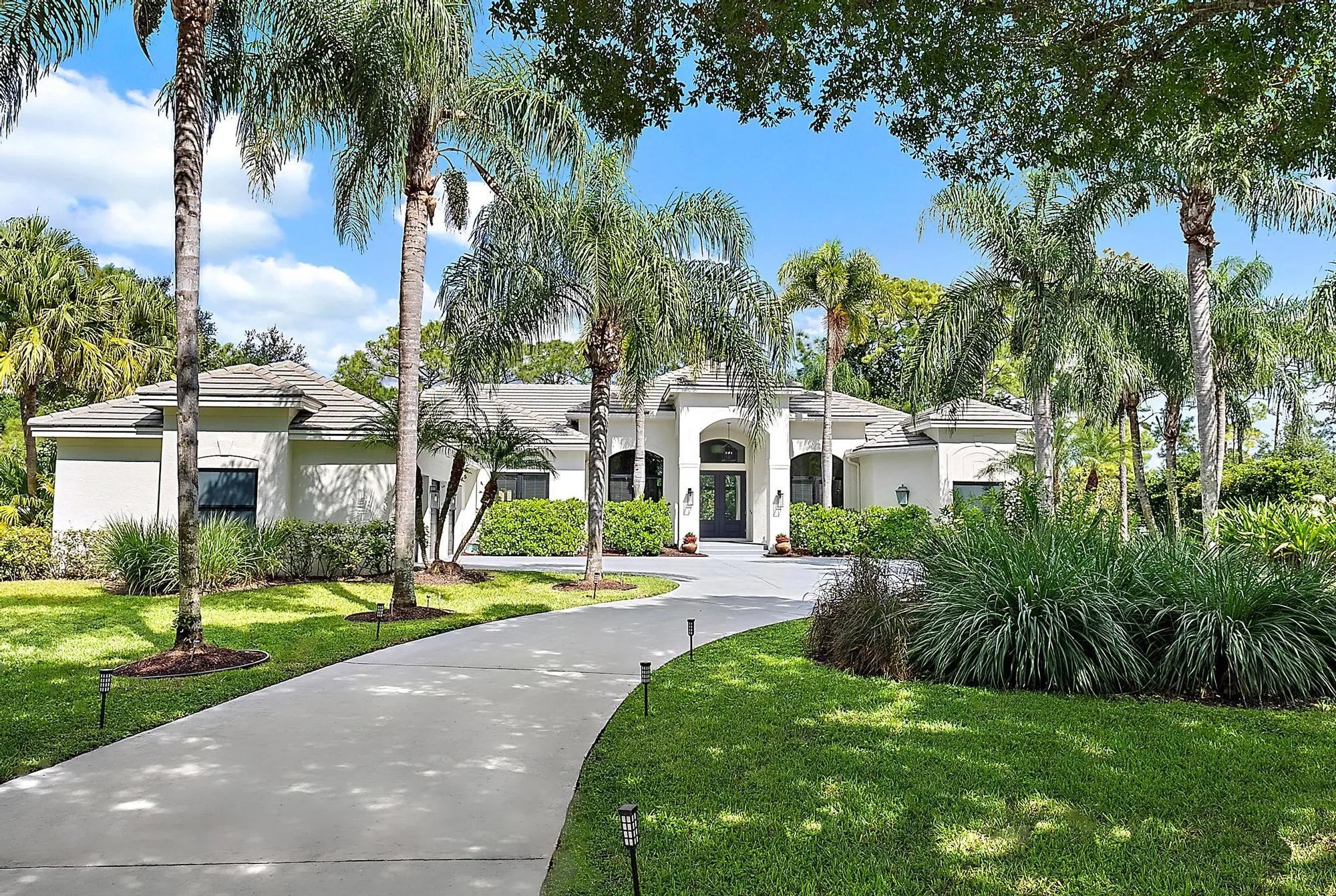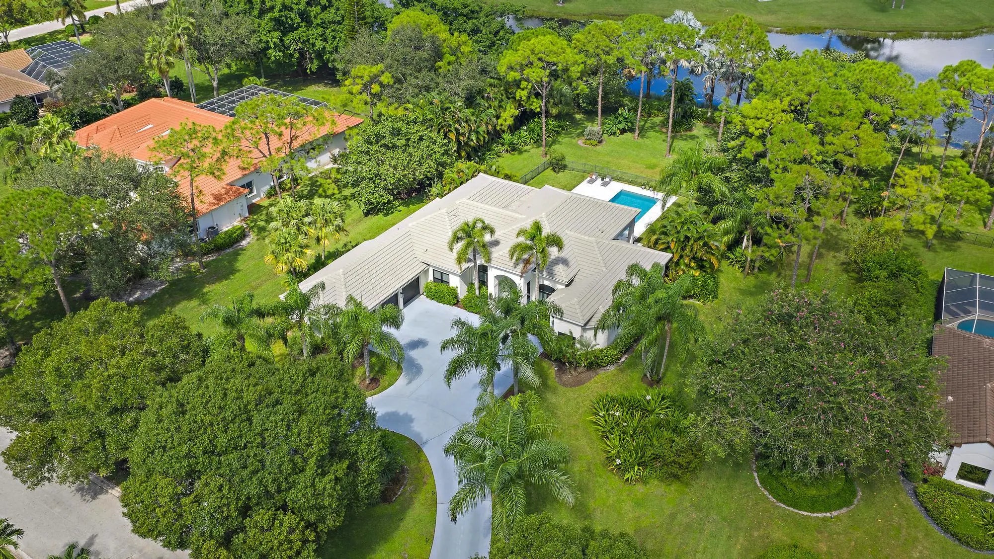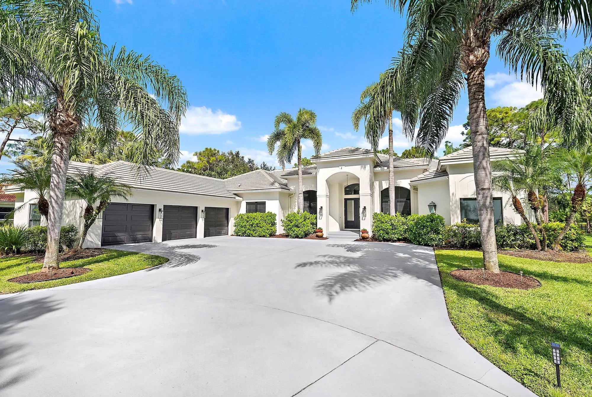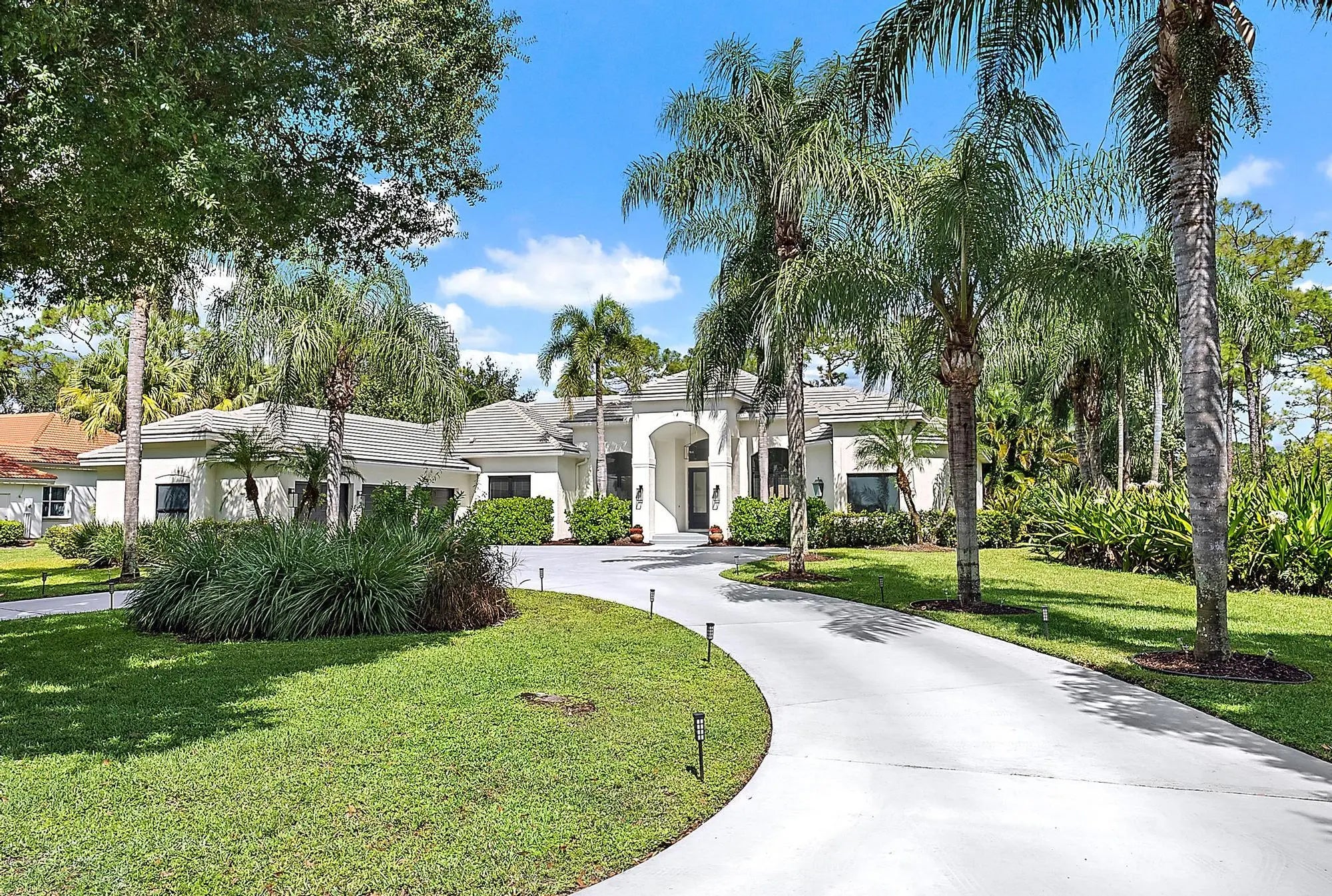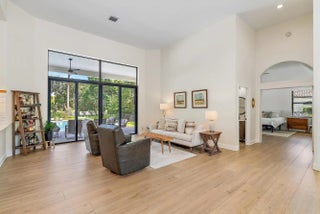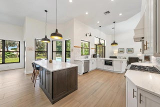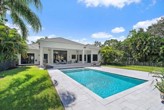 Set on one of the largest and most private lots in Bay Hill Estates—an extraordinary 290 feet by 170 feet—this stunning single-story home at 11771 Stonehaven Way offers an unparalleled blend of space, privacy, and contemporary comfort. Surrounded by lush landscaping and tranquil lake views, this 3,242-square-foot residence is a rare opportunity to own one of the community's most impressive properties. A sweeping circular driveway and three-car garage create a grand sense of arrival, while inside, soaring ceilings and walls of glass fill the home with natural light. The thoughtful split floor plan includes four spacious bedrooms, a den/office, three full baths, and two half baths—offering the perfect balance of openness and privacy. The kitchen has been beautifully updated with bright white cabinetry, quartz countertops, stainless steel appliances, and two pantries, all designed to take full advantage of the picturesque preserve and lake views beyond. Each of the bathrooms has been tastefully renovated, with the primary suite featuring dual vanities, a soaking tub, and a large frameless-glass shower for a true spa-like retreat. Throughout the home, contemporary light fixtures, elegant flooring, and stylish design elements create a modern yet inviting ambiance. The expansive covered patio extends nearly the entire width of the home, providing a seamless indoor-outdoor flow ideal for entertaining. The saltwater pool offers the perfect centerpiece for relaxation and recreation, surrounded by lush greenery and serene water vistas. A newer roof (installed December 2016), full-impact glass windows and doors, and a newer water heater (2020) provide peace of mind and lasting value. Every detail reflects quality and care, making this residence truly move-in ready. A 500-gallon propane tank powers the gas range and allows for future connectionsperfect for adding an outdoor kitchen to complement the home's entertaining spaces. Bay Hill Estates is a gated enclave of just 240 homes, each on one-acre lots surrounded by canals, lakes, and a PGA National golf course. The gated community provides 24-hour manned security, walking paths, high speed fiber-optic cable and internet, and optional membership to the PGA National golf and tennis facilities. Shopping, dining, cultural venues, and Palm Beach County's pristine beaches are only minutes away, ensuring an unmatched lifestyle in a tranquil yet connected setting. Combining an exceptionally large lot, complete renovation, and a premier location within Bay Hill Estates, this home offers an extraordinary lifestyle defined by elegance, privacy, and space.