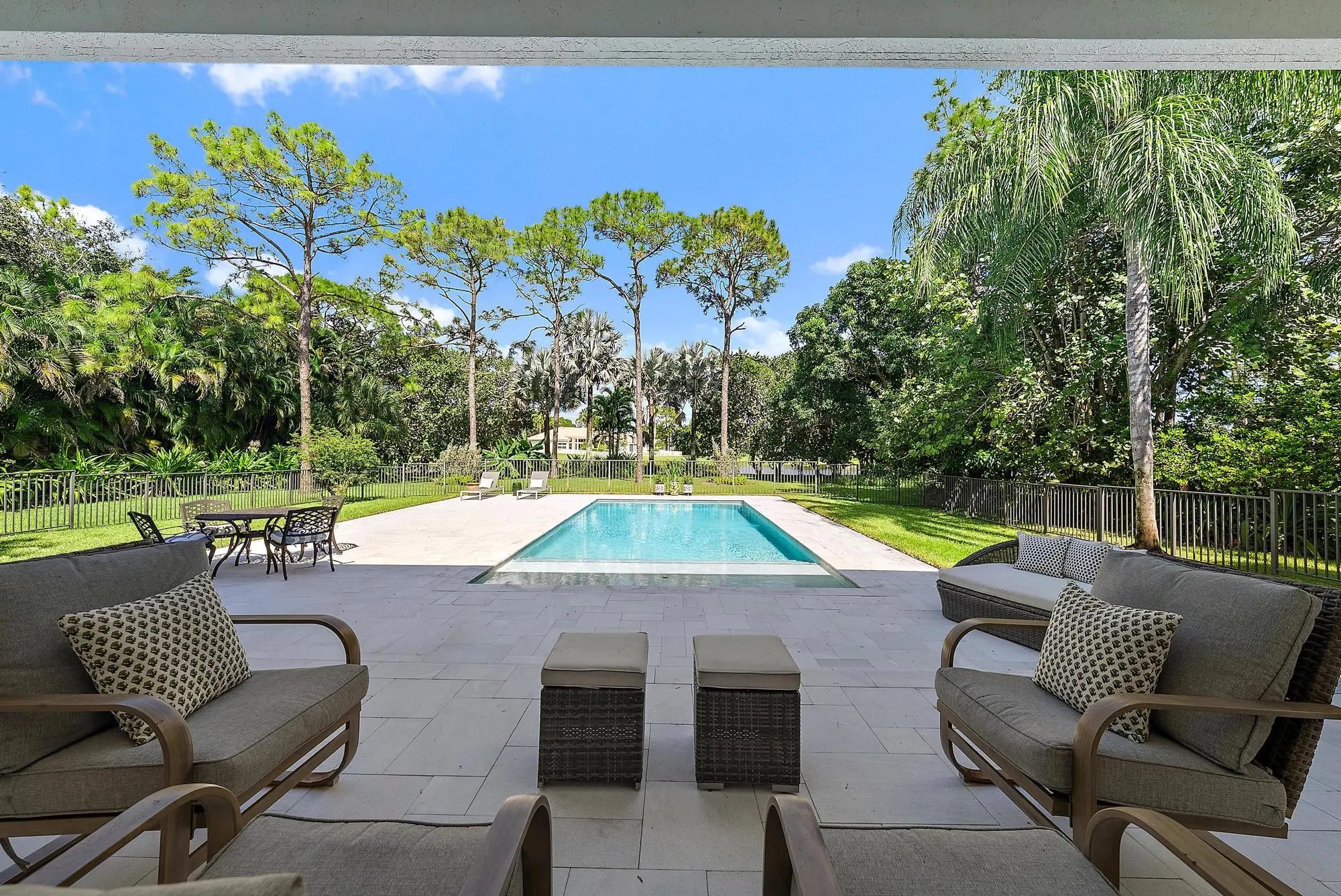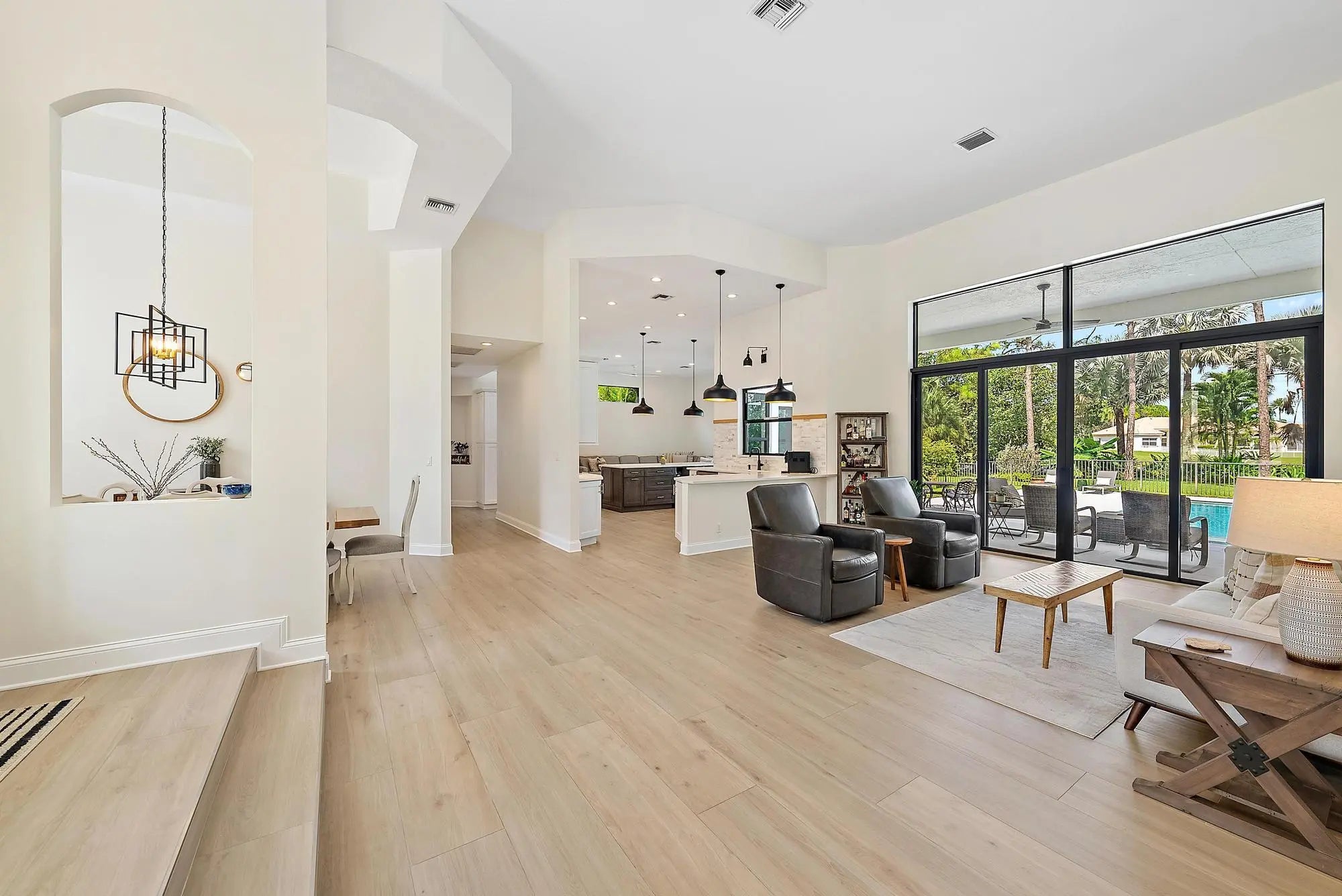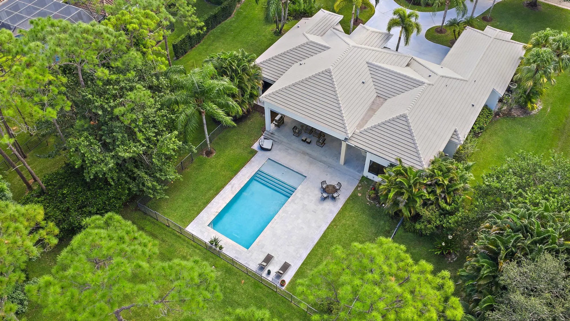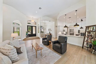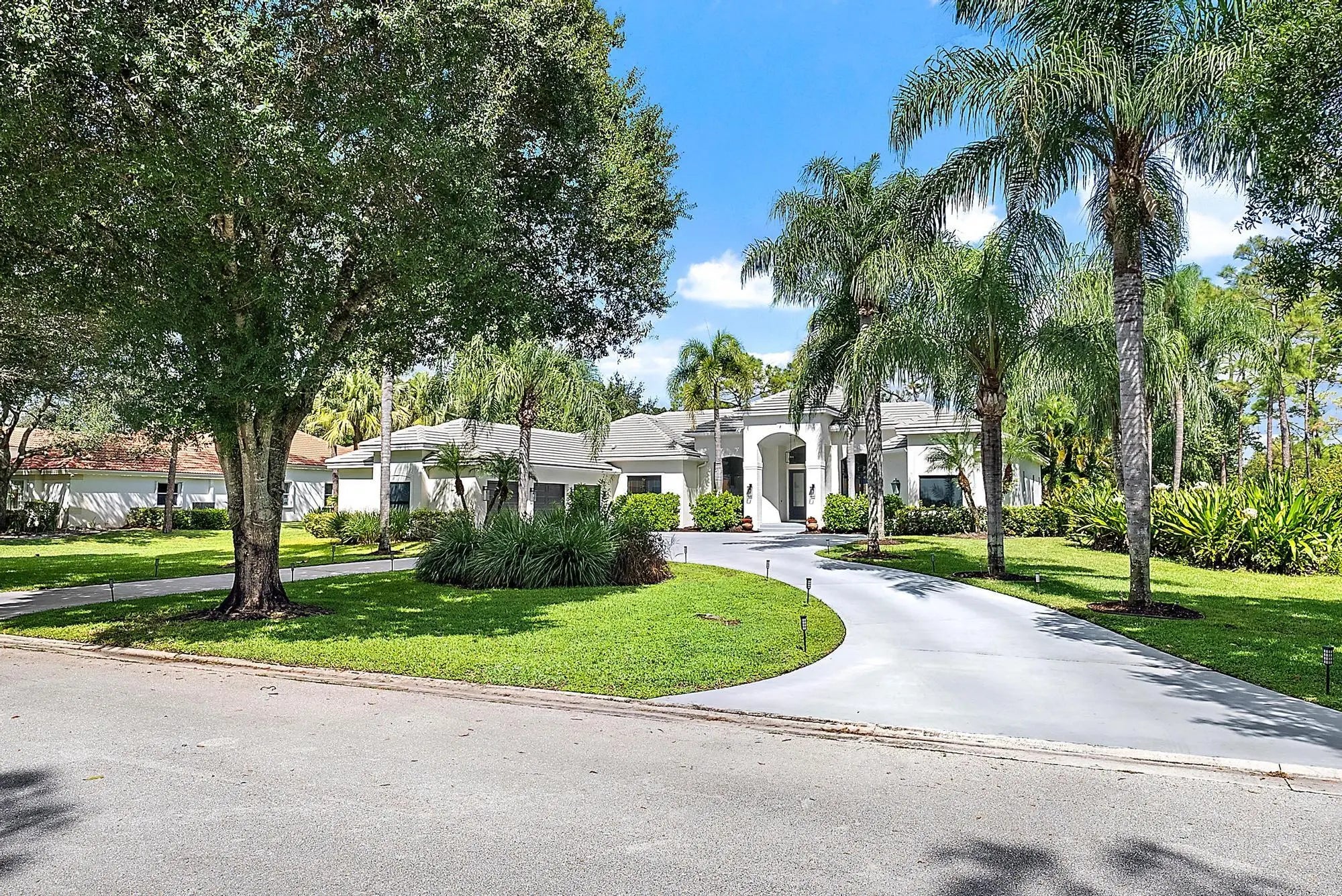 Set on one of the largest and most private lots in Bay Hill Estates—an extraordinary 290 feet by 170 feet—this stunning single-story home at 11771 Stonehaven Way offers an unparalleled blend of space, privacy, and contemporary comfort. Surrounded by lush landscaping and tranquil lake views, this 3,242-square-foot residence is a rare opportunity to own one of the community's most impressive properties. A sweeping circular driveway and three-car garage create a grand sense of arrival, while inside, soaring ceilings and walls of glass fill the home with natural light. The thoughtful split floor plan includes four spacious bedrooms, a den/office, three full baths, and two half baths—offering the perfect balance of openness and privacy. The kitchen has been beautifully updated with bright white cabinetry, quartz countertops, stainless steel appliances, and two pantries, all designed to take full advantage of the picturesque preserve and lake views beyond. Each of the bathrooms has been tastefully renovated, with the primary suite featuring dual vanities, a soaking tub, and a large frameless-glass shower for a true spa-like retreat. Throughout the home, contemporary light fixtures, elegant flooring, and stylish design elements create a modern yet inviting ambiance. The expansive covered patio extends nearly the entire width of the home, providing a seamless indoor-outdoor flow ideal for entertaining. The saltwater pool offers the perfect centerpiece for relaxation and recreation, surrounded by lush greenery and serene water vistas. A newer roof (installed December 2016), full-impact glass windows and doors, and a newer water heater (2020) provide peace of mind and lasting value. Every detail reflects quality and care, making this residence truly move-in ready. A 500-gallon propane tank powers the gas range and allows for future connectionsperfect for adding an outdoor kitchen to complement the home's entertaining spaces. Bay Hill Estates is a gated enclave of just 240 homes, each on one-acre lots surrounded by canals, lakes, and a PGA National golf course. The gated community provides 24-hour manned security, walking paths, high speed fiber-optic cable and internet, and optional membership to the PGA National golf and tennis facilities. Shopping, dining, cultural venues, and Palm Beach County's pristine beaches are only minutes away, ensuring an unmatched lifestyle in a tranquil yet connected setting. Combining an exceptionally large lot, complete renovation, and a premier location within Bay Hill Estates, this home offers an extraordinary lifestyle defined by elegance, privacy, and space.