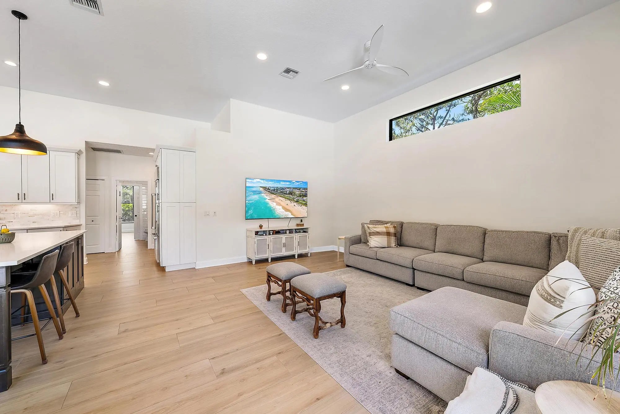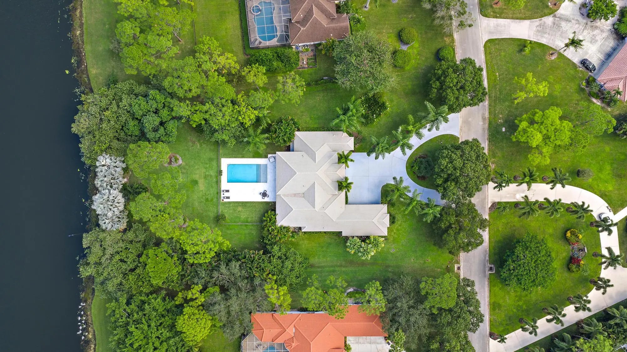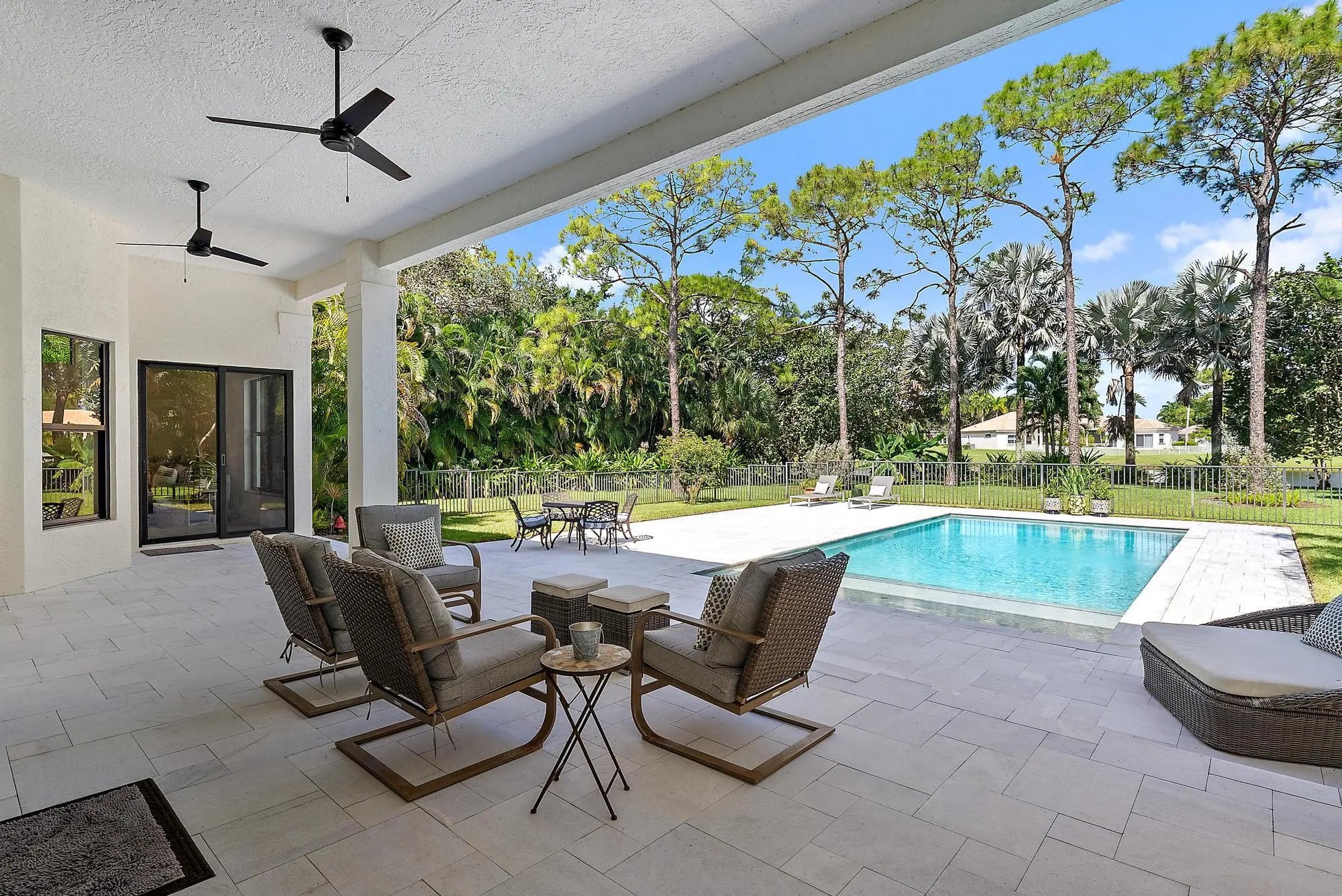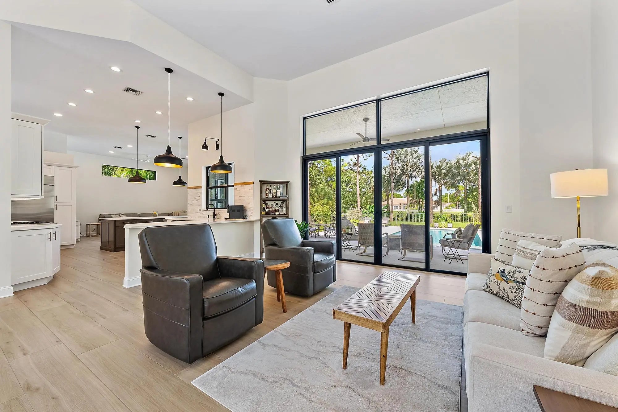 Set on one of the largest and most private lots in Bay Hill Estates—an extraordinary 290 feet by 170 feet—this stunning single-story home at 11771 Stonehaven Way offers an unparalleled blend of space, privacy, and contemporary comfort. Surrounded by lush landscaping and tranquil lake views, this 3,242-square-foot residence is a rare opportunity to own one of the community's most impressive properties. A sweeping circular driveway and three-car garage create a grand sense of arrival, while inside, soaring ceilings and walls of glass fill the home with natural light. The thoughtful split floor plan includes four spacious bedrooms, a den/office, three full baths, and two half baths—offering the perfect balance of openness and privacy. The kitchen has been beautifully updated with bright white cabinetry, quartz countertops, stainless steel appliances, and two pantries, all designed to take full advantage of the picturesque preserve and lake views beyond. Each of the bathrooms has been tastefully renovated, with the primary suite featuring dual vanities, a soaking tub, and a large frameless-glass shower for a true spa-like retreat. Throughout the home, contemporary light fixtures, elegant flooring, and stylish design elements create a modern yet inviting ambiance. The expansive covered patio extends nearly the entire width of the home, providing a seamless indoor-outdoor flow ideal for entertaining. The saltwater pool offers the perfect centerpiece for relaxation and recreation, surrounded by lush greenery and serene water vistas. A newer roof (installed December 2016), full-impact glass windows and doors, and a newer water heater (2020) provide peace of mind and lasting value. Every detail reflects quality and care, making this residence truly move-in ready. A 500-gallon propane tank powers the gas range and allows for future connectionsperfect for adding an outdoor kitchen to complement the home's entertaining spaces. Bay Hill Estates is a gated enclave of just 240 homes, each on one-acre lots surrounded by canals, lakes, and a PGA National golf course. The gated community provides 24-hour manned security, walking paths, high speed fiber-optic cable and internet, and optional membership to the PGA National golf and tennis facilities. Shopping, dining, cultural venues, and Palm Beach County's pristine beaches are only minutes away, ensuring an unmatched lifestyle in a tranquil yet connected setting. Combining an exceptionally large lot, complete renovation, and a premier location within Bay Hill Estates, this home offers an extraordinary lifestyle defined by elegance, privacy, and space.
