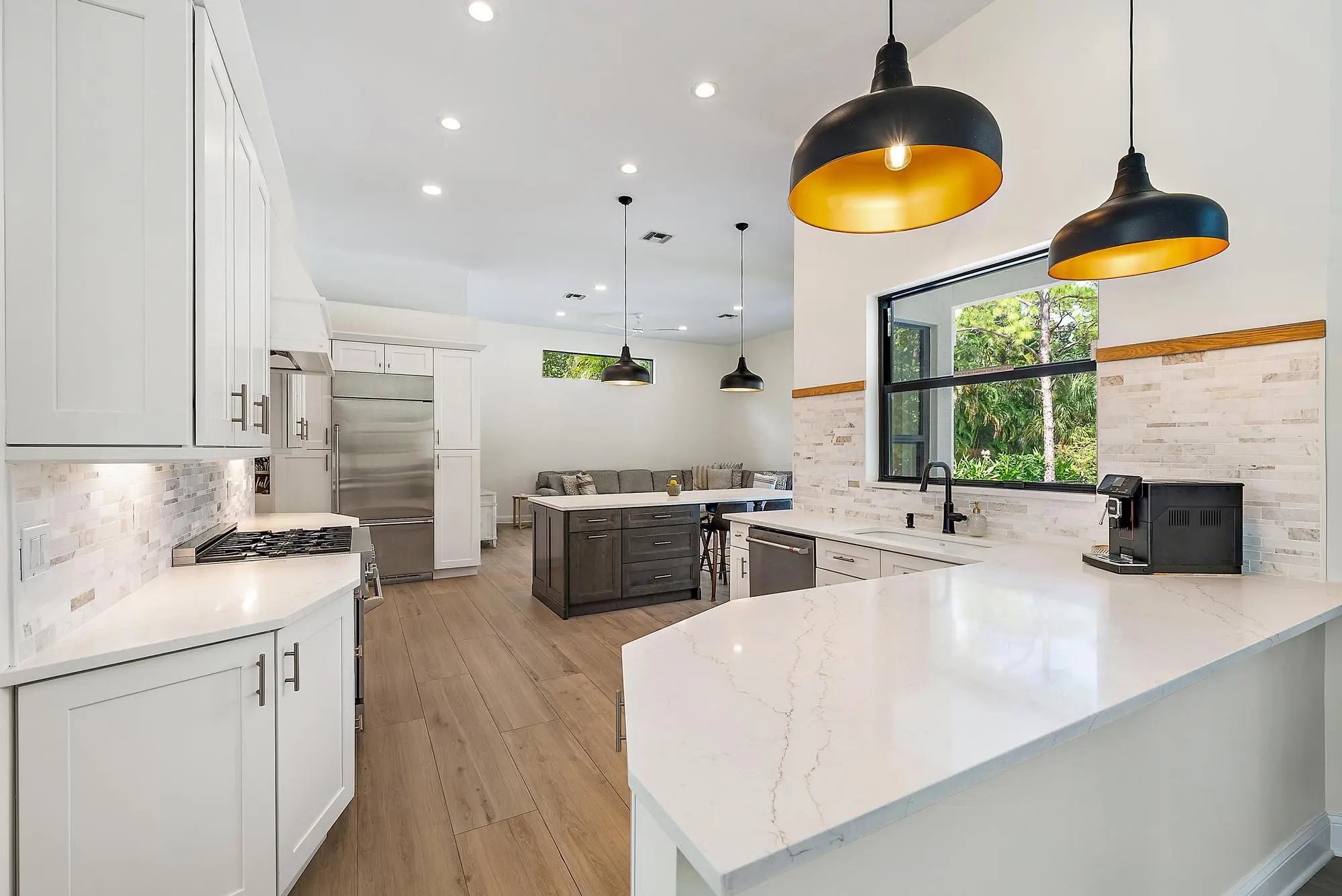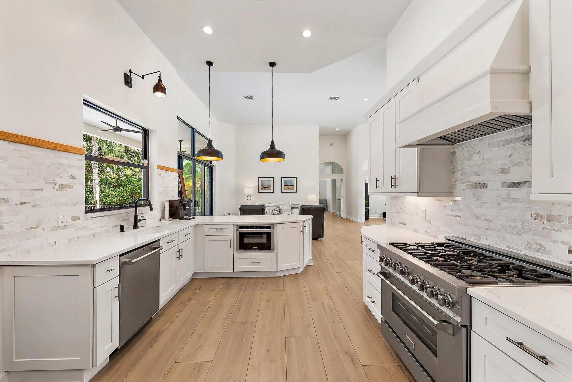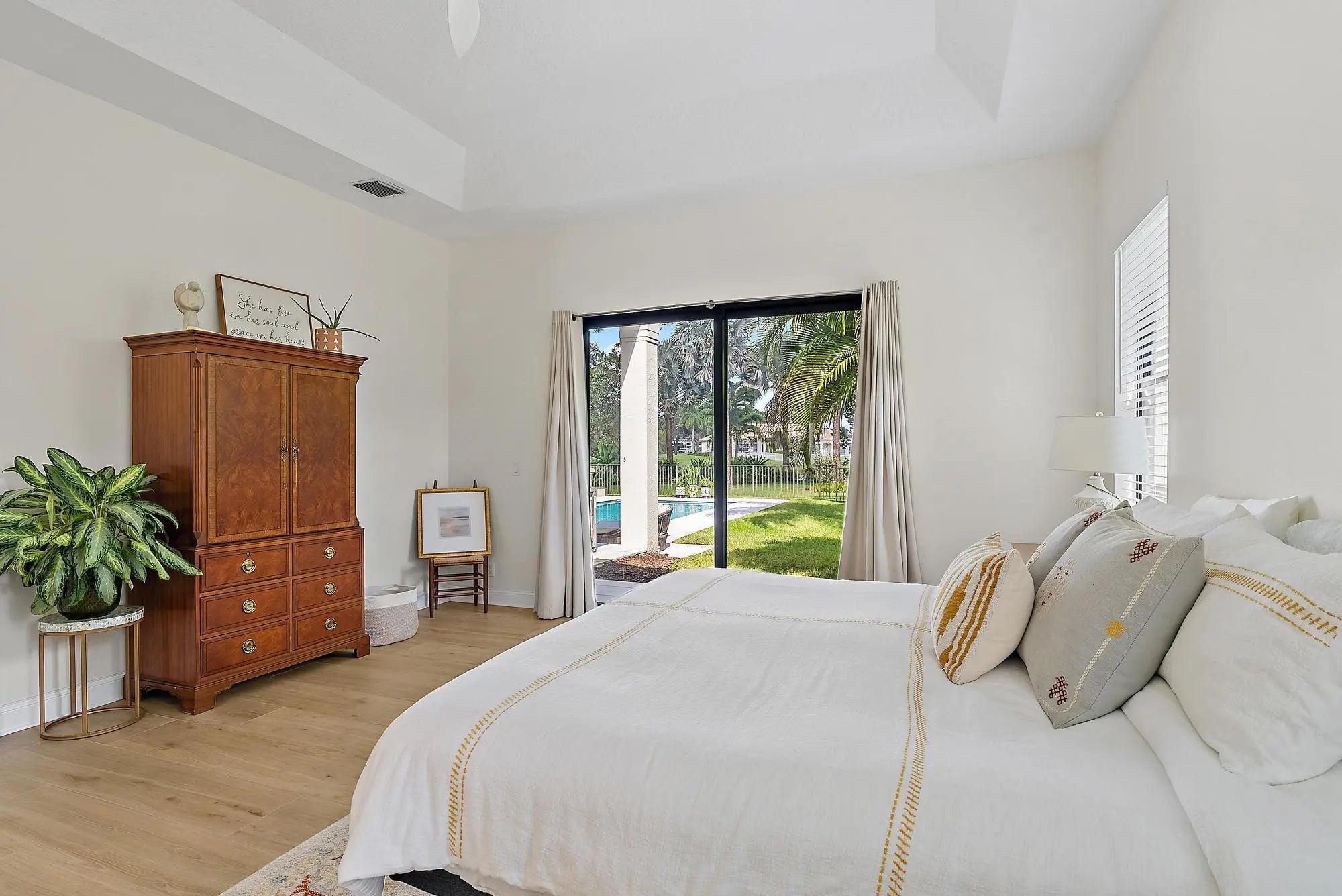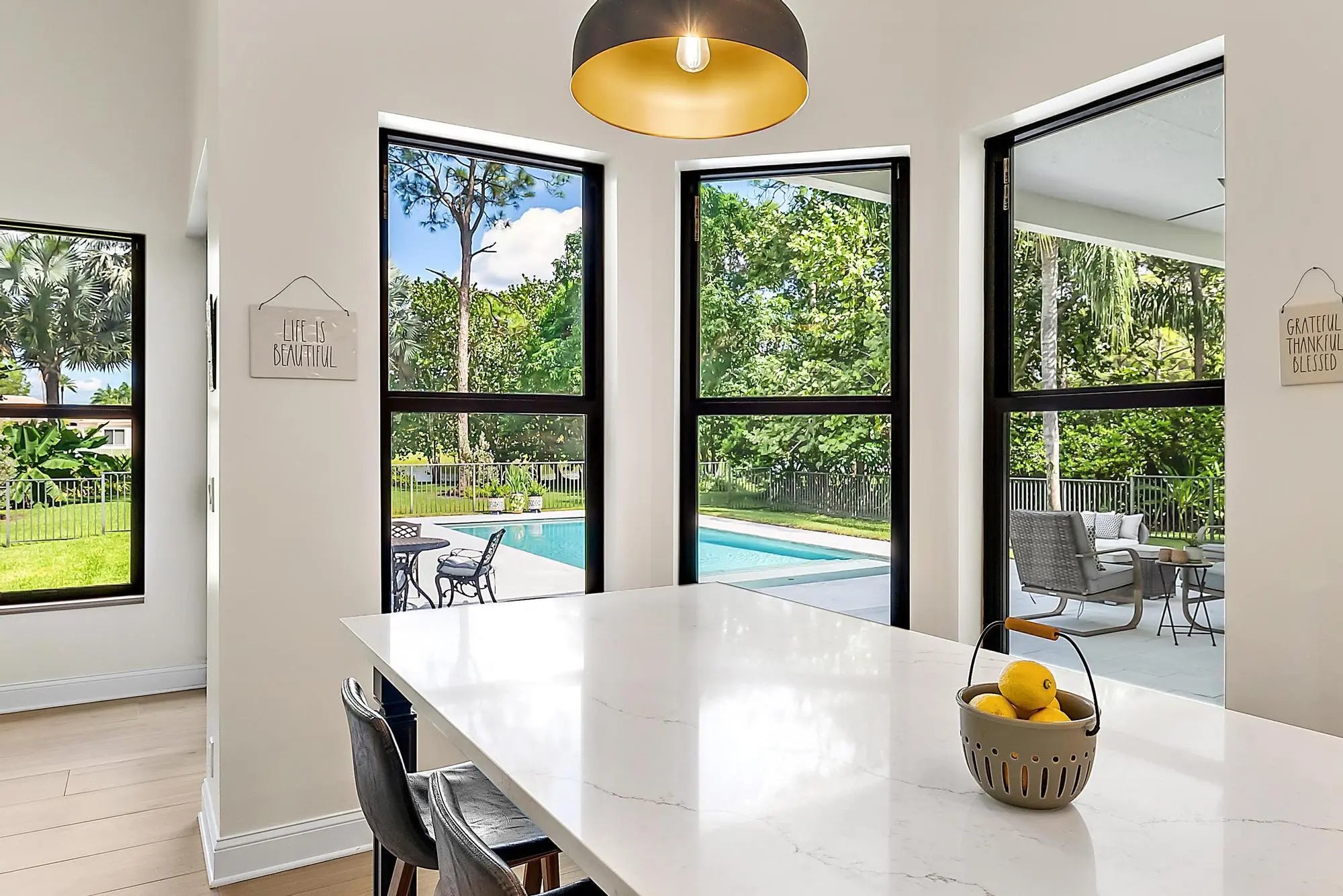 Set on one of the largest and most private lots in Bay Hill Estates—an extraordinary 290 feet by 170 feet—this stunning single-story home at 11771 Stonehaven Way offers an unparalleled blend of space, privacy, and contemporary comfort. Surrounded by lush landscaping and tranquil lake views, this 3,242-square-foot residence is a rare opportunity to own one of the community's most impressive properties. A sweeping circular driveway and three-car garage create a grand sense of arrival, while inside, soaring ceilings and walls of glass fill the home with natural light. The thoughtful split floor plan includes four spacious bedrooms, a den/office, three full baths, and two half baths—offering the perfect balance of openness and privacy. The kitchen has been beautifully updated with bright white cabinetry, quartz countertops, stainless steel appliances, and two pantries, all designed to take full advantage of the picturesque preserve and lake views beyond. Each of the bathrooms has been tastefully renovated, with the primary suite featuring dual vanities, a soaking tub, and a large frameless-glass shower for a true spa-like retreat. Throughout the home, contemporary light fixtures, elegant flooring, and stylish design elements create a modern yet inviting ambiance. The expansive covered patio extends nearly the entire width of the home, providing a seamless indoor-outdoor flow ideal for entertaining. The saltwater pool offers the perfect centerpiece for relaxation and recreation, surrounded by lush greenery and serene water vistas. A newer roof (installed December 2016), full-impact glass windows and doors, and a newer water heater (2020) provide peace of mind and lasting value. Every detail reflects quality and care, making this residence truly move-in ready. A 500-gallon propane tank powers the gas range and allows for future connectionsperfect for adding an outdoor kitchen to complement the home's entertaining spaces. Bay Hill Estates is a gated enclave of just 240 homes, each on one-acre lots surrounded by canals, lakes, and a PGA National golf course. The gated community provides 24-hour manned security, walking paths, high speed fiber-optic cable and internet, and optional membership to the PGA National golf and tennis facilities. Shopping, dining, cultural venues, and Palm Beach County's pristine beaches are only minutes away, ensuring an unmatched lifestyle in a tranquil yet connected setting. Combining an exceptionally large lot, complete renovation, and a premier location within Bay Hill Estates, this home offers an extraordinary lifestyle defined by elegance, privacy, and space.