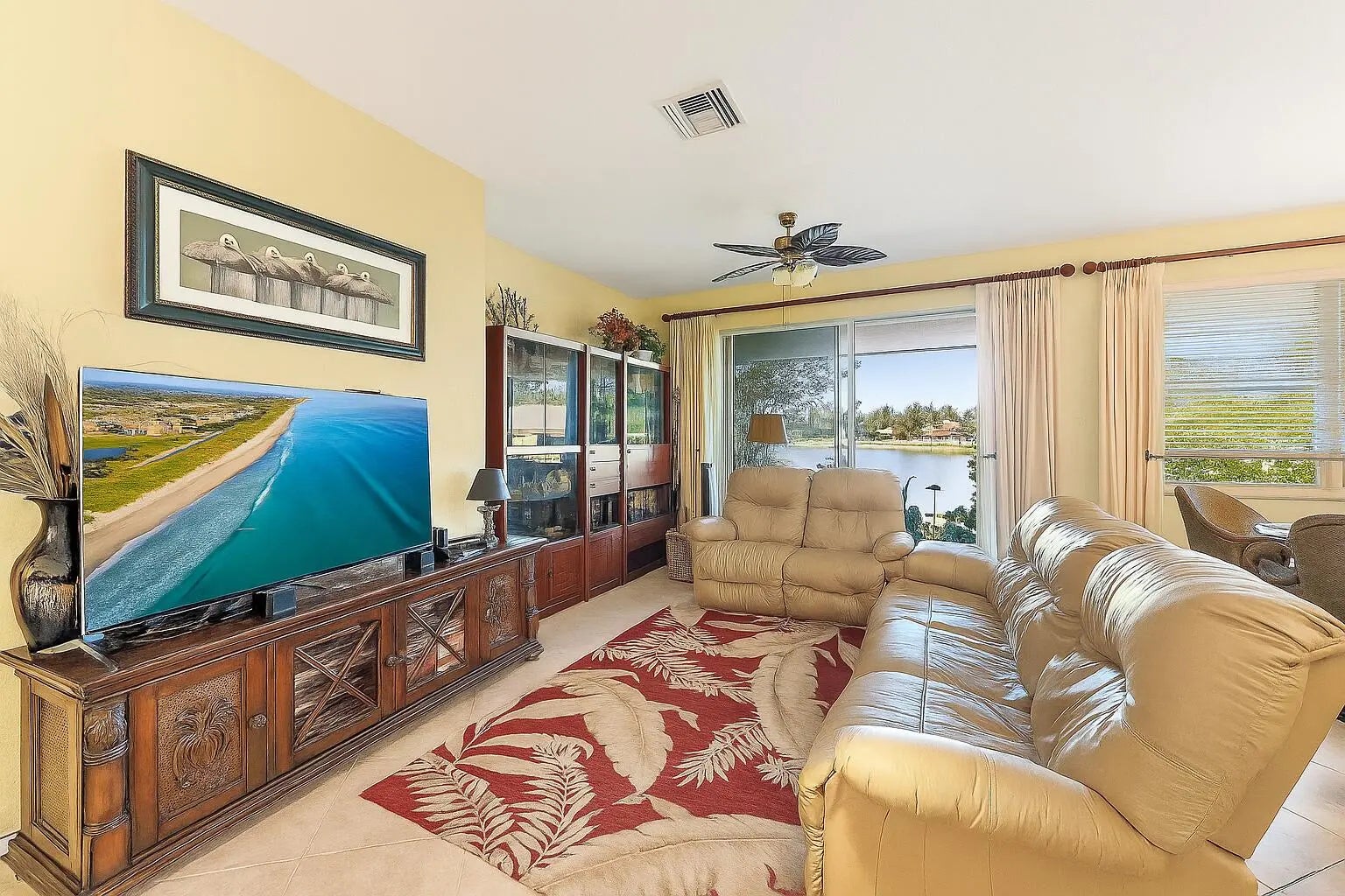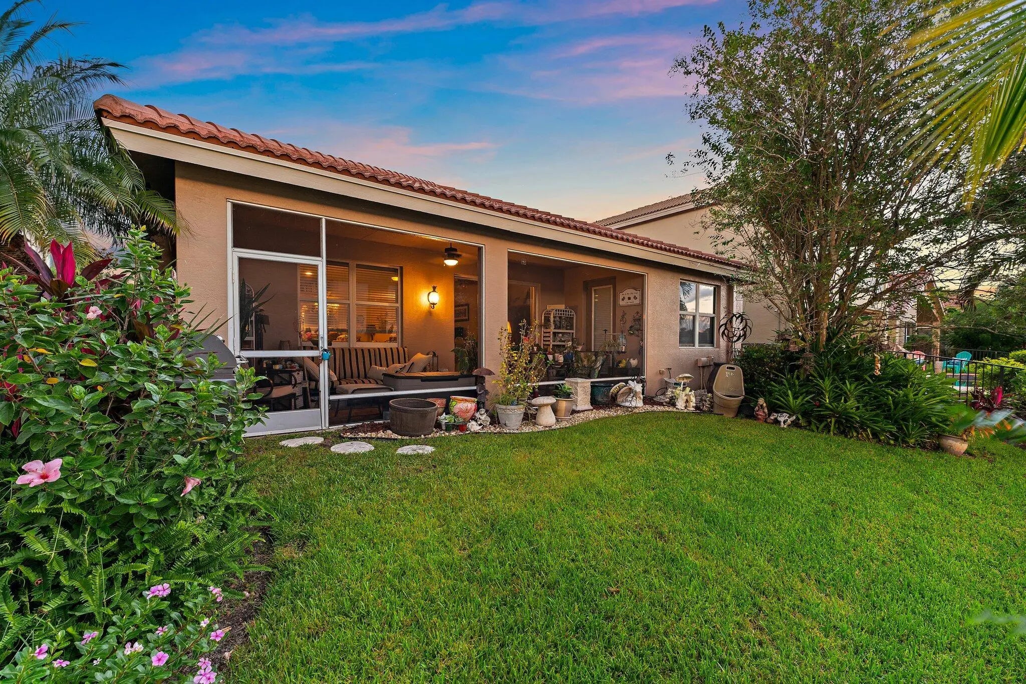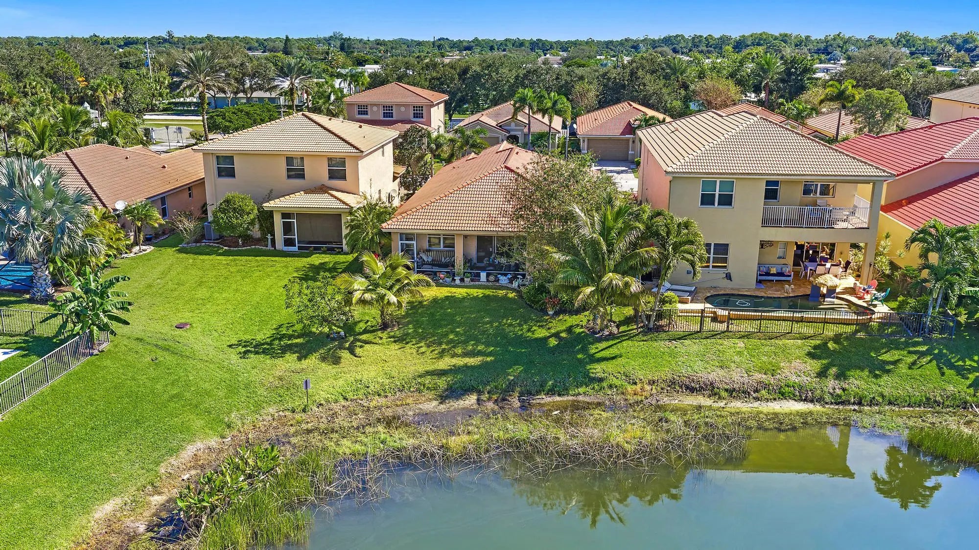 Imagine a tropical waterfront oasis in Stuart, Florida. River Marina is located off the St. Lucie River with a boat ramp and ocean access. This former model home sits on the lake, offering serene water views from nearly every angle of the backyard. This home features three bedrooms, two bathrooms, and a 2-car garage, with separate living, dining, and family room spaces for comfortable everyday living and entertaining. From the moment you enter, your eyes are drawn to the serene lake views that create a peaceful backdrop for the entire home. Interior finishes include a screened front porch, a screened lanai, a stunning glass front door, & tile laid on the diagonal. The gourmet kitchen features 42'' wood cabinetry, a cook's island, stainless steel appliances, and a reverse osmosis system. The oversized primary suite features French doors leading to the screened lanai, dual walk-in closets, and a spacious en-suite bath with a soaking tub and a large shower accented by a new frameless glass door. Additional highlights include impact-resistant windows throughout for peace of mind, a newer tankless water heater, and a paver patio and driveway. The low HOA includes a gated entrance and amenities such as a clubhouse, gym, pool, playground, basketball court, and a day dock with boat ramp access to the Saint Lucie River. Perfect for those who enjoy boating, fishing, and the Florida lifestyle.