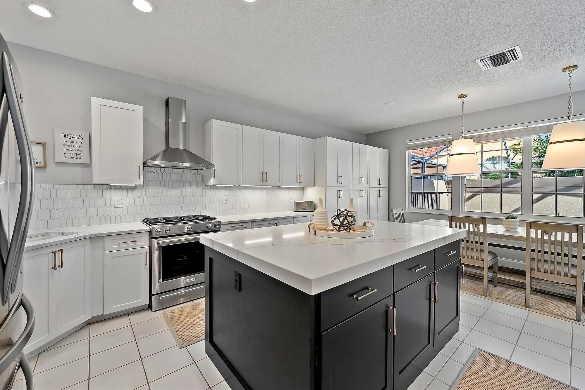 Exquisitely transformed residence in the Spanish-inspired enclave of Villa d'Este at PGA National. This home features a new roof (Aug 2025), renovated bathrooms, and a redesigned kitchen with new appliances. Beautiful wide-plank white oak floors, designer lighting, fresh interior paint, new carpet, refined baseboards and a custom primary closet contribute to the refined ambiance. The centerpiece kitchen boasts a generous island, premium appliances and sleek finishes ideal for entertaining or everyday living. Boasting a secluded back yard with no maintenance artificial turf lets you enjoy the sunshine in private.