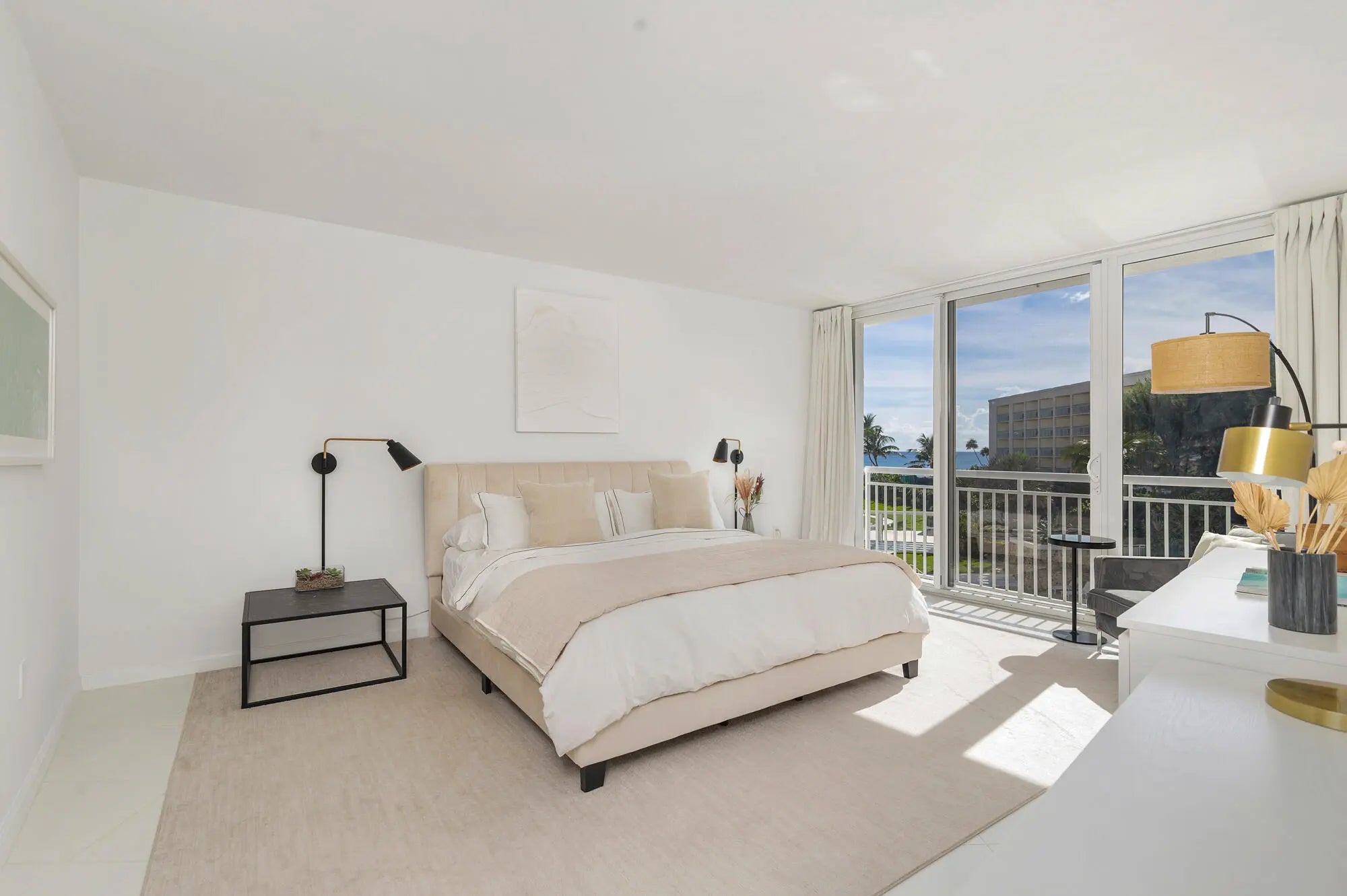 Experience effortless oceanfront living in this fully renovated two-bedroom, two-bath residence with sweeping Atlantic views from every room. Light-filled interiors open to private balconies through floor-to-ceiling impact glass, seamlessly blending indoor comfort with the sea beyond. Features include a gourmet kitchen with high-end appliances and wine fridge, in-unit washer/dryer, and generous closet space. Enjoy full-service amenities with direct beach access, oceanfront pool, fitness center, and club room—just minutes from Worth Avenue and adjacent to the Four Seasons.