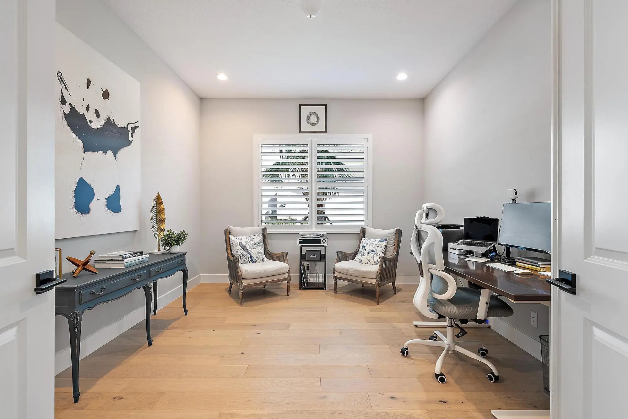 Newest Listing in WATERMARK at AVENIR! Move right into this stunning 2024 Toll Brothers home showcasing the community's most popular floor plan offering 5 spacious bedrooms, 4.1 bathrooms, a 2 car garage, enhanced by exquisite designer upgrades throughout. A dramatic double-height foyer welcomes you with modern wood flooring and a striking tiered staircase — and there's *no carpet anywhere*! Beautiful custom wood and porcelain floors extend throughout the home. The open-concept main living area is bright and spacious, filled with natural light. Built to today's highest standards, this home offers *energy-efficient living* and comes with an extended builder warranty for peace of mind. The chef's kitchen is an entertainer's dream, featuring premium appliances, an oversized refrigerator, natural gas cooktop, and a quartz waterfall island. A cozy dining alcove and large walk-in pantry complete this perfect culinary space. The first-floor primary suite is a serene retreat with expansive custom closets and a luxurious spa-inspired bath. All bedrooms are generously sized and include custom wood closet built-ins. Outside, enjoy a prime South-facing yard for all-day sunlight, an oversized lot, and a covered lanai with plenty of room for a pool and pre-plumbing for a summer kitchen. AVENIR is Palm Beach's premier master-planned community, offering resort-style amenities: a grand clubhouse, state-of-the-art fitness center, tennis and pickleball courts, pool and spa, scenic walking trails, and a community garden. The upcoming Avenir Town Center will feature Publix, dining, retail, offices, and spa services. For golf enthusiasts, Avenir is home to Panther National, a world-class course designed by Jack Nicklaus and Justin Thomas. Plus, five championship courses are within 10 minutes, and the new Sandhill Crane Golf Club with course, range, and dining is just outside the gates. Watermark at Avenir also features 98 single-family homes. Home designs feature unique architecture blending modern trends and coastal influences, built with Toll Brothers commitment to quality, value, and craftsmanship. Watermark at Avenir is conveniently located in one of the top school districts in Palm Beach County and close to the areas upscale shopping and dining, Atlantic beaches, and recreational and cultural attractions. Avenir features more than 2,400 acres of conservation and preserve areas and include a multitude of recreation options for residents. Experience the best of modern Florida living in the heart of the magnificent Palm Beaches!