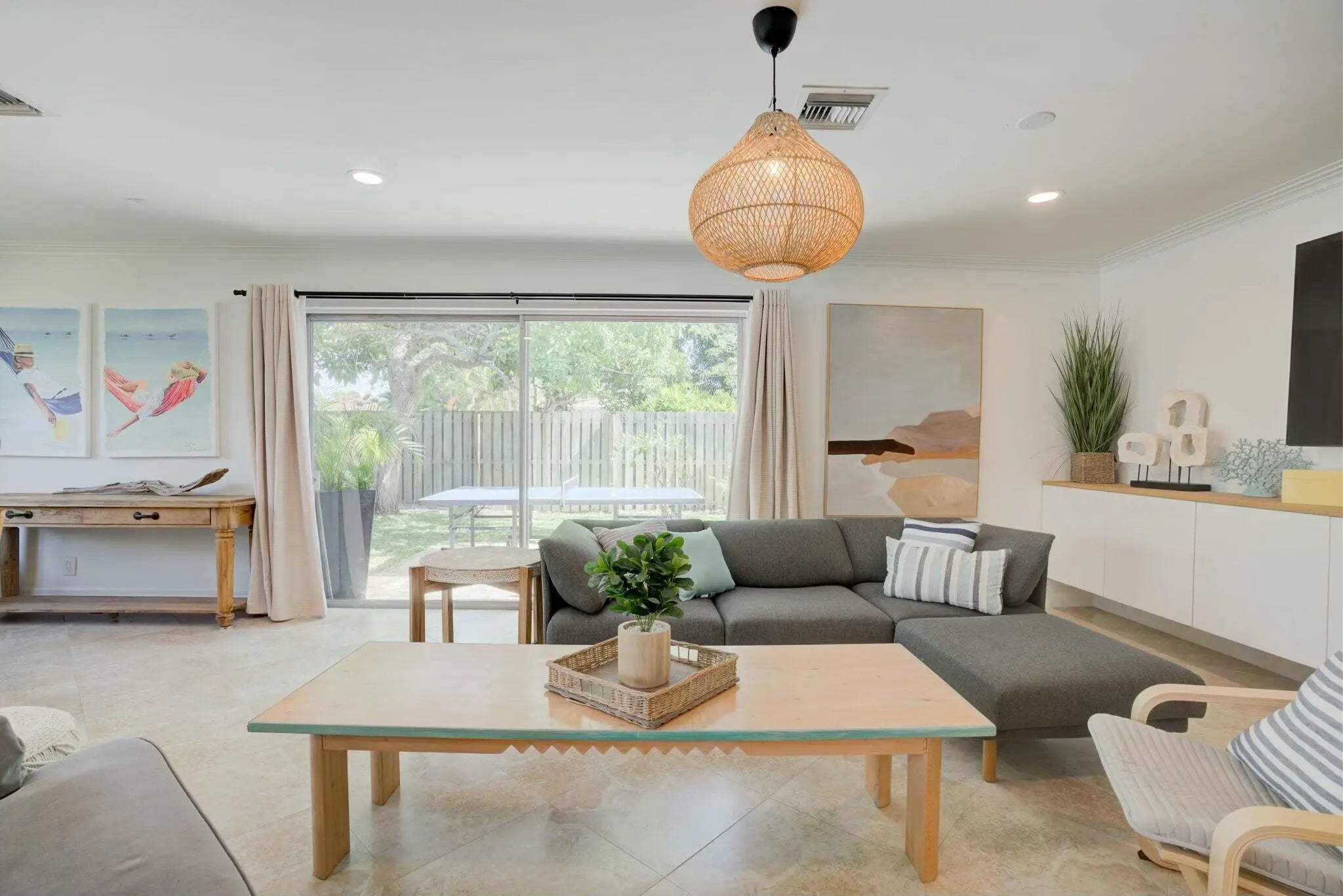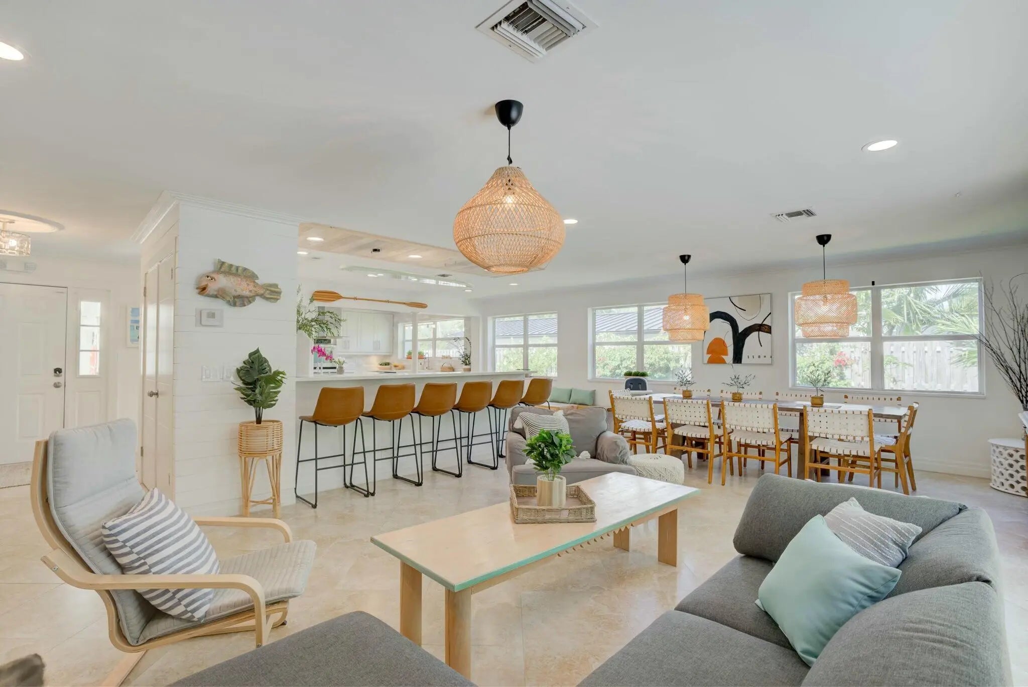 SEASONAL RENTAL - Beautiful North Palm Beach Pool Home located in a quiet and beautiful neighborhood. Fully furnished. 3 bedroom, 2 bath home with oversized entertaining spaces. Modern chefs' kitchen with two large islands, white quartz countertops, and stainless steel appliances. Large dining room table seats 10, breakfast nook in kitchen for children and families. Outdoor dining and seating, large sliders overlooking fully fenced yard, full laundry room. AC garaged space overlooking the pool. Fully fenced yard. Boat storage on side of house. Gorgeously landscaped yard, putting green, large pool, ping pong table, gardens, sandbox and fruit trees galore. Bike ride away to North Palm Beach golf course, country club swimming pool and Farm to Table restaurant.