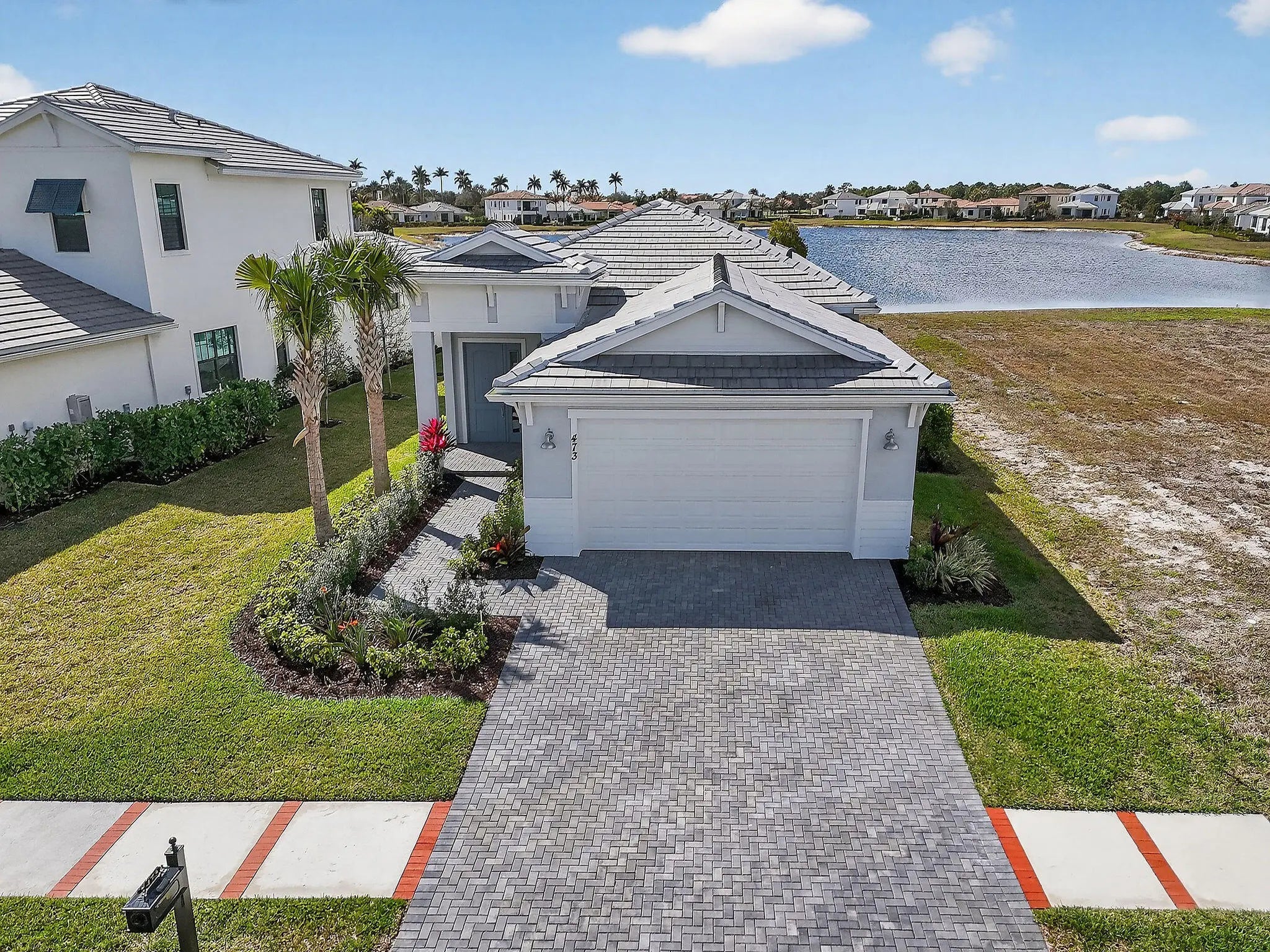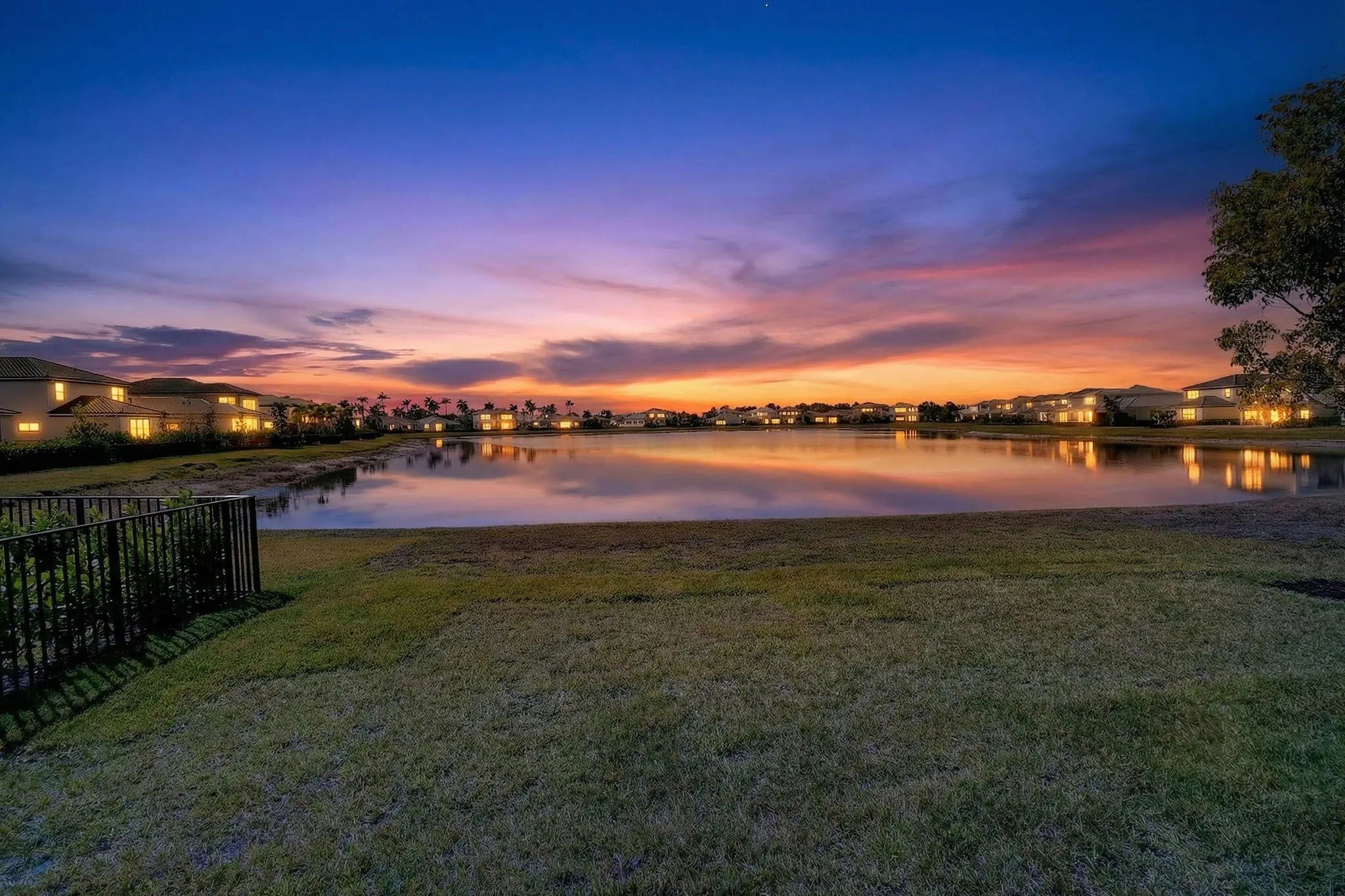Nestled within a prestigious gated golf community, this beautifully upgraded Giulia model offers the perfect blend of luxury, comfort, and lifestyle. Overlooking a serene lake with breathtaking sunset views, the home features expansive glass sliders that open to a covered terrace, ideal for indoor-outdoor living and entertaining. Designed with an open and spacious floor plan, the residence includes 3 bedrooms, 2 full bathrooms, and a convenient half bath, along with a dedicated laundry room and double garage. A versatile flex space/den provides the ideal setting for a home office or additional living area. Thoughtfully enhanced with $39,000 in upgrades plus an additional $15,000 in custom window treatments and designer lighting, this home is truly move-in ready. Residents enjoy access to an 18-hole Arnold Palmer-designed golf course, with golf memberships available, making this an exceptional opportunity to embrace refined golf-course living in a secure, resort-style setting.