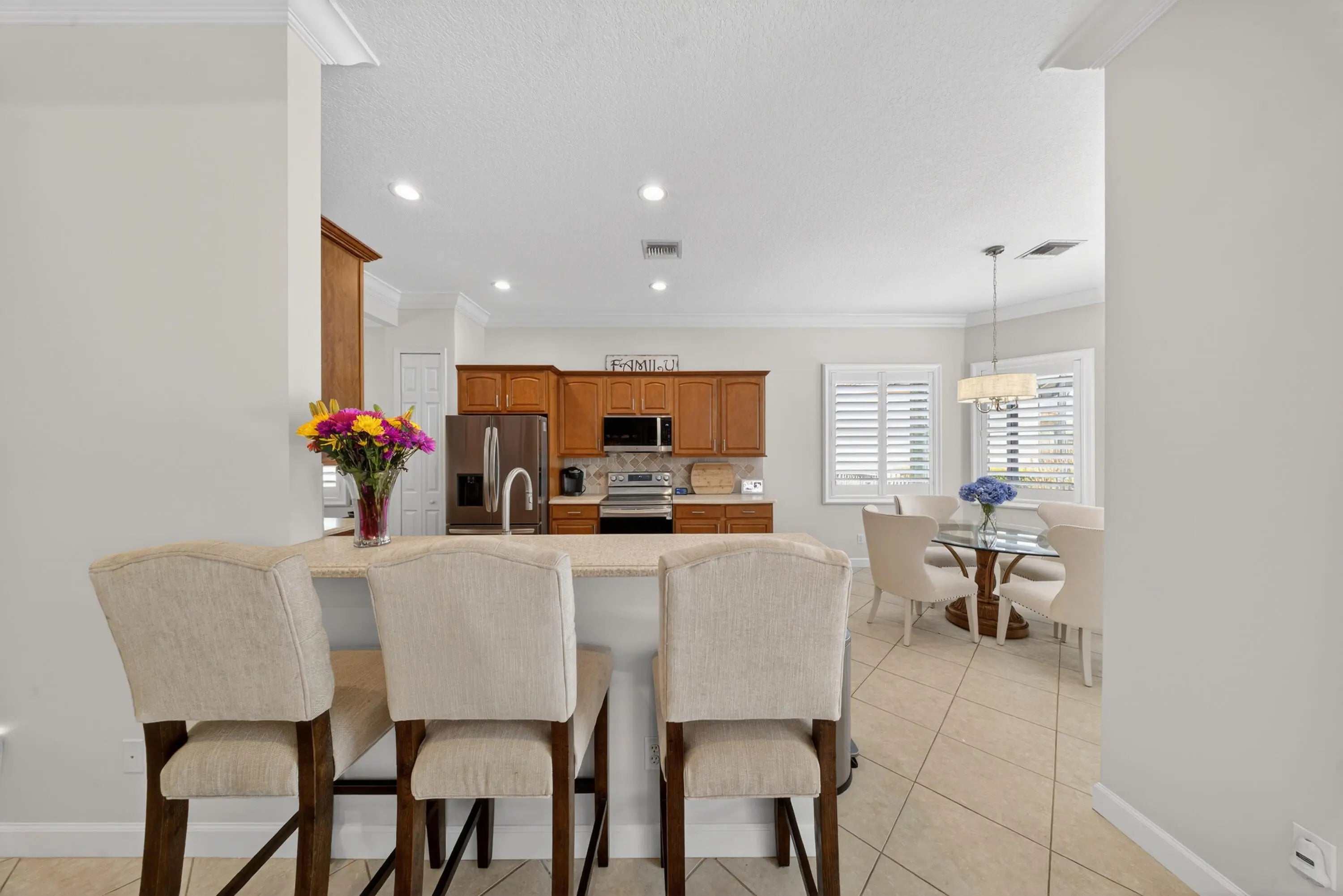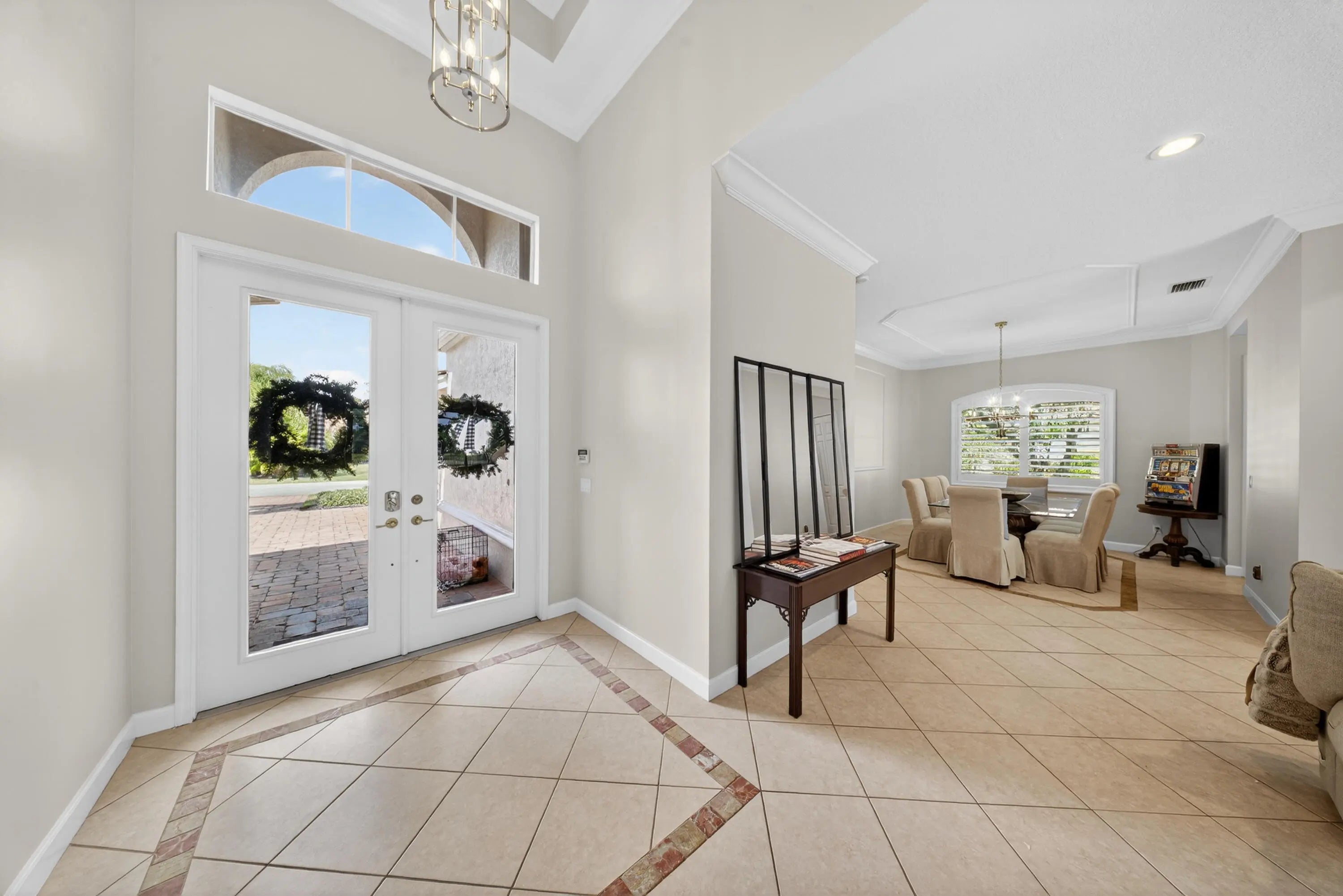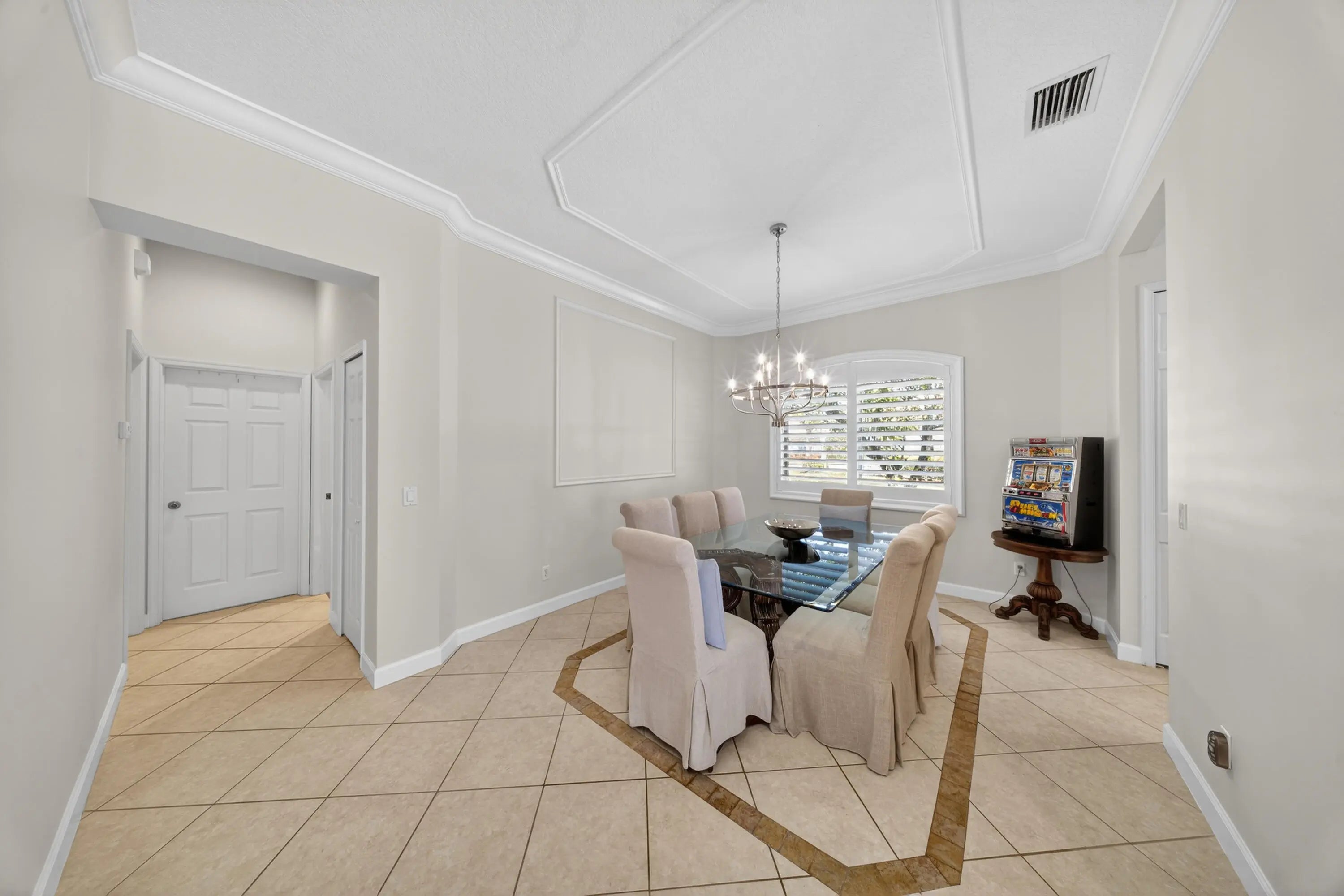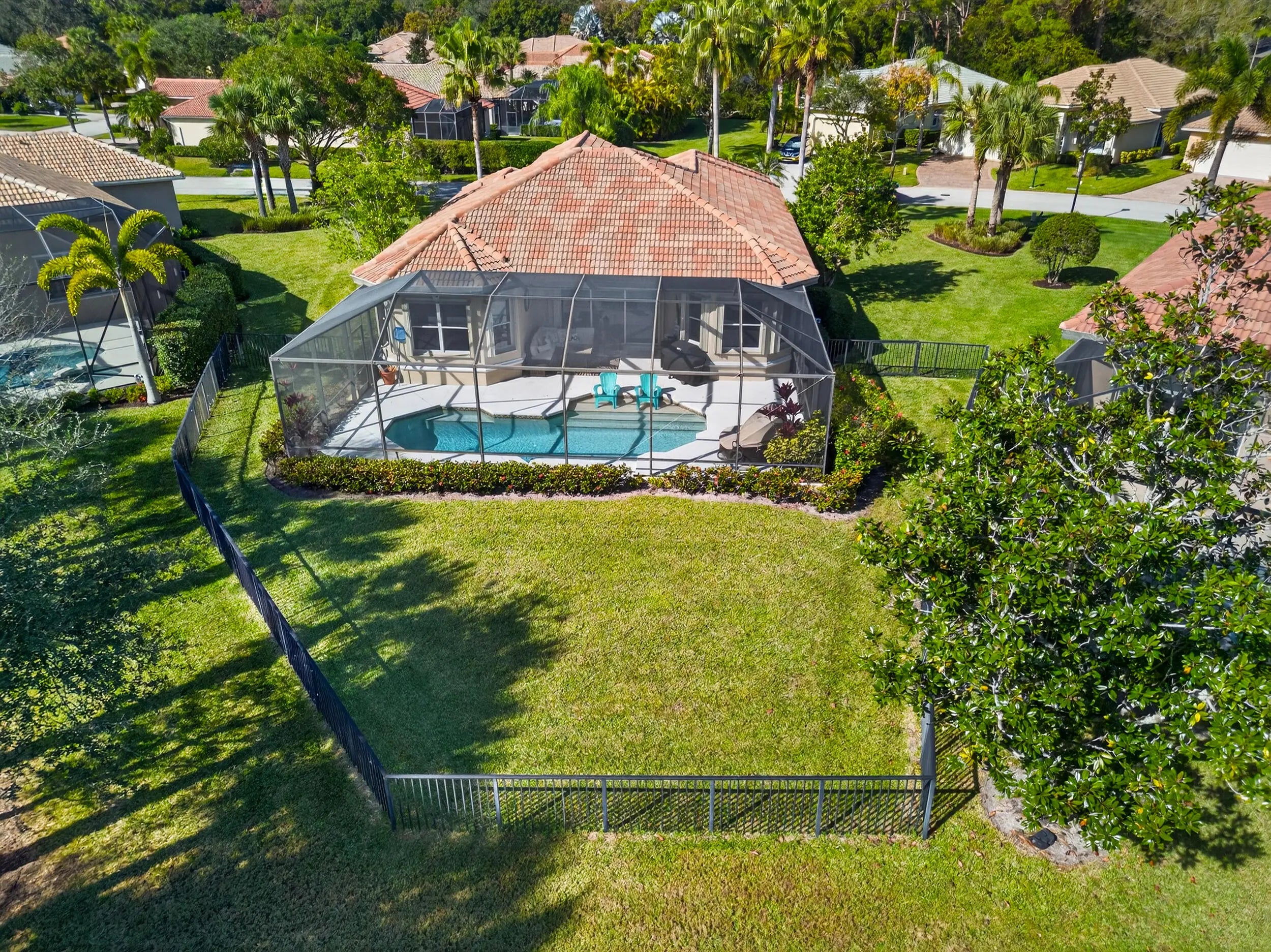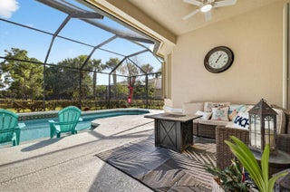 Seller is highly motivated -- bring all reasonable offers! Recent update: built-in shelving removed from the living room creating a more open floor plan. Welcome to 7613 Greenbrier Circle, a lake-view pool home located in the highly desirable Greenbrier community of PGA Village, where very few homes are currently available. Situated on a spacious corner lot, this home features one of the only fully fenced yards in Greenbrier -- a rare and highly sought-after feature that provides added privacy and a secure outdoor space, especially appealing for pet owners. Originally a former model home, the residence offers soaring ceilings, custom details, and a bright open layout. The large built-in shelving in the living room has been removed, creating a more open and versatile living space. Recent updates include: " Custom plantation shutters throughout " Fresh interior paint " New vanity in the second bathroom " Updated light fixtures " Pool converted to saltwater The screened lake-view pool and patio provide the perfect setting for relaxing or entertaining, while the kitchen features all appliances just one year old with a 5-year warranty. Located near the community gate with easy access to championship golf and the Island Club, residents enjoy resort-style amenities including a pool, fitness center, tennis, pickleball, and a full calendar of social activities. Highly motivated seller -- bring all reasonable offers! Opportunities like this in Greenbrier are limited.