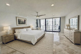 Sweeping Ocean to Intracoastal views and an open floor plan define this beautifully renovated unit. Completed in 2021, this light filled condo features an elegant chefs kitchen with calcite slab, custom cabinetry and Matte white Cafe appliances. Currently configured as a one bedroom unit, the second bedroom was opened to allow for expansive ocean views from the living and dining areas. Featuring a Murphy bed but easily transformed back into a bedroom should the need arise. Beachfront living at its best, enjoy the Oceanfront pool area with fabulous sundeck, barbecue and fitness facilities. Covered parking and full service building. For the investor this may be purchased furnished allowing for immediate rental. Reserves included in monthly HOA.