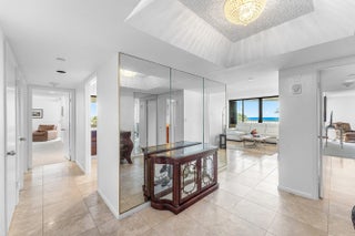 BEAUTIFUL, spacious 2/2 condo boasts breathtaking OCEAN and INTRACOASTAL views! Renovations feature Saturnia cross grain marble floors and Neff kitchen cabinets. Split floorplan with large bedrooms and walk-in closets. In-unit laundry room w/ full size washer and dryer plus utility sink. Just steps from the beach with 2 heated pools, 2 hot tubs, fitness center overlooking the ocean, sauna, shuffle board, racquetball, tennis, pickleball, billiards, and gas grills. 14 acres with 900' walkway along seawall with glass railing, green space with seating and fenced dog park. Garage parking and electric car charging stations. Close to PBI airport and world-class shopping, dining, golf & equestrian events. Make this your home or relaxing getaway.
