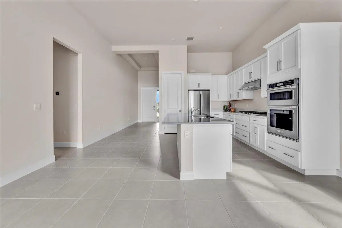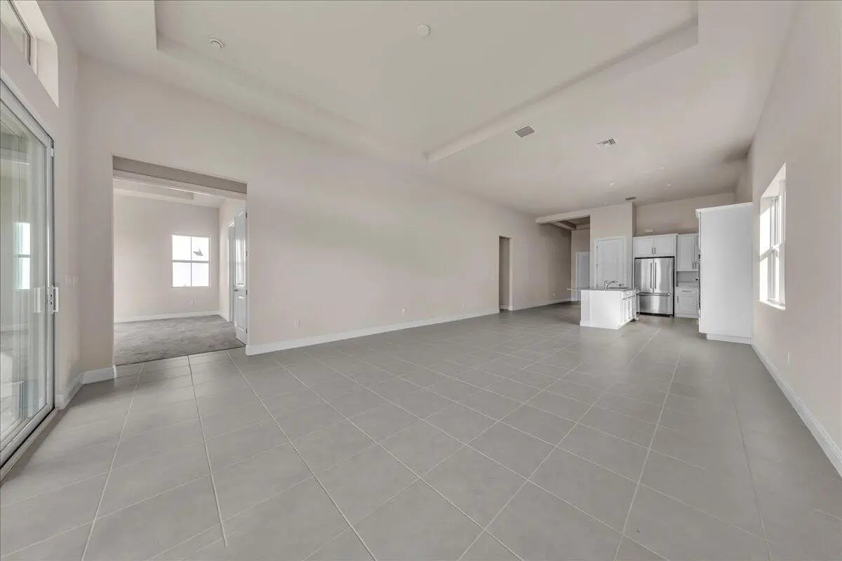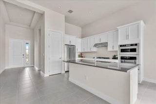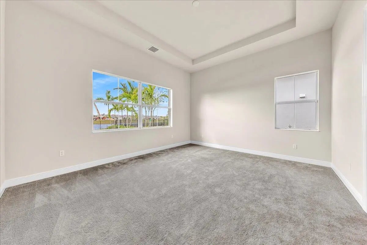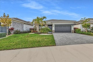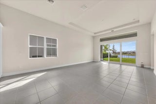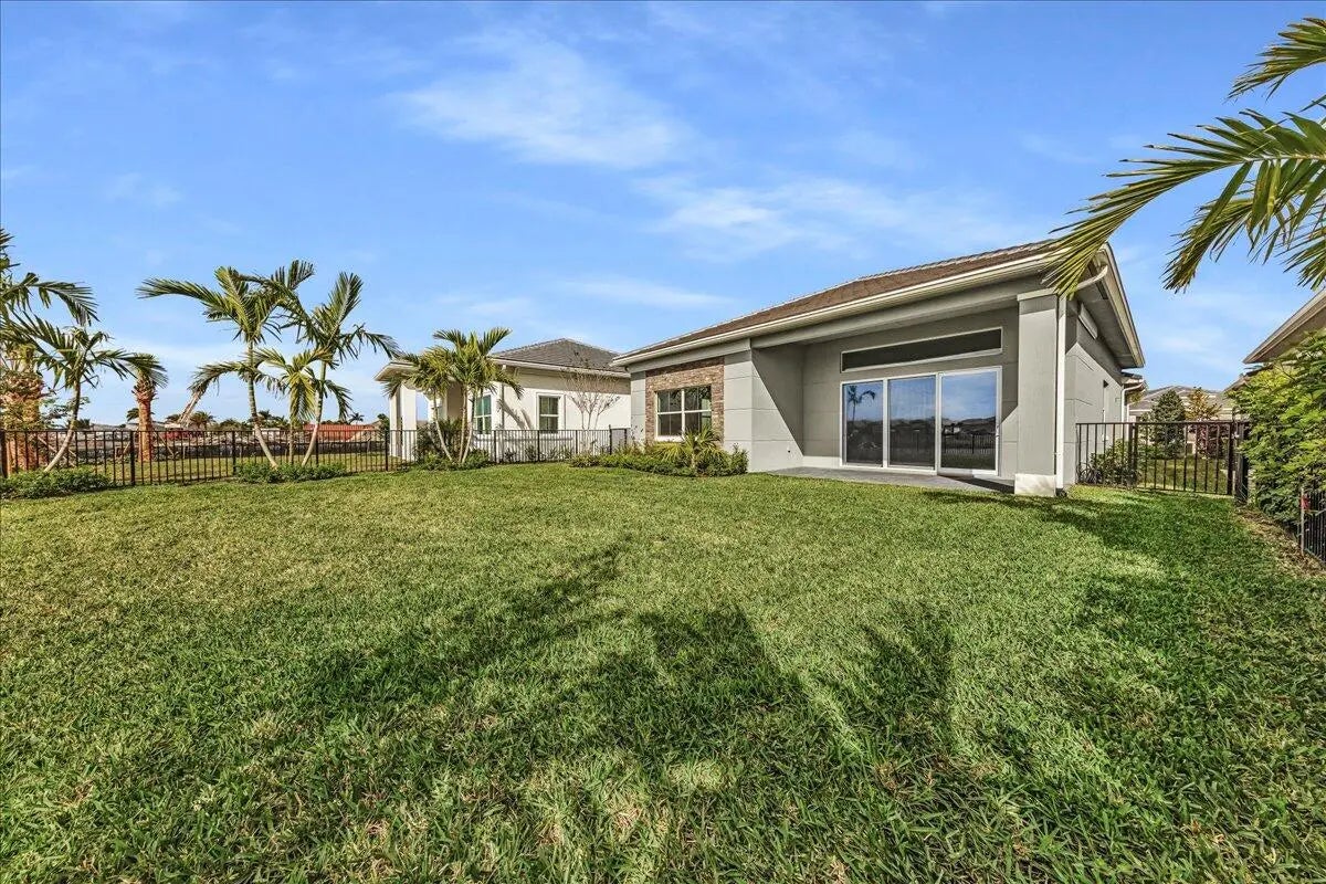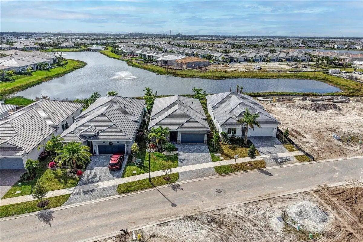 Welcome to resort-style living in Regency at Avenir, an exclusive 55+ community designed for comfort, connection, and elegance. This brand-new Samantha model has never been lived in and offers three bedrooms and two bathrooms, perfectly positioned on a premium lot with long, unobstructed lake and fountain views. The exterior is enhanced by an upgraded fenced yard with lush landscaping and palm trees which is ideal for relaxing or entertaining outdoors and there is plenty of space for a pool. Inside, you'll find soaring 12-foot vaulted ceilings and a bright open-concept floor plan that creates a spacious, airy feel throughout the home. The gourmet kitchen is appointed with 42-inch wall cabinets, sleek Silestone countertops, and Energy Star appliances by Whirlpool, making it ultra efficient The primary suite is a true retreat, featuring a spa-like bathroom with Kohler fixtures, a separate soaking tub and shower, and an upgraded rain shower head for ultimate relaxation. Additional highlights include impact doors and windows throughout, EV car charging port in the two-car garage, and Smart home features including keyless front entry, Wi-Fi thermostat, and Wi-Fi garage control access. Residents of Regency at Avenir enjoy an exceptional clubhouse lifestyle with a resort-style pool and spa, tennis and pickleball courts, indoor golf simulator, lounge, yoga studio, state-of-the-art fitness center, and so much more. This is a rare opportunity to own a new construction, never-lived-in home with premium upgrades, stunning water views, and world-class amenities perfectly tailored for active 55+ living at an excepional price.