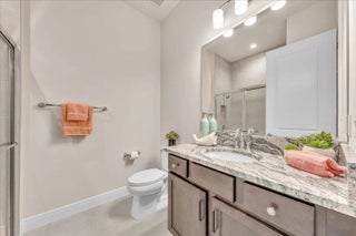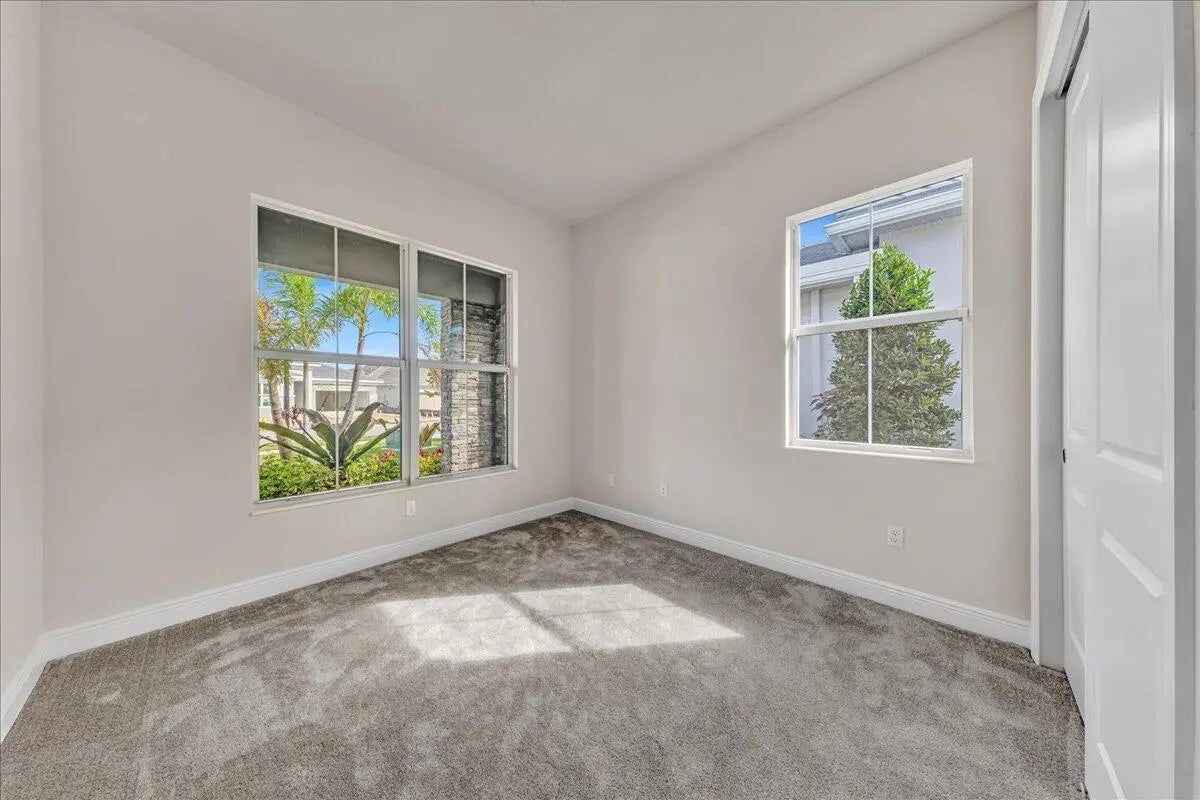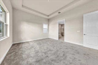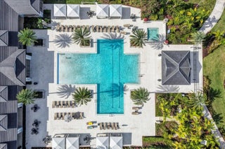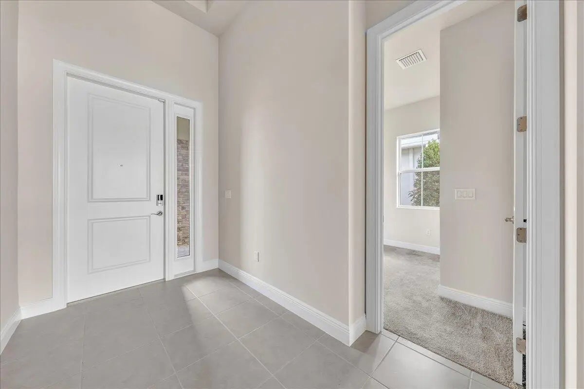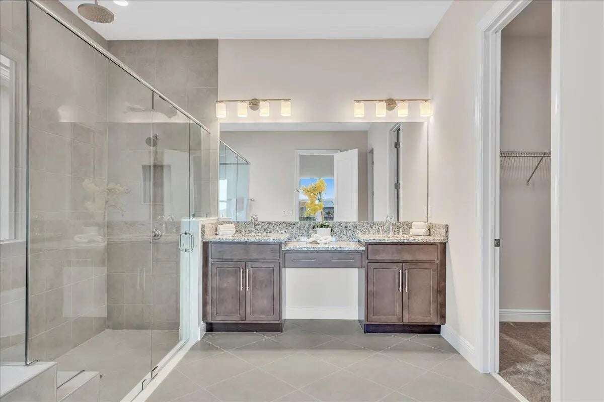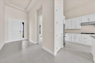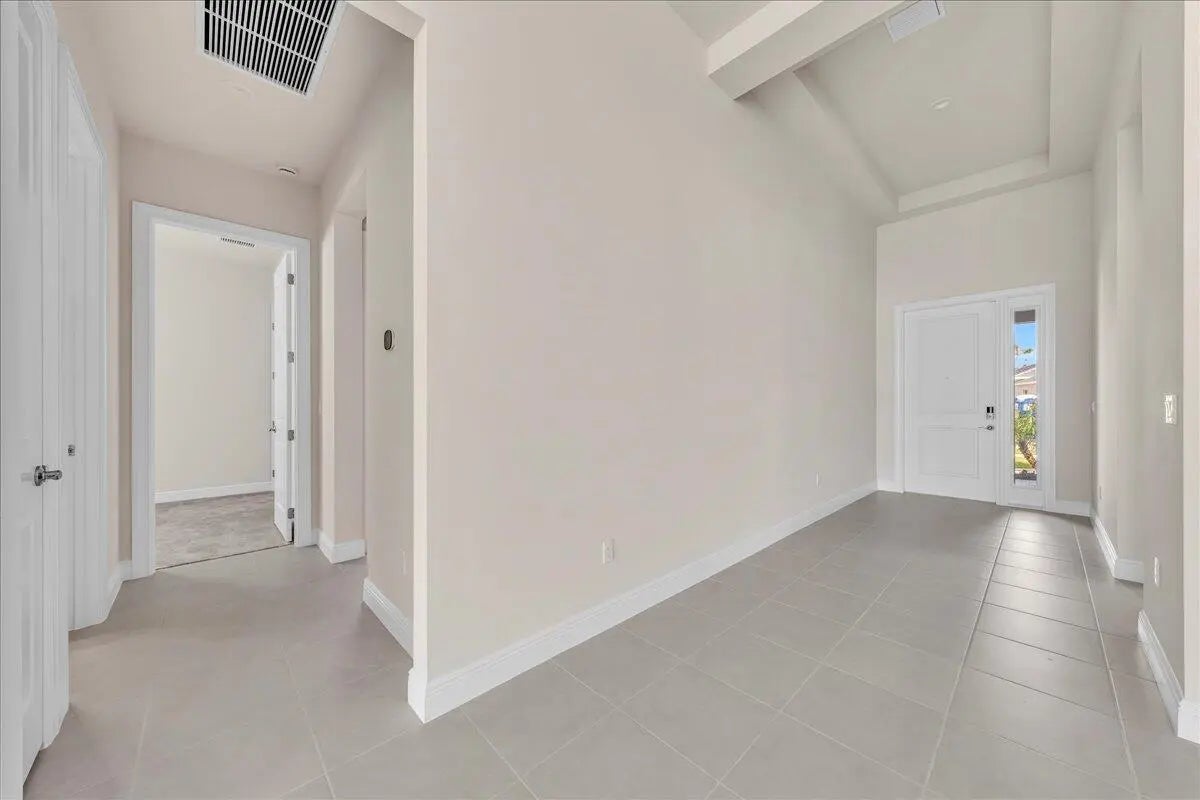 Welcome to resort-style living in Regency at Avenir, an exclusive 55+ community designed for comfort, connection, and elegance. This brand-new Samantha model has never been lived in and offers three bedrooms and two bathrooms, perfectly positioned on a premium lot with long, unobstructed lake and fountain views. The exterior is enhanced by an upgraded fenced yard with lush landscaping and palm trees which is ideal for relaxing or entertaining outdoors and there is plenty of space for a pool. Inside, you'll find soaring 12-foot vaulted ceilings and a bright open-concept floor plan that creates a spacious, airy feel throughout the home. The gourmet kitchen is appointed with 42-inch wall cabinets, sleek Silestone countertops, and Energy Star appliances by Whirlpool, making it ultra efficient The primary suite is a true retreat, featuring a spa-like bathroom with Kohler fixtures, a separate soaking tub and shower, and an upgraded rain shower head for ultimate relaxation. Additional highlights include impact doors and windows throughout, EV car charging port in the two-car garage, and Smart home features including keyless front entry, Wi-Fi thermostat, and Wi-Fi garage control access. Residents of Regency at Avenir enjoy an exceptional clubhouse lifestyle with a resort-style pool and spa, tennis and pickleball courts, indoor golf simulator, lounge, yoga studio, state-of-the-art fitness center, and so much more. This is a rare opportunity to own a new construction, never-lived-in home with premium upgrades, stunning water views, and world-class amenities perfectly tailored for active 55+ living at an excepional price.