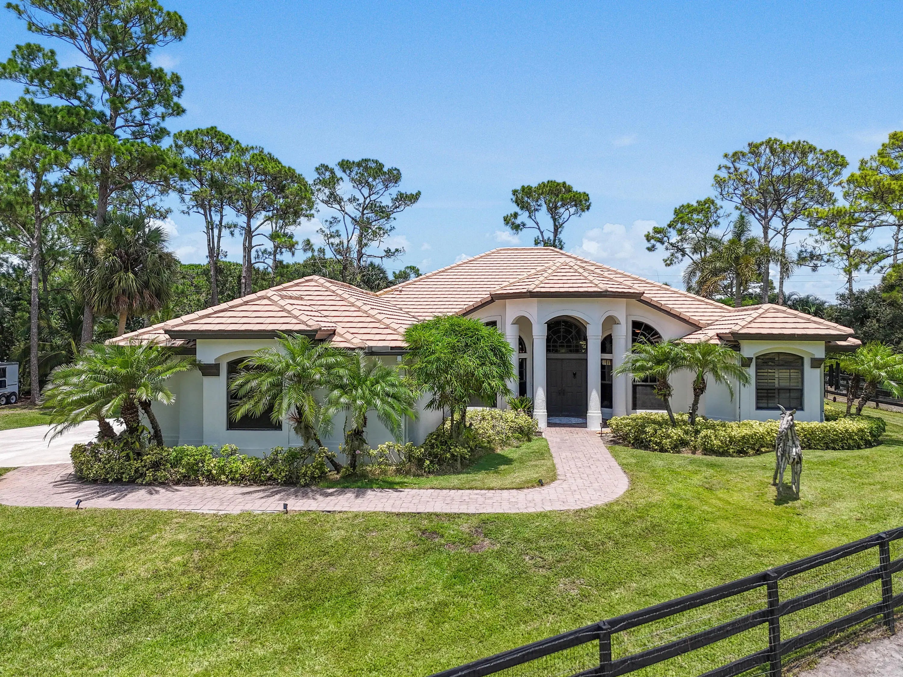 This remarkable 4/3 with den/office pool home is situated on 2+ private acres. As you enter the home, you will be greeted by a large Entry Foyer with high vaulted ceilings. The home features hurricane impact windows and doors throughout. The updated gourmet kitchen boasts high end appliances from Wolf/Sub-Zero and granite countertops. The backyard offers a tropical oasis with a large pool, sun/party deck, and screened-in patio. This is a secure, gated, and equestrian friendly community. The property has a 2-stall stable with tack/feed room, and a large fenced in area for grazing/turnout. HOA Allows 2 horses. The community also offers a park with playground, horse trails, picnic area.