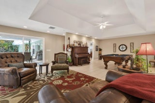 Nestled on an over-sized corner lot in the exclusive Tequesta Country Club Community, this custom built home boasts over 3,700 square feet of living space. Views of an expansive saltwater pool and covered patio are available from throughout the interior of the home. Lush palms create a private backyard oasis that invites poolside tranquility or year-round entertaining. The home also boasts a 56' long garage, perfect for your boat, RV, cars or any other toys that your lifestyle requires. The home's interior is bathed in an abundance of natural light. The open concept kitchen features a spacious center island with an extra sink and ample counter space. Other features include; a master suite with separate his and hers bathrooms, a family room with a wood-burning fireplace, built-in shelves and wet bar, and a generous sized living room with a volume tray ceiling. The home is located just a short distance from Tequesta Country Club's two riverfront parks and the community's boat ramp and day dock. All are situated along the 'Wild & Scenic' designated Loxahatchee River. Water enthusiasts will not be disappointed, while the golfer in the family has unlimited opportunities in the region. Tequesta Country Club Community residents are also offered a wealth of dining, shopping and beach options in the area.
