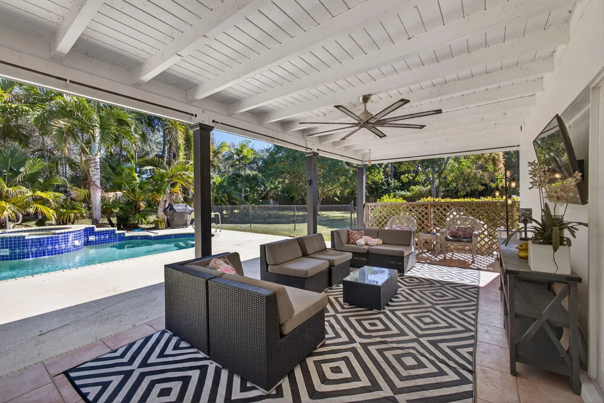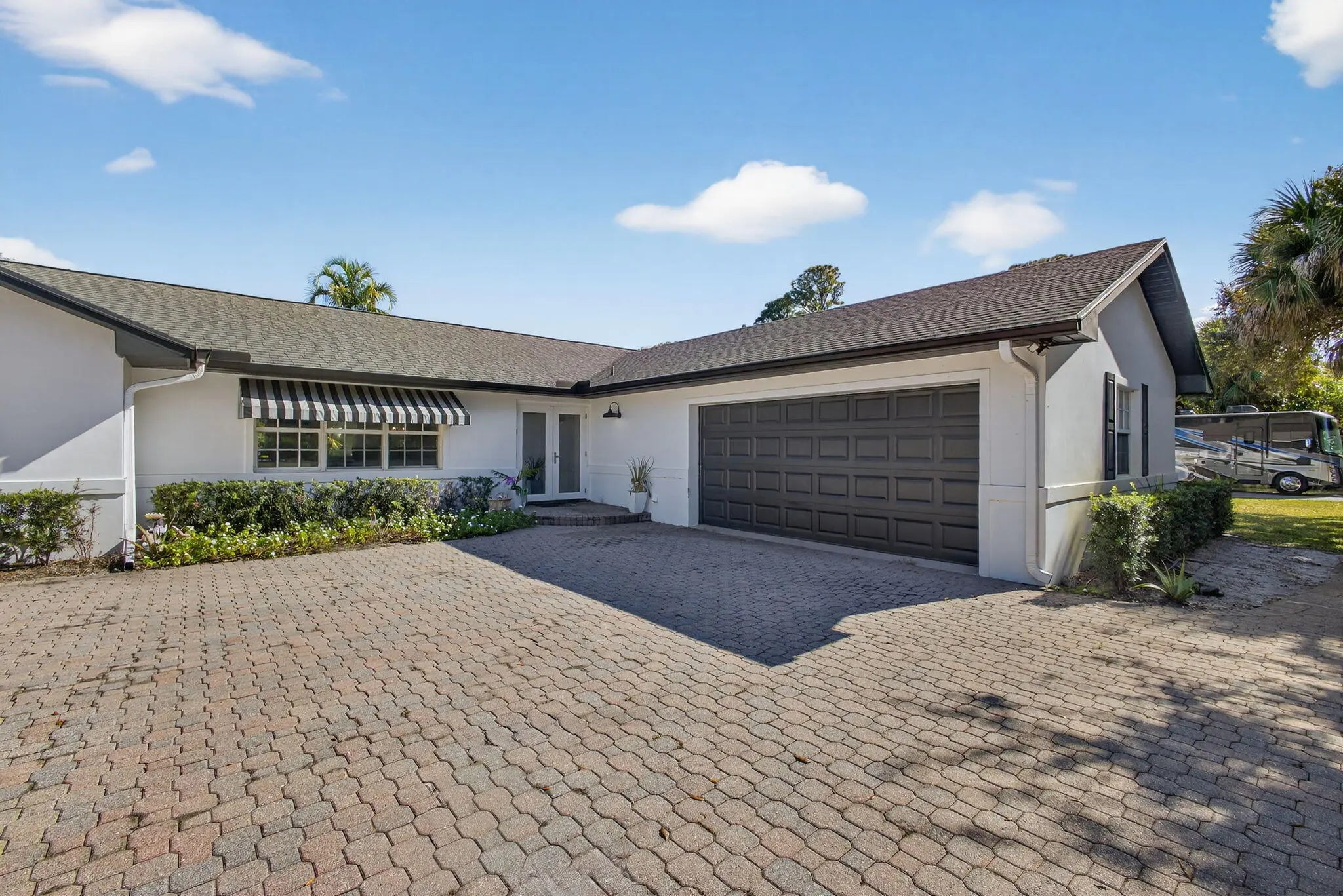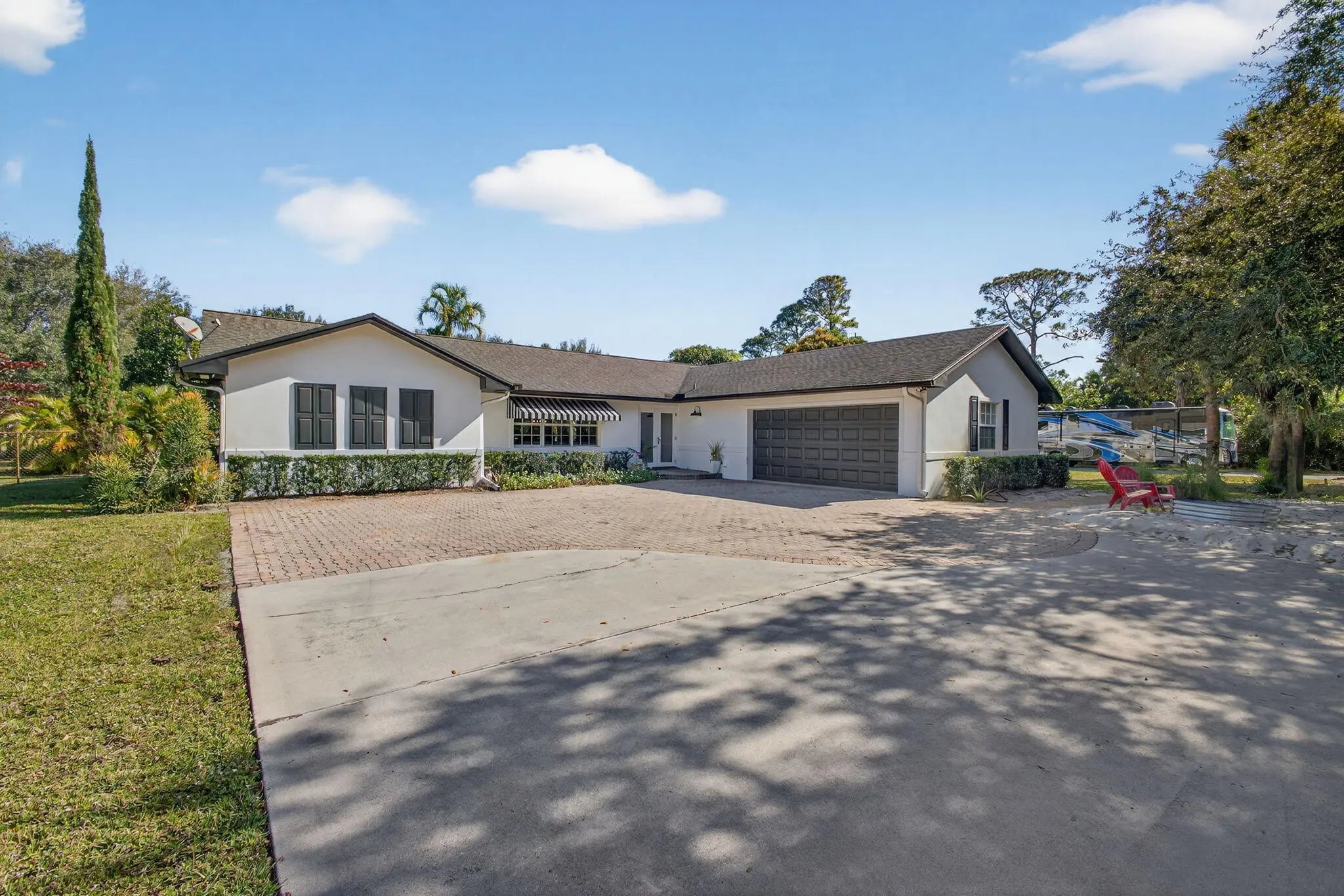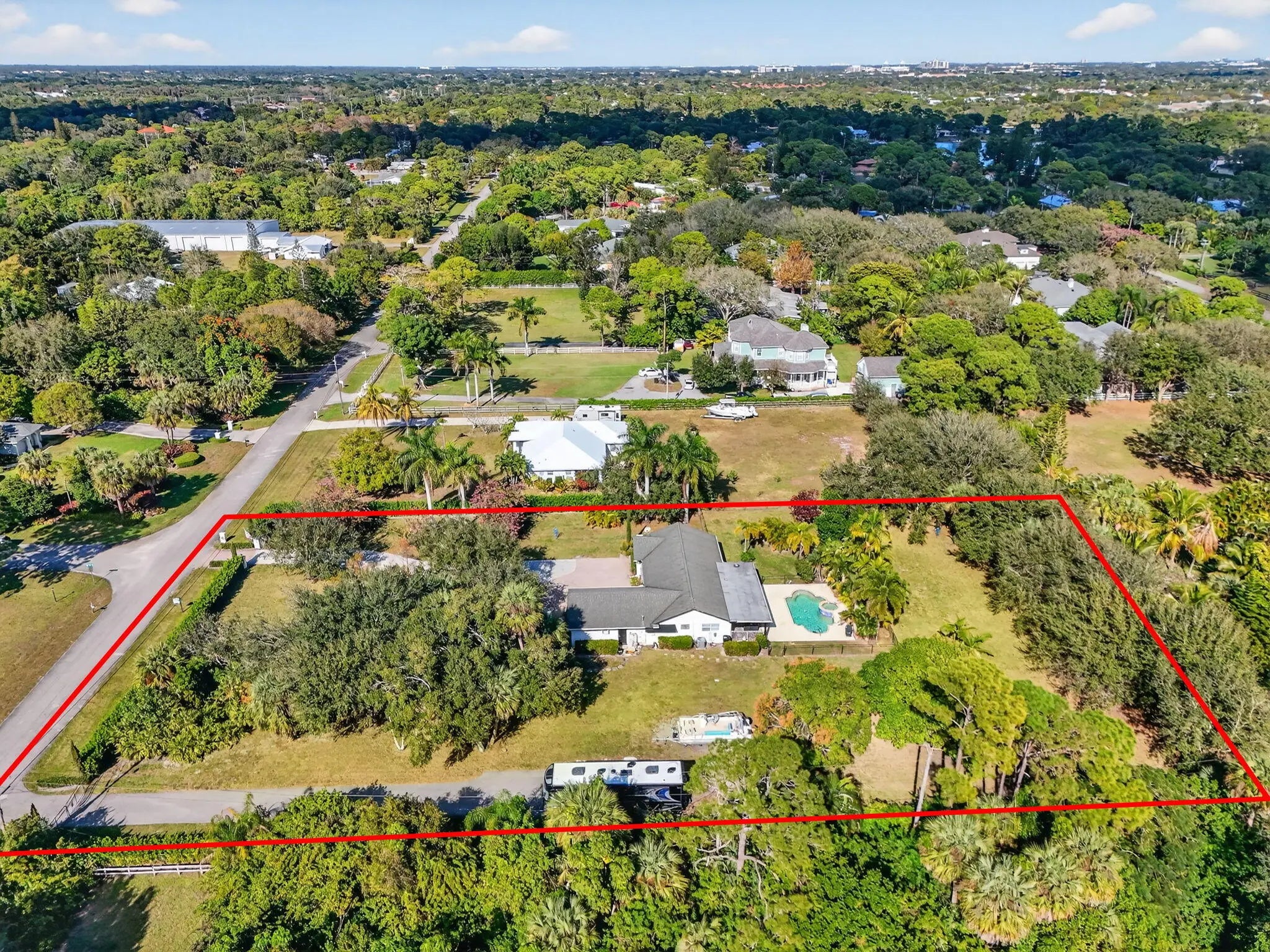 WOW! Remodeled 3/2/2 on 1.5 acres centrally located in the heart of Palm Beach Gardens in the sought after community of Square Lake. Only 1 mile to I-95 and 3 blocks to shopping. All hurricane impact windows & doors. White shaker kitchen cabinets with stainless steel appliances and granite counters. Very Open floorplan featuring tile floors and a huge 27' x 24' living area. Covered porch overlooking the pool & spa. Parking for numerous vehicles including boats, RV;s etc. Seller collects $885/ month by renting space to RV & boat owners now on a month to month basis. Barn doors separate the living area from bedrooms 2 & 3. In 2021 kitchen appliances were replaced as well as pool heater, reverse osmosis system, new attic insulation, new AC, new well pump and new carbon water filtration