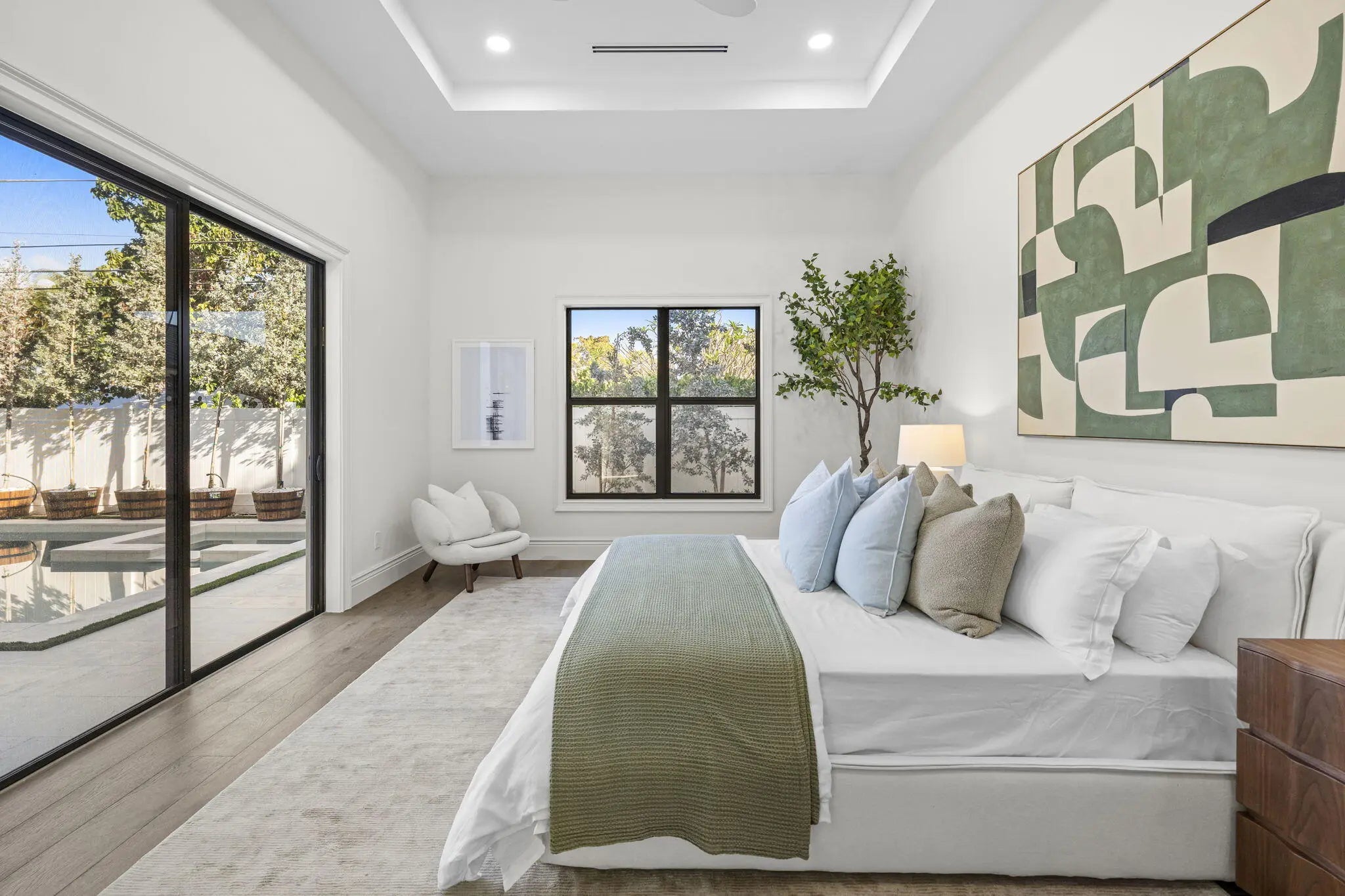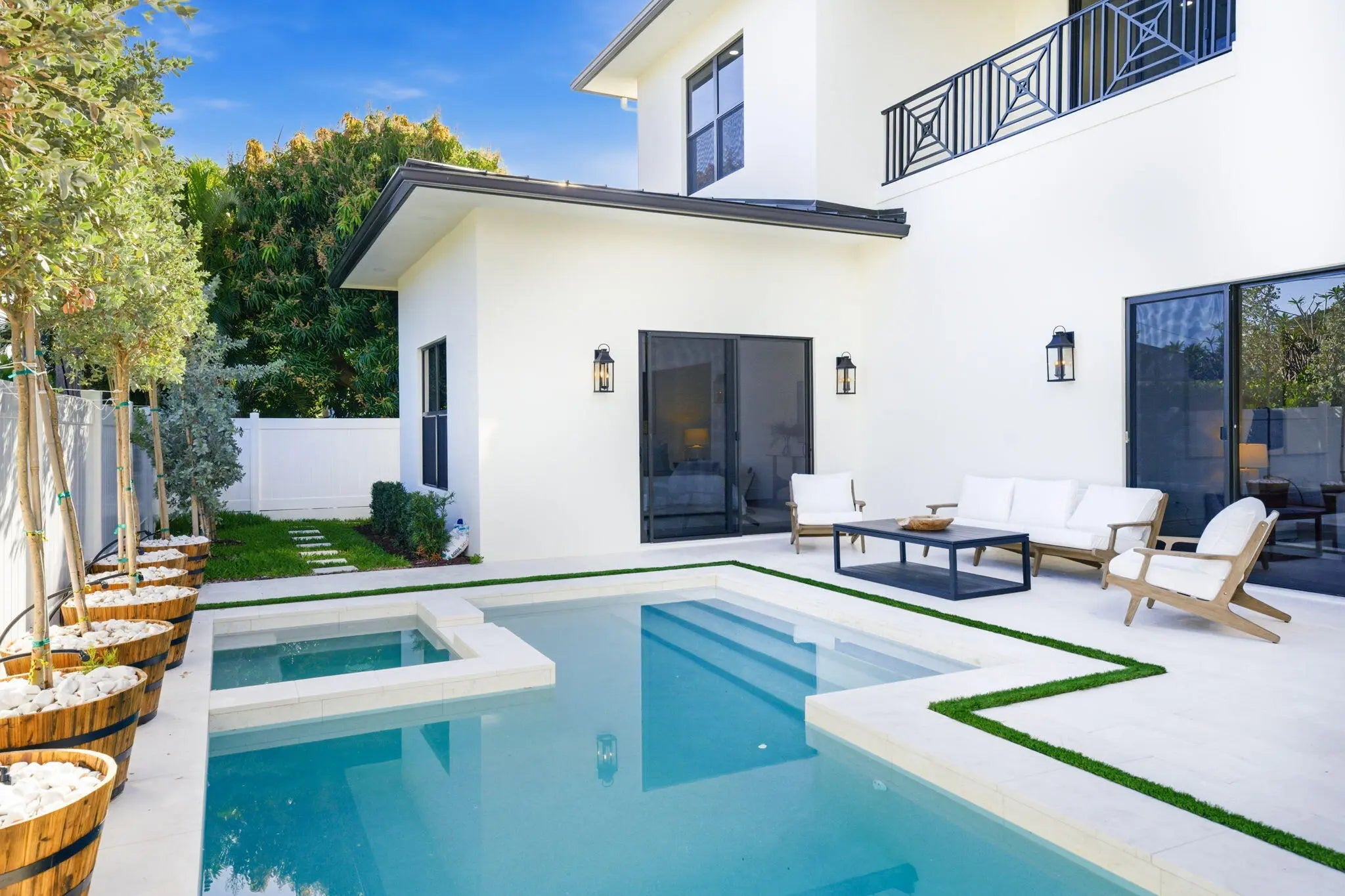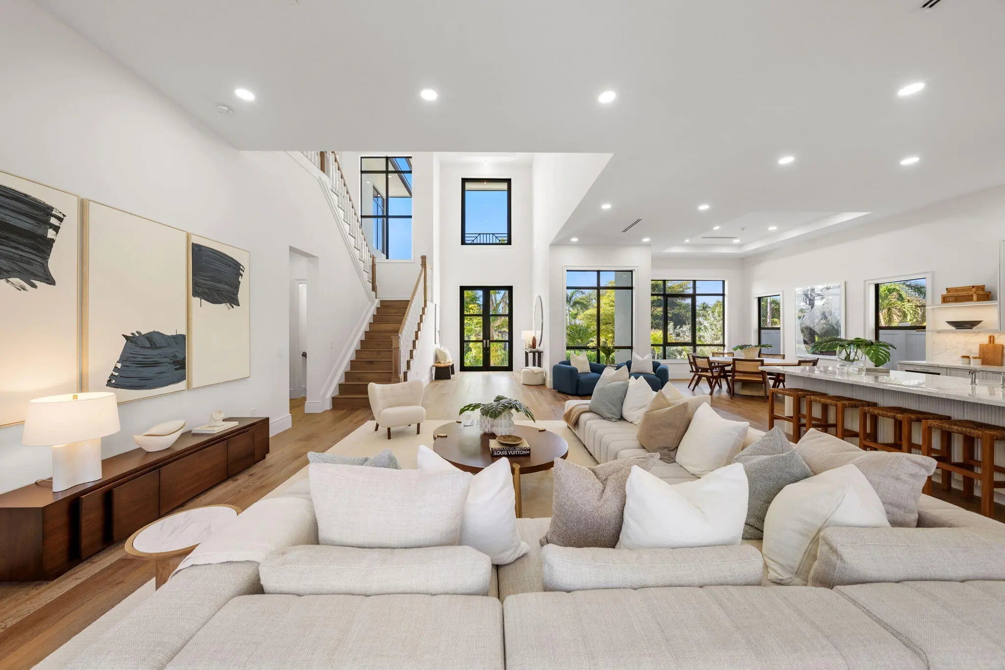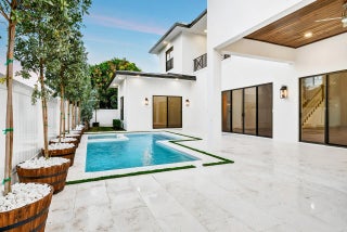 Completed in 2025, this new-construction residence is ideally positioned on a quiet street within the sought-after SoSo enclave, offering coastal living moments from the Intracoastal Waterway. Spanning 4,358 SF of living space (5,133 TSF), the home features five bedrooms, an office, five full baths, and one half-bath. The layout includes a first-floor primary suite and a second upstairs primary suite, providing rare flexibility for modern living. Light-filled interiors showcase clean architectural lines, volume ceilings, wood flooring, and an open-concept layout that flows seamlessly to covered outdoor living, pool, and spa. Select second-floor rooms offer glimpses of the Intracoastal. Located near the Flagler Drive bike path, Summa Beach, tennis and golf, marinas, downtown West Palm Beach, CityPlace, and PBI Airport, the home enjoys a quiet residential setting with convenient access to Palm Beach Island and the surrounding waterfront and beaches. Note: FPL is currently working on undergrounding electrical power lines in the neighborhood. All measurements and information are deemed reliable but not guaranteed. Buyer to independently verify.