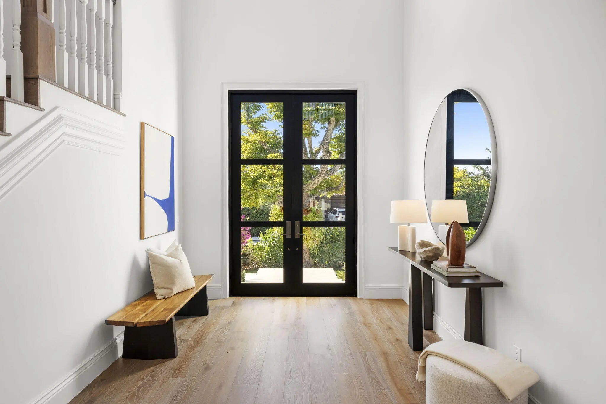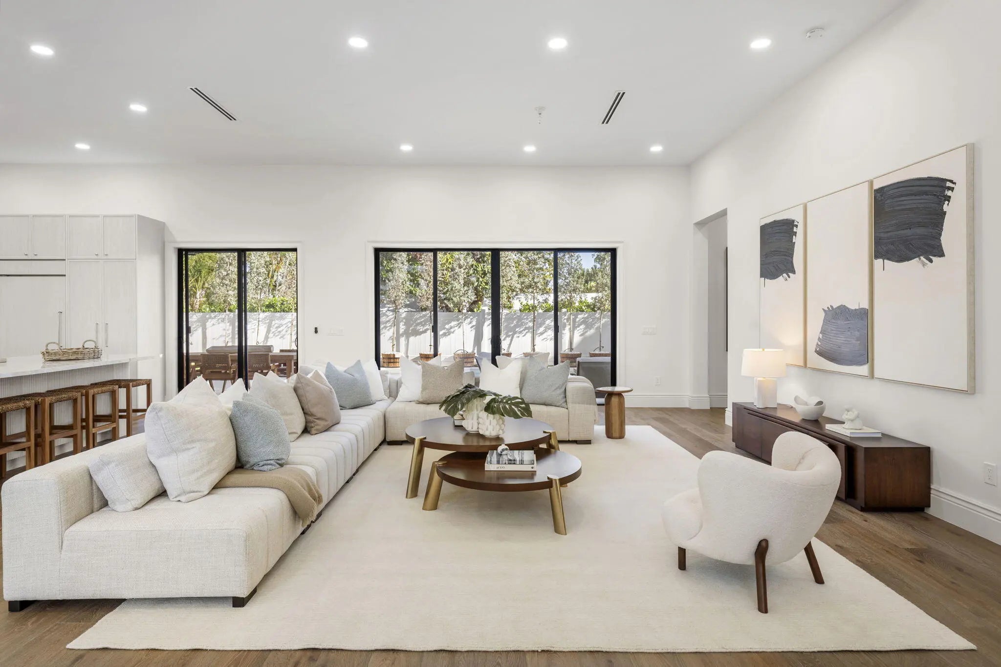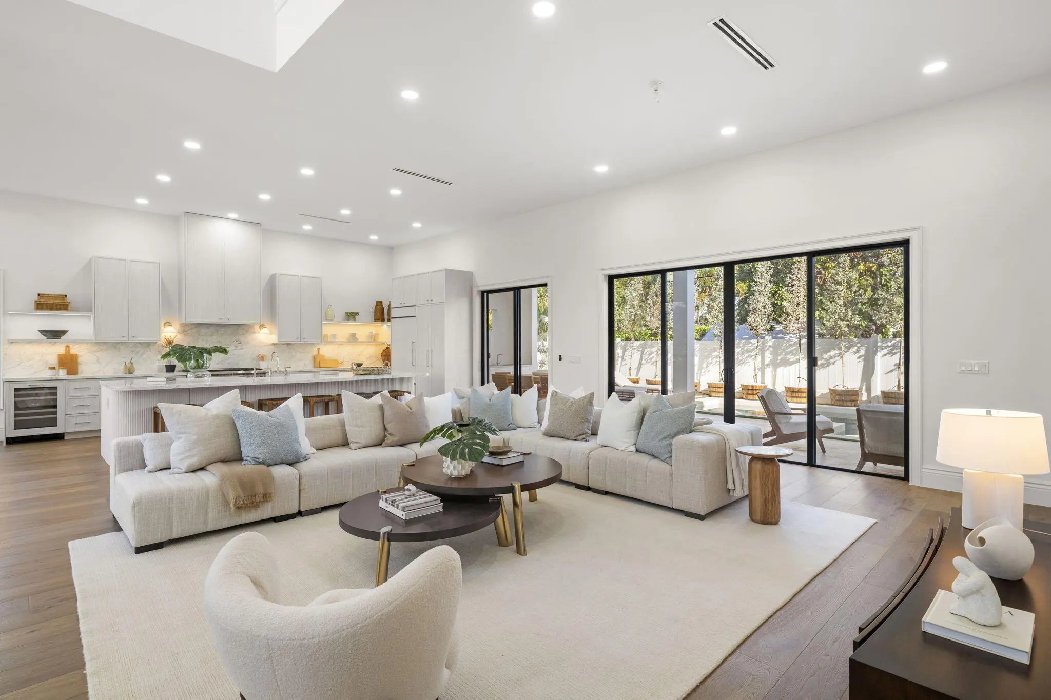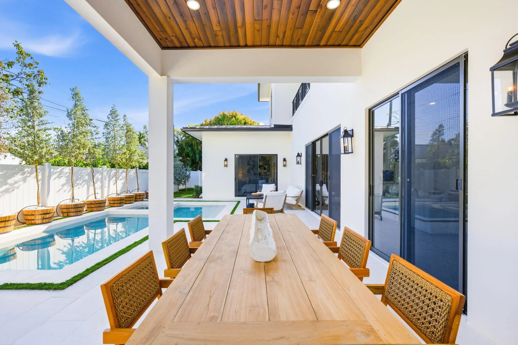 Completed in 2025, this new-construction residence is ideally positioned on a quiet street within the sought-after SoSo enclave, offering coastal living moments from the Intracoastal Waterway. Spanning 4,358 SF of living space (5,133 TSF), the home features five bedrooms, an office, five full baths, and one half-bath. The layout includes a first-floor primary suite and a second upstairs primary suite, providing rare flexibility for modern living. Light-filled interiors showcase clean architectural lines, volume ceilings, wood flooring, and an open-concept layout that flows seamlessly to covered outdoor living, pool, and spa. Select second-floor rooms offer glimpses of the Intracoastal. Located near the Flagler Drive bike path, Summa Beach, tennis and golf, marinas, downtown West Palm Beach, CityPlace, and PBI Airport, the home enjoys a quiet residential setting with convenient access to Palm Beach Island and the surrounding waterfront and beaches. Note: FPL is currently working on undergrounding electrical power lines in the neighborhood. All measurements and information are deemed reliable but not guaranteed. Buyer to independently verify.