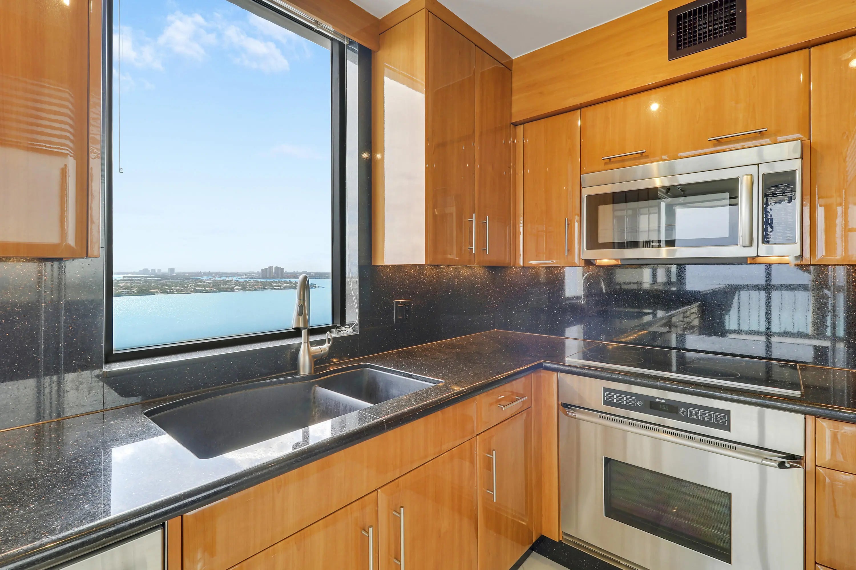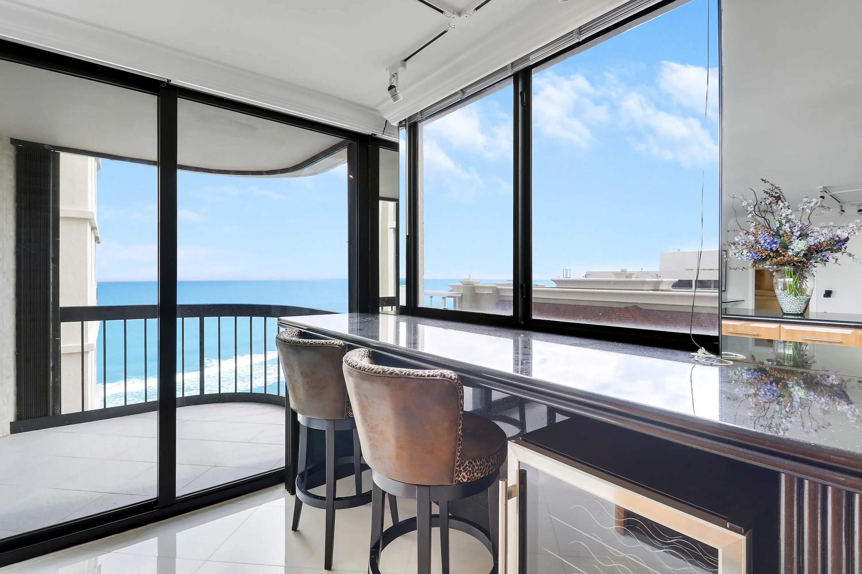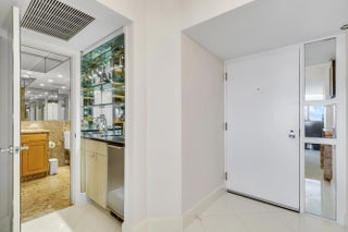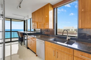 Enjoy panoramic Ocean and Intracoastal views from this beautifully appointed 20th-floor Eastpointe residence, offered fully furnished and turnkey. The 2-bedroom, 2-bath split layout features white quartz flooring throughout and bright open living spaces. The custom Irpinia high-gloss kitchen showcases Galaxy granite countertops and top-tier Sub-Zero, Miele, and Bosch appliances. Additional highlights include walk-in closets, updated bathrooms with granite countertops, remodeled showers, and designer custom built-ins. Covered parking included. Eastpointe amenities include a heated beachfront pool and hot tub, barbecue area, fitness center with saunas, Ocean Club, billiard room and library, private beach access, doorman/concierge, and 24-hour guard gate.