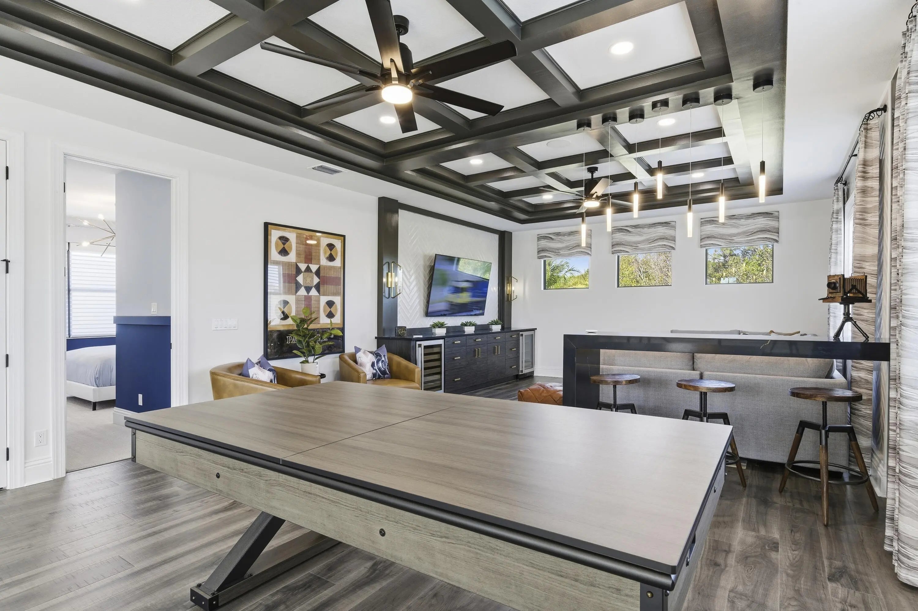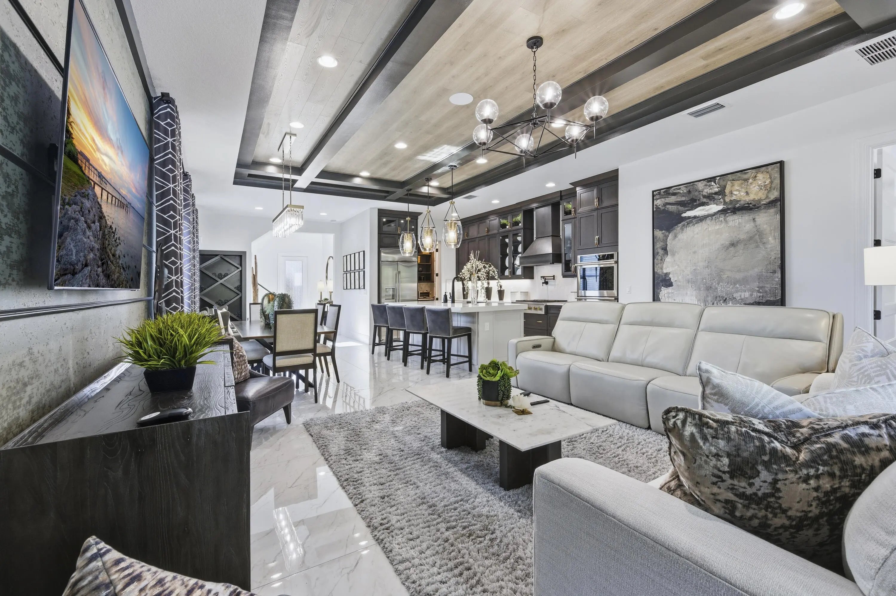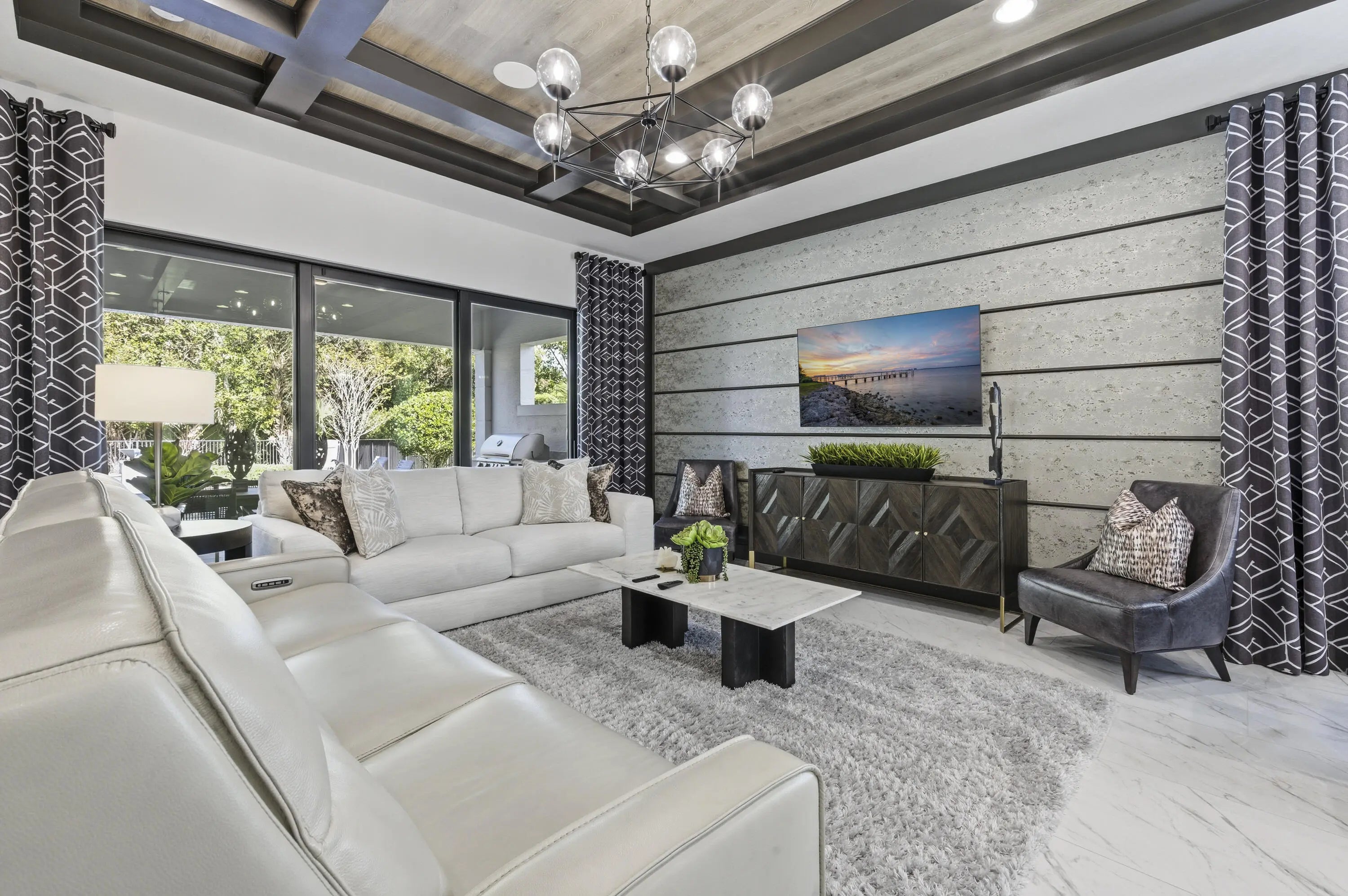 This move-in ready, fully furnished home sits on a rare oversized lot on a quiet cul-de-sac of Artistry Palm Beach. Located in the model row section, the street is free from through traffic offering exceptional privacy. This original model home, showcases all of the most extravagant upgrades and decorator-selected furnishings. The main living areas include a chef's kitchen with butler's pantry, elegant dining area and an expansive great room. The first-floor primary suite features a large walk-in-closet and spa-inspired bath with custom-tiled shower and soaking tub. Upstairs are three additional bedrooms and bathrooms and a large den/game room. The rear yard backs to a nature preserve and features a resort-style pool, spa, summer kitchen, and covered lanai. Luxury living at its finest! Don't miss the opportunity to live in this amazing 4 bedroom and 4 1/2 bathroom home, featuring extensive custom finishes and premium design features throughout. The Options selected for this original Artistry model home, showcases all of the most extravagant upgrades and decorator-selected furnishings, including custom lighting, wall coverings, built-ins, artwork and numerous other decorative elements. A light-filled two-story foyer welcomes you with white tile flooring and a striking wood and wire staircase. The main living areas include an intimate seating area, chef's kitchen with butler's pantry, elegant dining area and an expansive great room highlighted by custom ceilings, wall coverings, and high-end lighting. A beautifully appointed office/library featuring custom illuminated built-ins and designer finishes in addition to a well-appointed laundry room with custom cabinetry and countertops is conveniently located on the main level. The great room opens to a full wall of sliding glass doors which leads to a covered lanai with summer kitchen and dining area overlooking the resort-style pool, spa, paver deck, and custom water features. The oversized lot at 55' x 165' is only one of two lots of this size in the community, providing an additional 25 feet of backyard depth. The original premium of this home site exceeded $660,000 and provides additional privacy by backing up to a serene nature preserve. Throughout the home are coordinated window treatments, including Hunter Douglas Silhouette motorized shades with light-filtering and room-darkening options. Custom lighting and remote-controlled ceiling fans add to the overall character and convenience of each space. The entire house is also wired for sound. Move-in ready and impeccably maintained, this exceptional home offers a rare opportunity in Artistry Palm Beach.