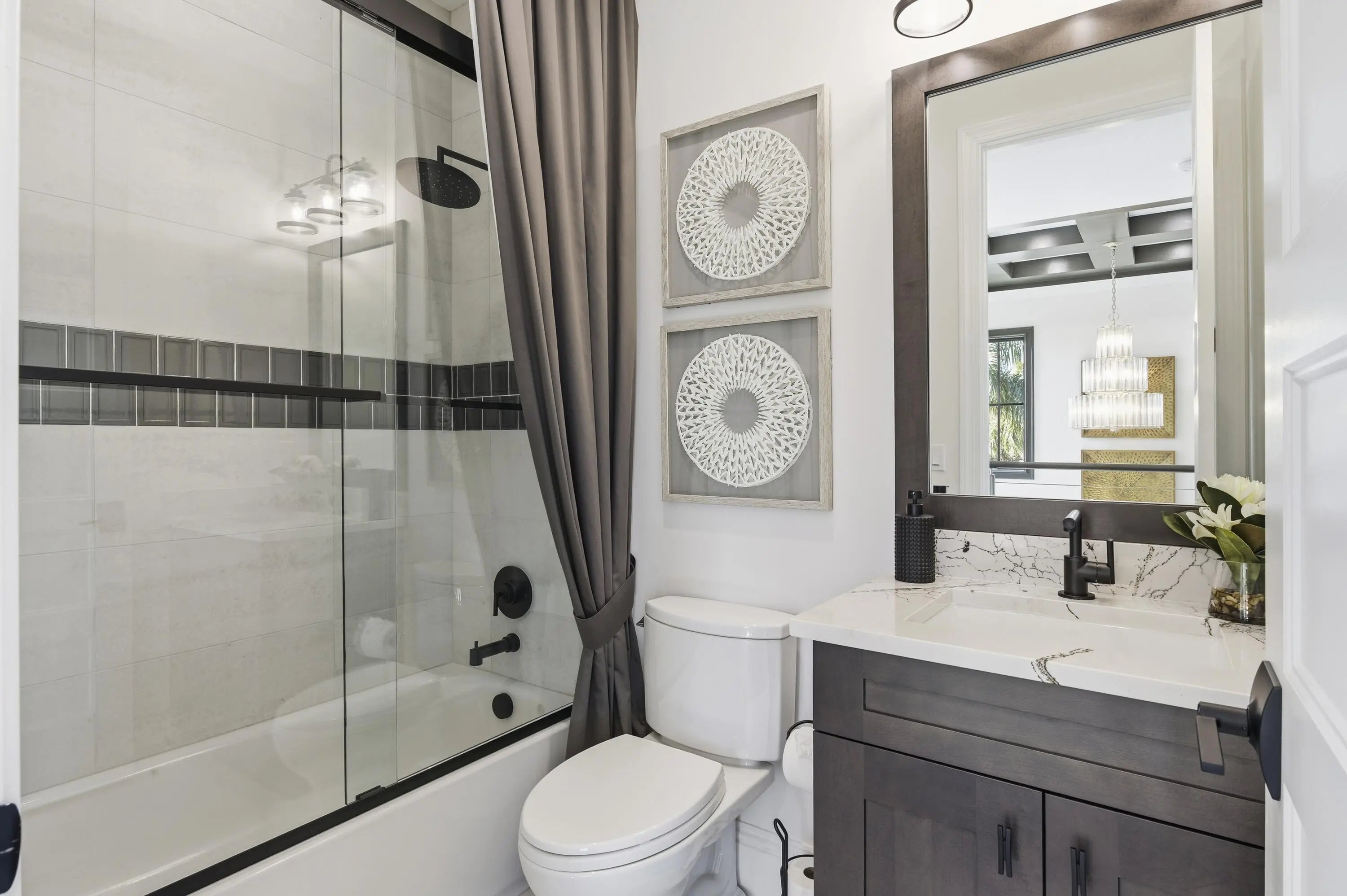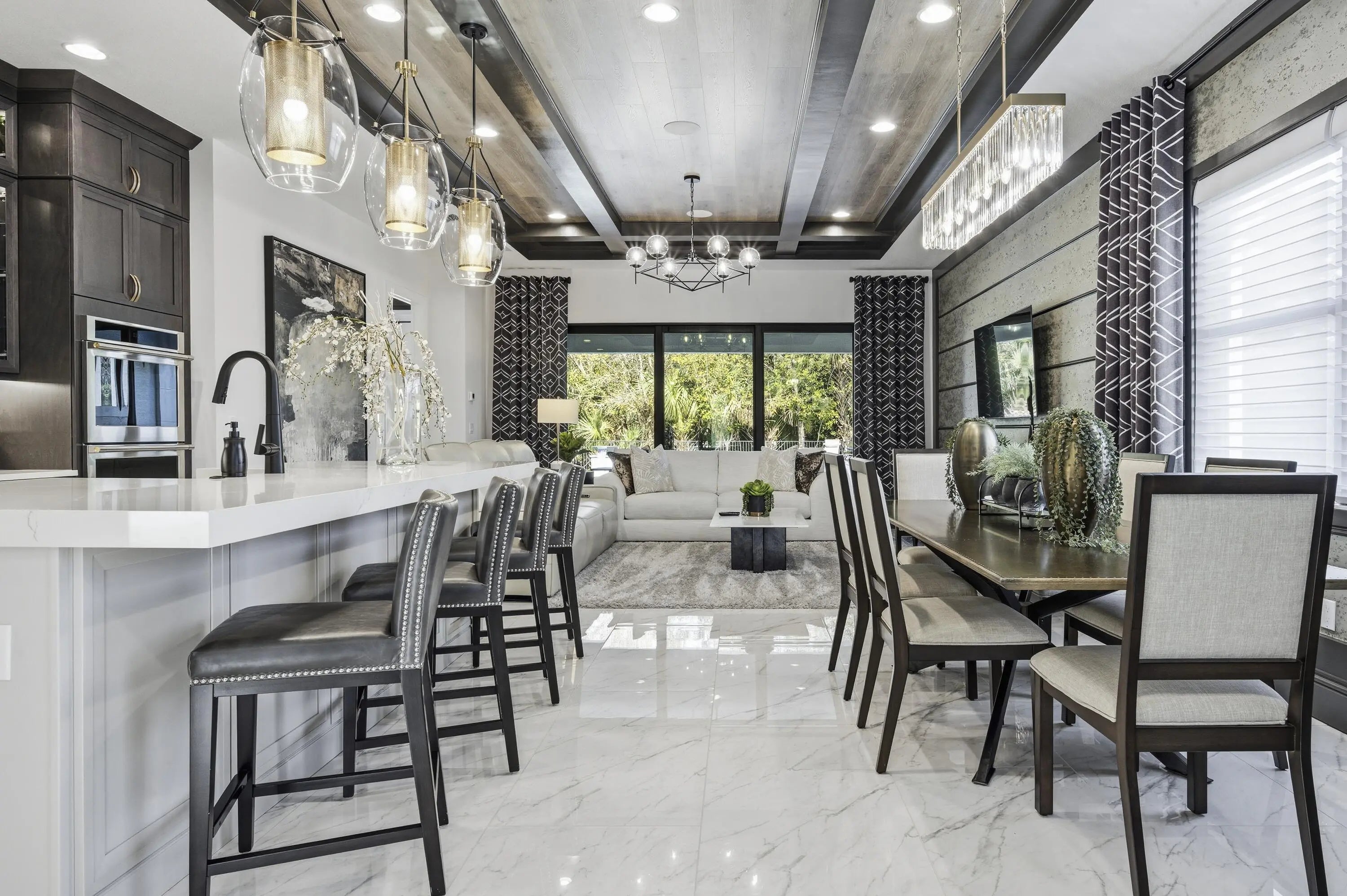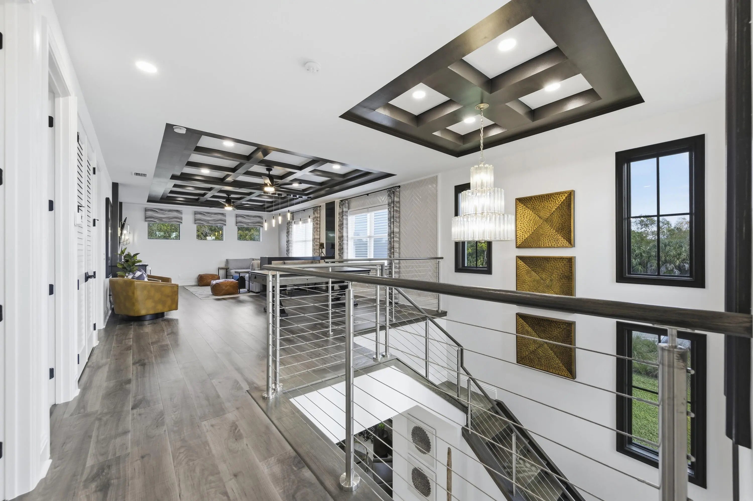 This move-in ready, fully furnished home sits on a rare oversized lot on a quiet cul-de-sac of Artistry Palm Beach. Located in the model row section, the street is free from through traffic offering exceptional privacy. This original model home, showcases all of the most extravagant upgrades and decorator-selected furnishings. The main living areas include a chef's kitchen with butler's pantry, elegant dining area and an expansive great room. The first-floor primary suite features a large walk-in-closet and spa-inspired bath with custom-tiled shower and soaking tub. Upstairs are three additional bedrooms and bathrooms and a large den/game room. The rear yard backs to a nature preserve and features a resort-style pool, spa, summer kitchen, and covered lanai. Luxury living at its finest! Don't miss the opportunity to live in this amazing 4 bedroom and 4 1/2 bathroom home, featuring extensive custom finishes and premium design features throughout. The Options selected for this original Artistry model home, showcases all of the most extravagant upgrades and decorator-selected furnishings, including custom lighting, wall coverings, built-ins, artwork and numerous other decorative elements. A light-filled two-story foyer welcomes you with white tile flooring and a striking wood and wire staircase. The main living areas include an intimate seating area, chef's kitchen with butler's pantry, elegant dining area and an expansive great room highlighted by custom ceilings, wall coverings, and high-end lighting. A beautifully appointed office/library featuring custom illuminated built-ins and designer finishes in addition to a well-appointed laundry room with custom cabinetry and countertops is conveniently located on the main level. The great room opens to a full wall of sliding glass doors which leads to a covered lanai with summer kitchen and dining area overlooking the resort-style pool, spa, paver deck, and custom water features. The oversized lot at 55' x 165' is only one of two lots of this size in the community, providing an additional 25 feet of backyard depth. The original premium of this home site exceeded $660,000 and provides additional privacy by backing up to a serene nature preserve. Throughout the home are coordinated window treatments, including Hunter Douglas Silhouette motorized shades with light-filtering and room-darkening options. Custom lighting and remote-controlled ceiling fans add to the overall character and convenience of each space. The entire house is also wired for sound. Move-in ready and impeccably maintained, this exceptional home offers a rare opportunity in Artistry Palm Beach.