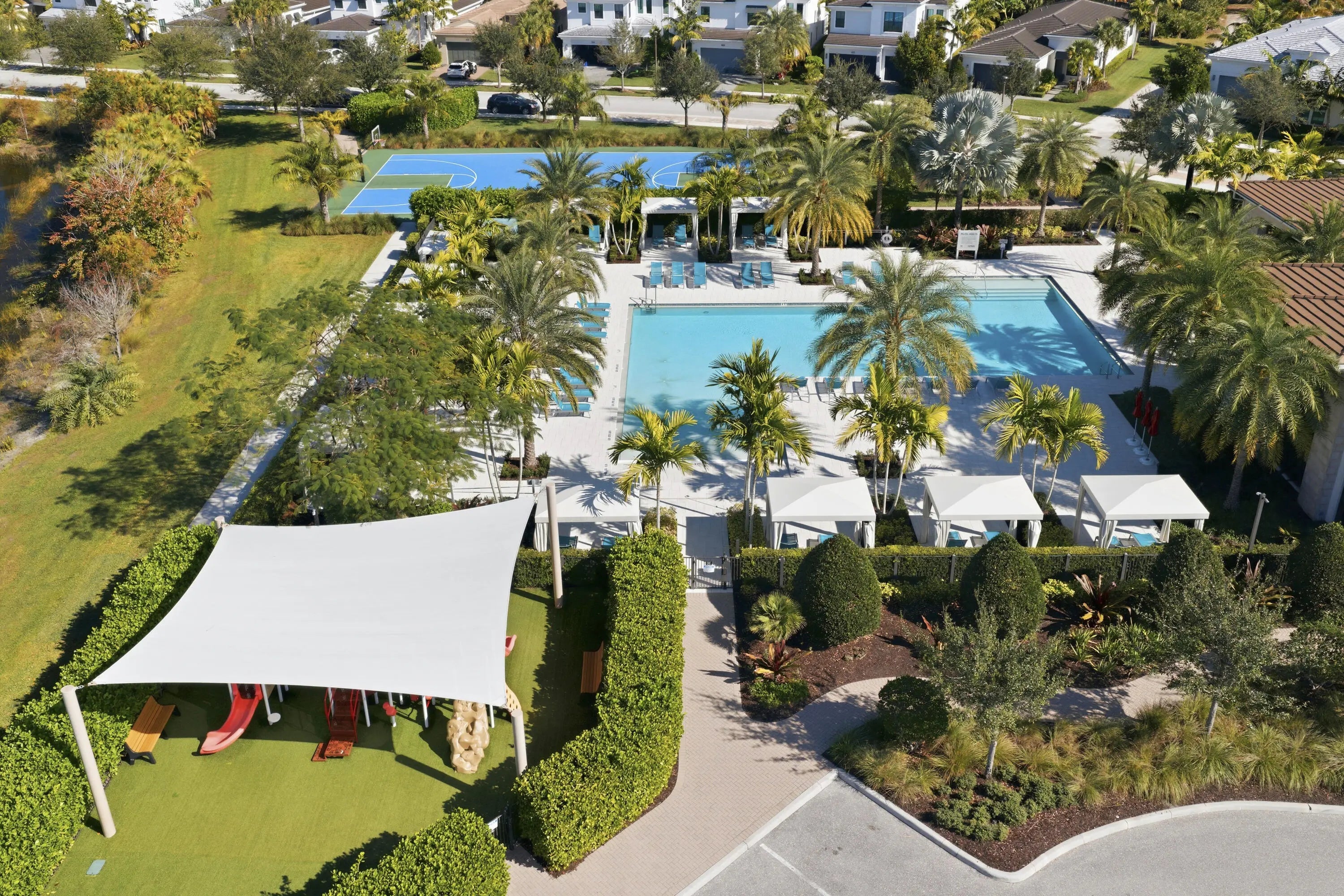 Basketball Court, Cabana, Clubhouse, Fitness Center, Jogging Path, Playground, Pool, Spa/Hot Tub, Sidewalks, Street Lights