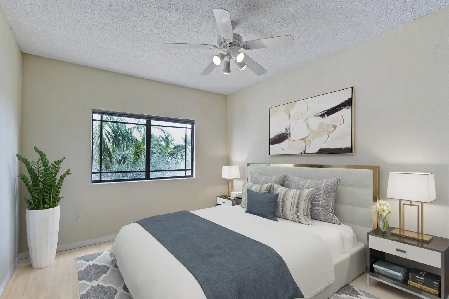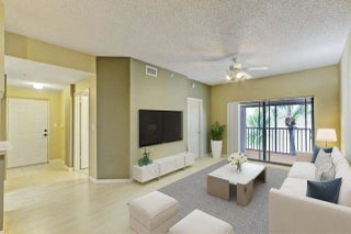 Resort-style gated community located in 1 of the top-voted cities to live in S. Florida. This top-floor corner unit offers 2 bedrooms and 2 bathrooms with a light and bright split floor plan and no unit above. Impact windows throughout provide peace of mind and added quietness. The spacious primary suite features a large walk-in closet, plus an exterior storage room assigned to the unit. Centrally located near PBI Airport, West Palm Beach, I-95, Florida Turnpike, Whole Foods, PGA National Golf Resort, beaches, Gardens Mall, and more. Resort-style amenities include a pool, hot tub, gym, racquetball, tennis, pickle-ball, steam room, sauna etc. 2022 roof, 2021 range, water heater, AC; washer and dryer. HOA includes water, exterior maintenance and building insurance. No lease waiting period.