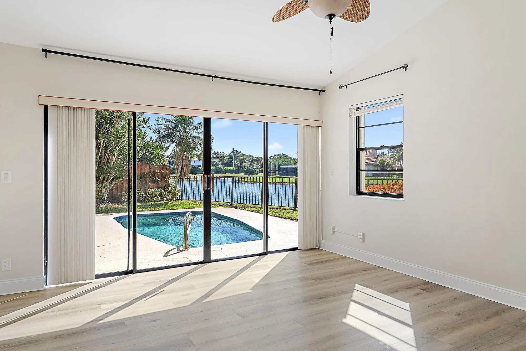 Endless potential to create your dream home! Located in a highly desirable area, this property presents incredible potential for buyers looking to create a custom residence. Enjoy scenic water views from your private backyard pool and patio. This 3-bedroom, 2.5-bath residence offers nearly 2,000 square feet under air and features a versatile loft and downstairs den. The open floor plan is complemented by 2024 accordion shutters for hurricane protection, and a new pool filter. Crystal Pointe is a 24-hour manned gated community offering pickleball, tennis, basketball, handball, a fitness center, clubhouse, and community pool. Ideally located near world-class dining, shopping, and beaches.