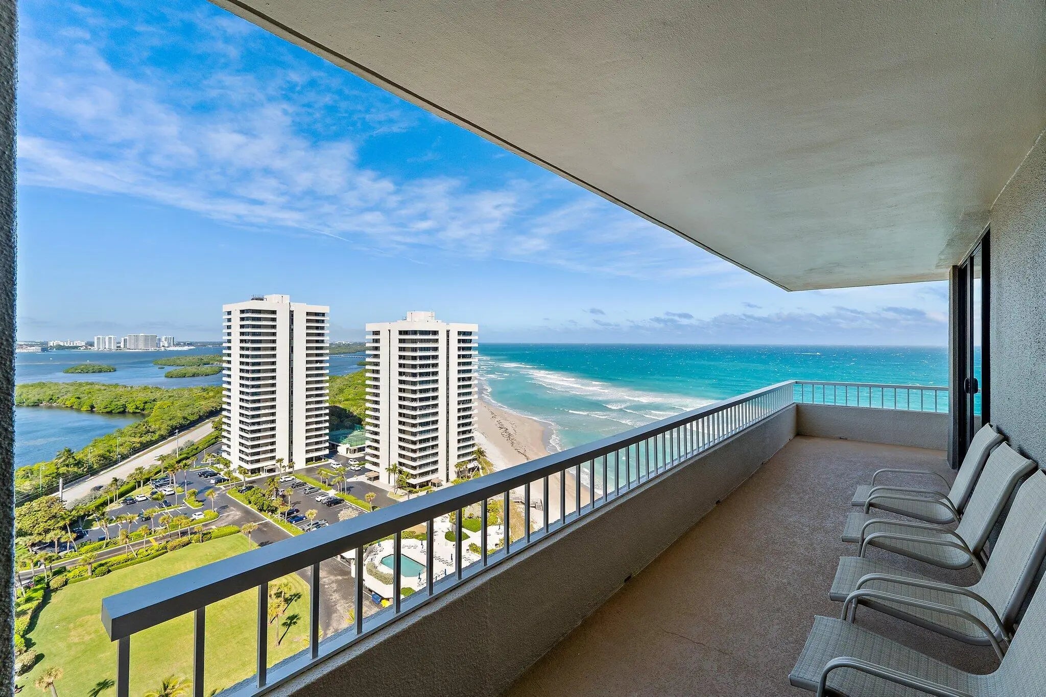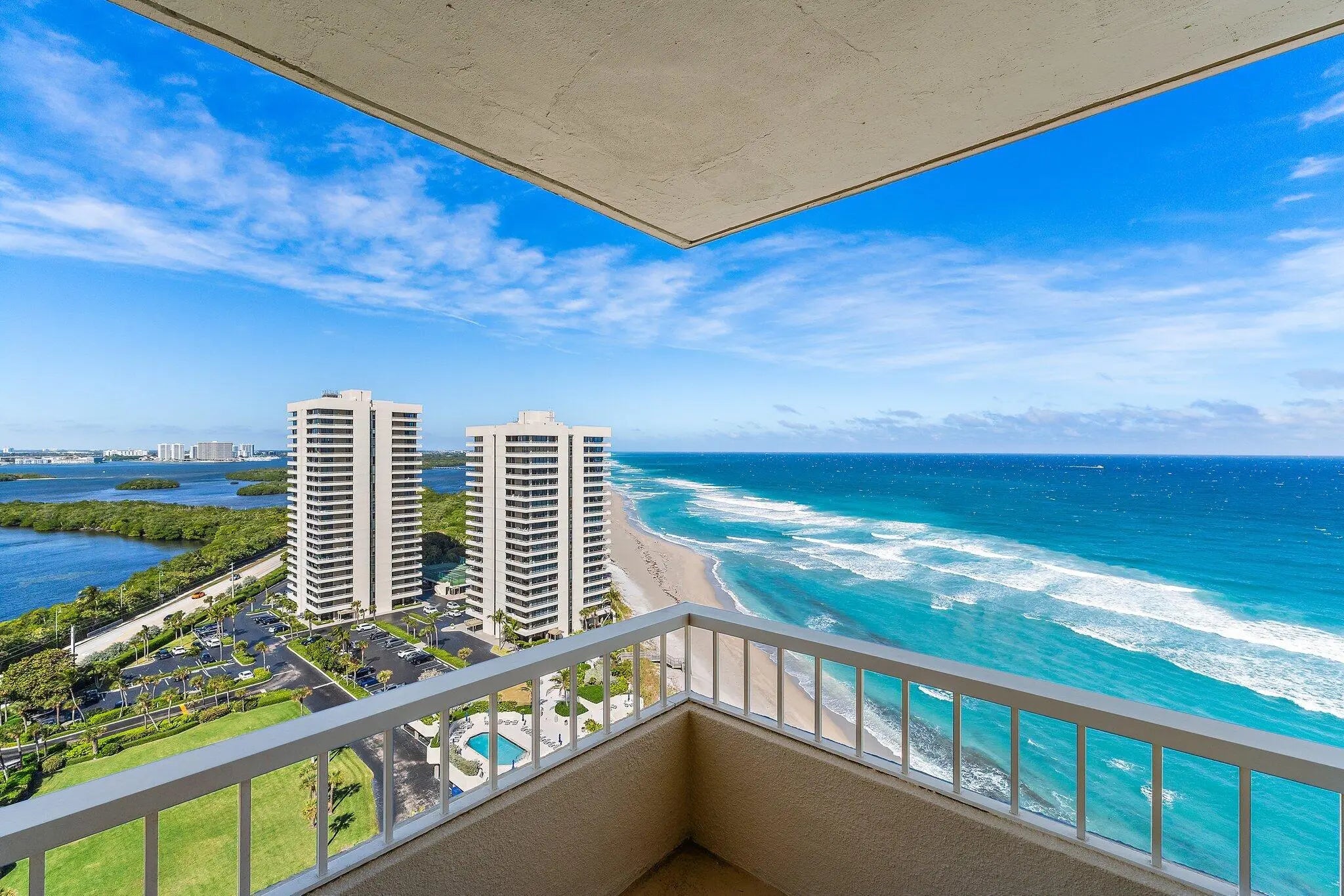 Perched high on the 19th floor of the coveted C-stack in the 300 Tower at Water Glades this 2-bedroom, 2-bath residence delivers sweeping, unobstructed views from ocean to Intracoastal—a rare and breathtaking perspective that defines true South Florida coastal living. Floor-to-ceiling glass spans the main living areas, flooding the space with natural light and framing endless blue Atlantic horizons. The open living and dining areas flow seamlessly to a spacious balcony, creating the perfect backdrop for sunrise coffee, evening cocktails, and the ever-changing ocean views below. The kitchen is thoughtfully positioned to capture water views while offering ample cabinetry, generous counter space, and a functional layout ideal for both everyday living and entertaining. Neutral tile flooring throughout the main areas enhances the bright, coastal feel of the residence. The primary suite is a tranquil retreat with direct balcony access, stunning ocean views, and an en-suite bath. A well-appointed guest bedroom also enjoys ocean views and separate balcony access, offering comfort and privacy for visitors or flexible use as a home office. Both bathrooms are spacious and well maintained, reflecting pride of ownership. Water Glades is a premier oceanfront community known for its resort-style amenities, including two oceanfront pools, tennis courts, fitness center, 24-hour manned security, on-site management, and direct access to miles of pristine sandy beach. Ideally located on Singer Island, just minutes from Palm Beach, world-class dining, shopping, golf, and marinas. A rare opportunity to own a high-floor, C-stack residence with panoramic water views in one of Singer Island's most desirable oceanfront communities.