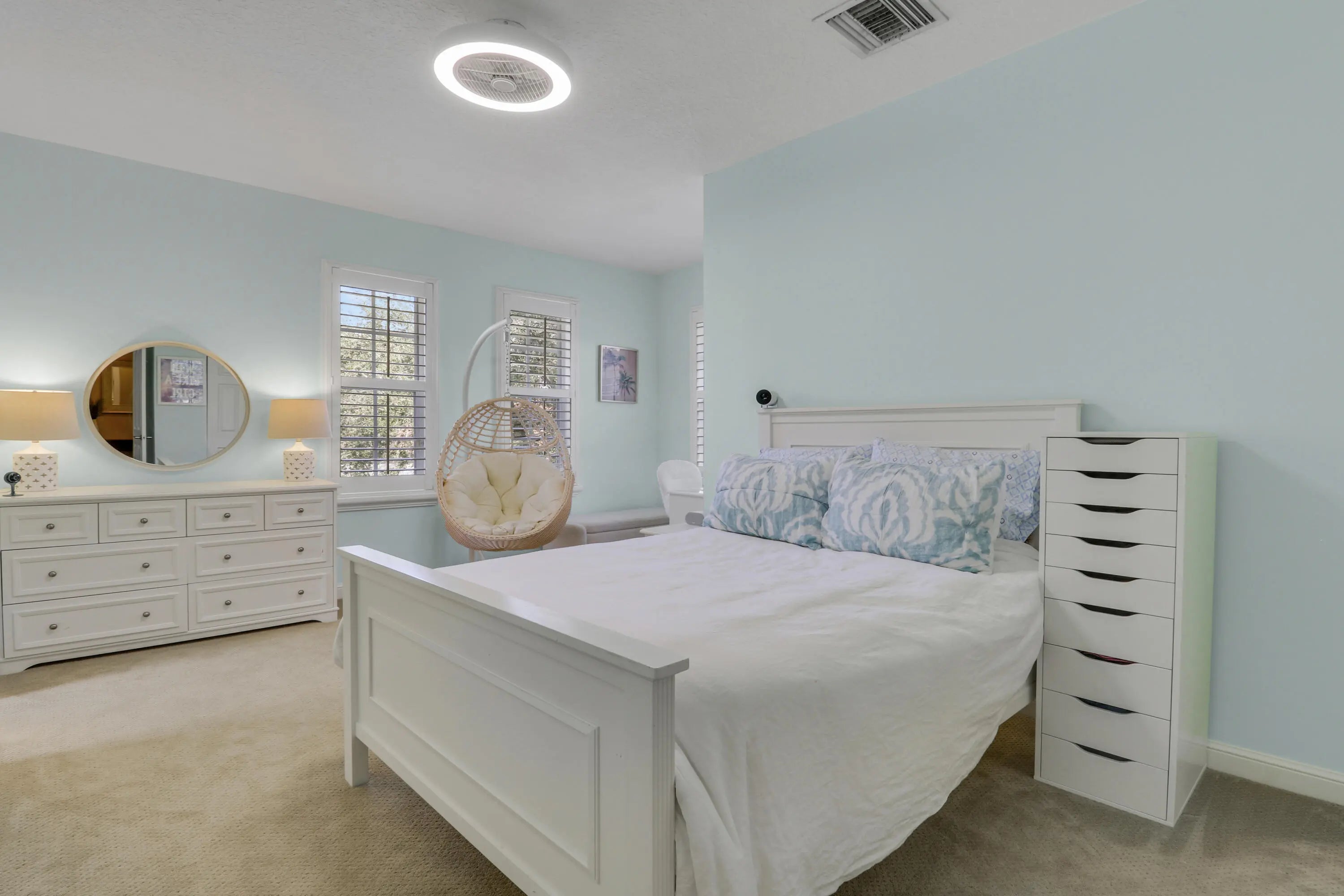 Located on one of Evergrene's premier streets, this custom 5 Bed / 3.5 Bath home offers a spacious layout perfect for everyday living. The first floor features a grand living room seamlessly integrated with a dedicated dining area, a cozy family room with elegant custom cabinetry, an enhanced kitchen with extended counter space, a separate private den/office, powder room, and a large screened lanai. The angular staircase leads to the 2nd level which includes a large master suite featuring its own private screened patio, 4 additional guest bedrooms, 2 guest bathrooms, and a spacious landing area that serves as a flexible loft-like space. Extra large lakefront lot featuring an extended paver patio and a brick fire pit. Upgrades include a new HVAC system and hurricane protection throughout.