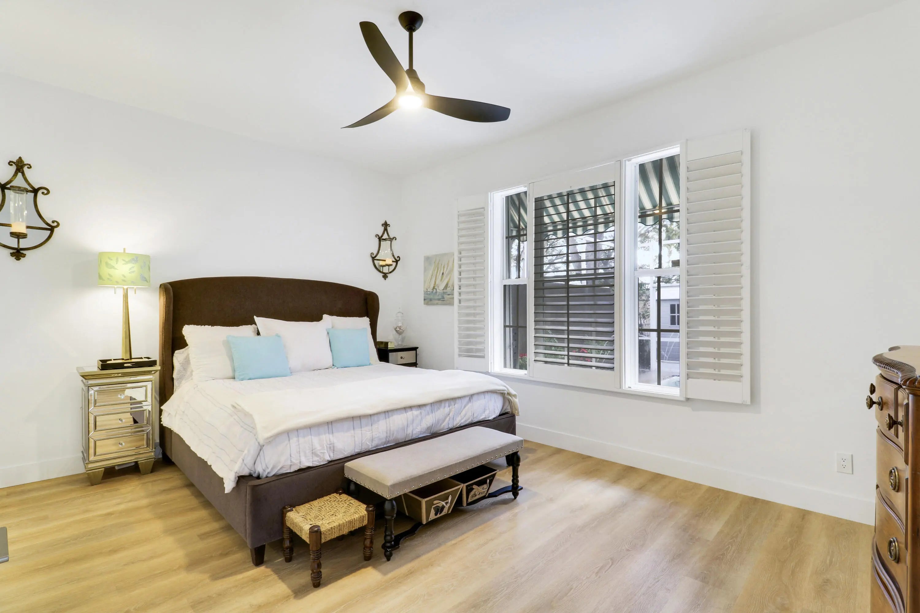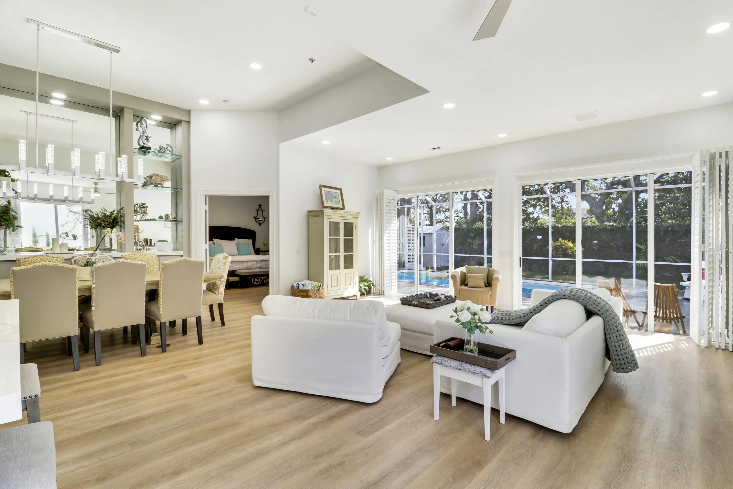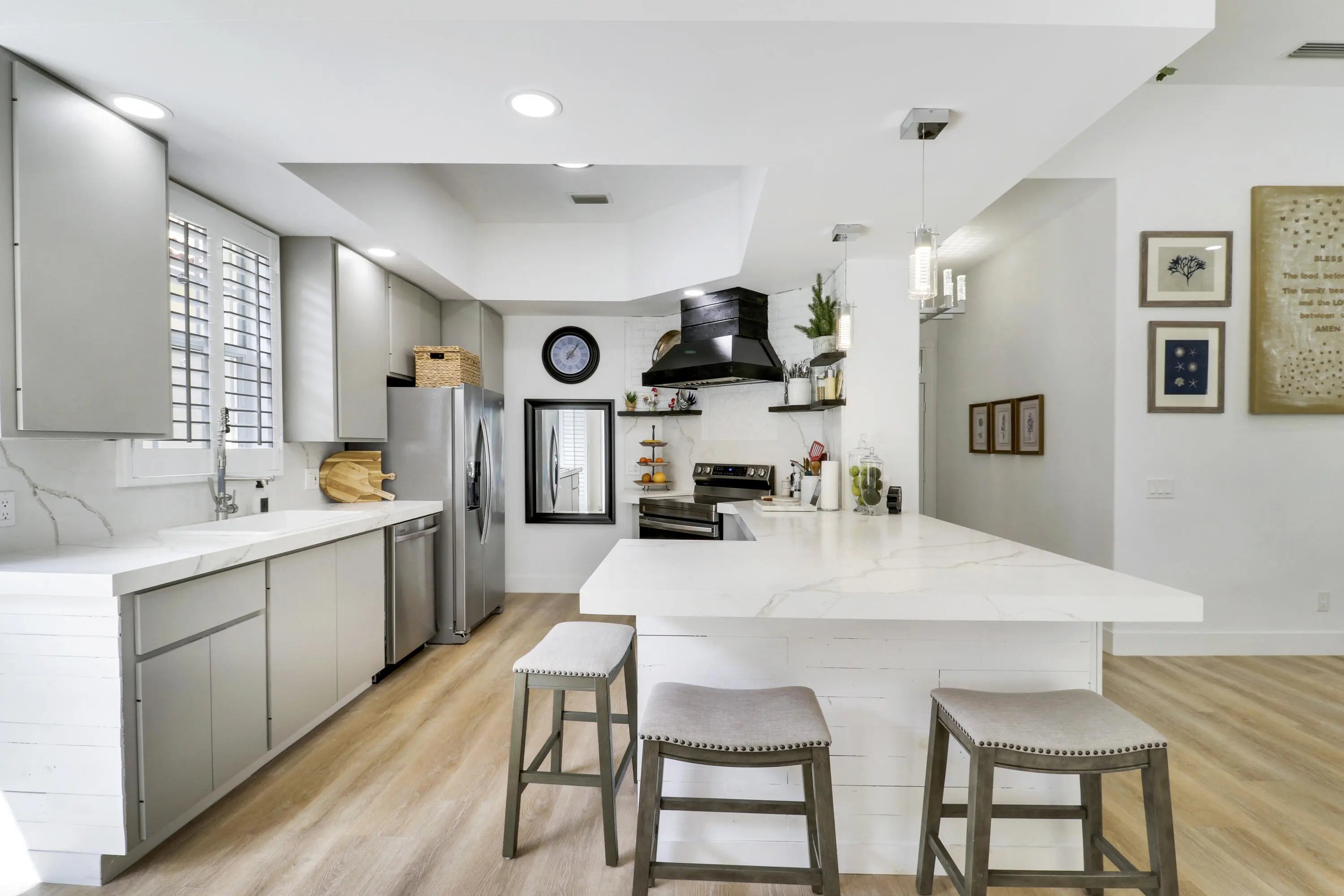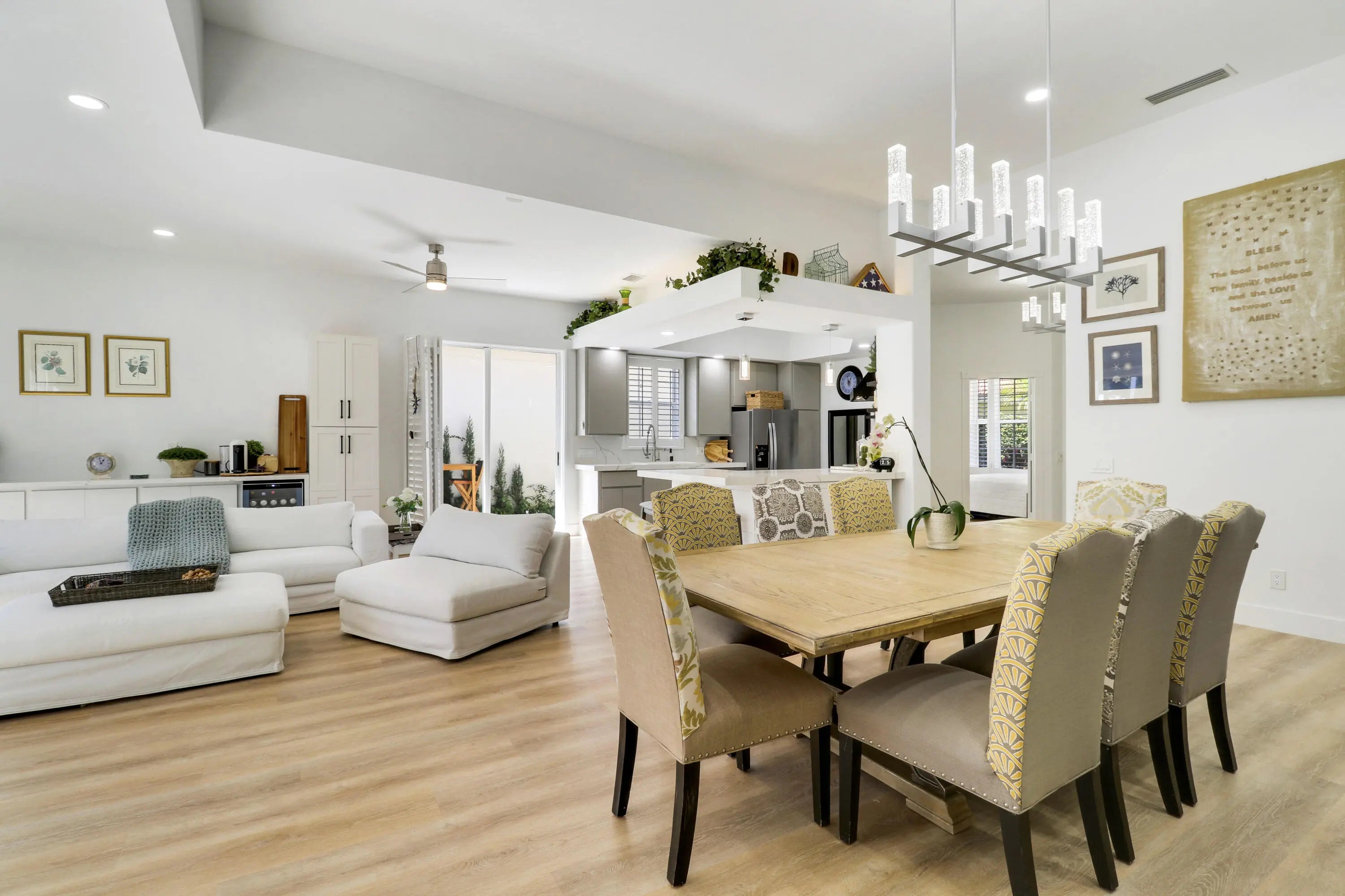 RARE 4-bedroom, 3 Full Bath, Fully renovated single-story residence in the prestigious Oaks East community of Palm Beach Gardens. This immaculate home features a contemporary open-concept design with modern flooring, soaring 12.5' ceilings, and a chef's kitchen with stainless steel appliances, quartz countertops, and pendant lighting. NO POLYBUTELENE! The private backyard offers a resort-style swimming pool ideal for year-round enjoyment. Recent upgrades include a 2024 A/C system with new vents and returns for improved airflow, dual-bulb UV and peroxide air purification system, and a 2025 tankless water heater. Truly move-in ready and a must see. Gardens Mall, Palm Beach State College within 2 miles. Enjoy Oaks Park nearby with walking paths and tennis courts.