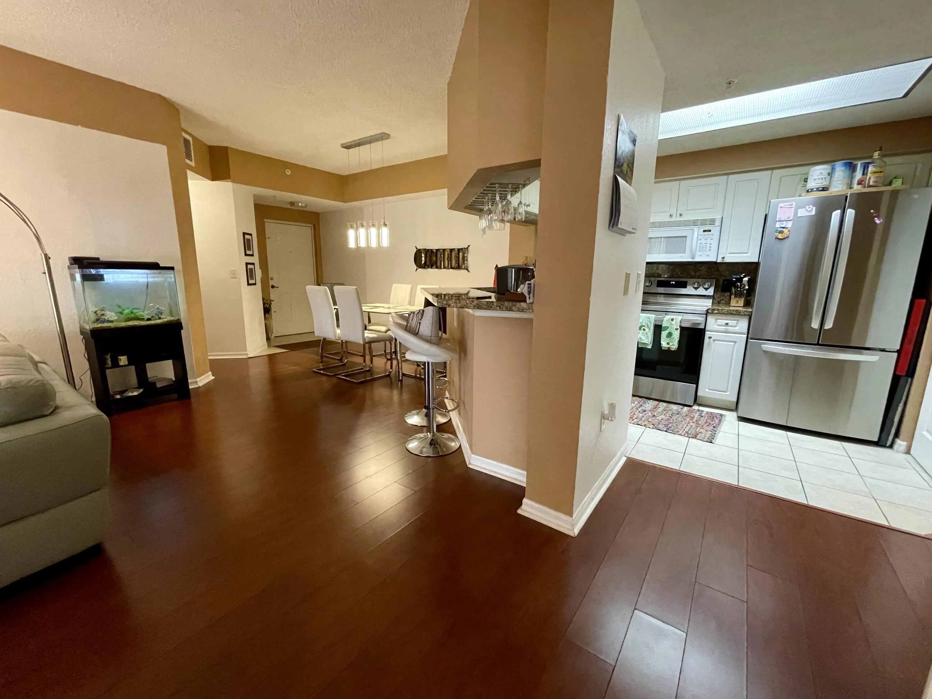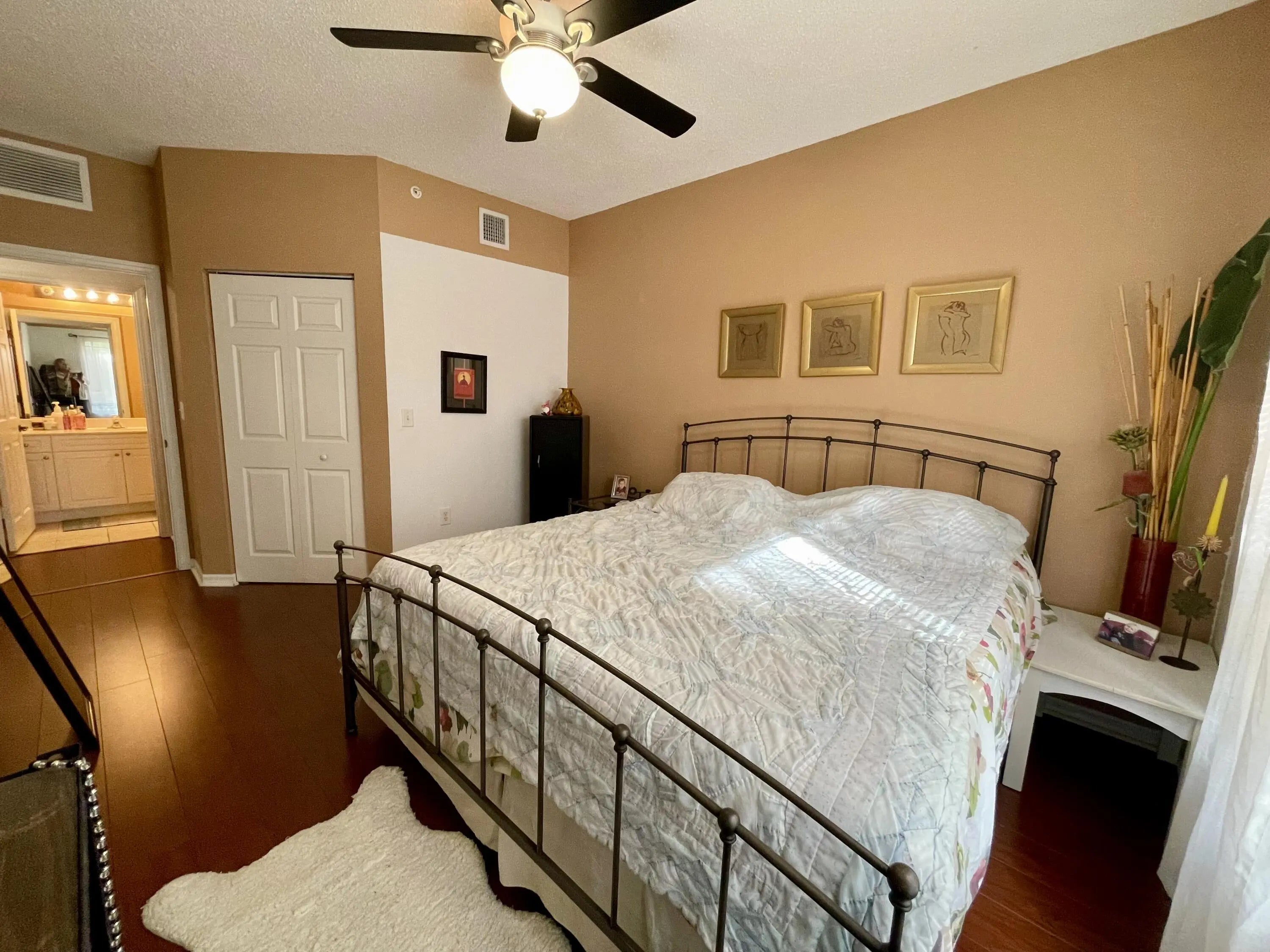 Great opportunity to buy a ground floor unit in San Matera. Enjoy resort style living in this 3 bedroom, 2 bath condo offering split floor plan, screened patio, wood floors and new kitchen appliances. San Matera amenities include clubhouse with pool, fitness center, sauna, steam room, billiards room, racquetball, tennis and pickleball. Prime location adjacent to the Gardens Mall with abundant dinning opportunities and quick access to PBI.