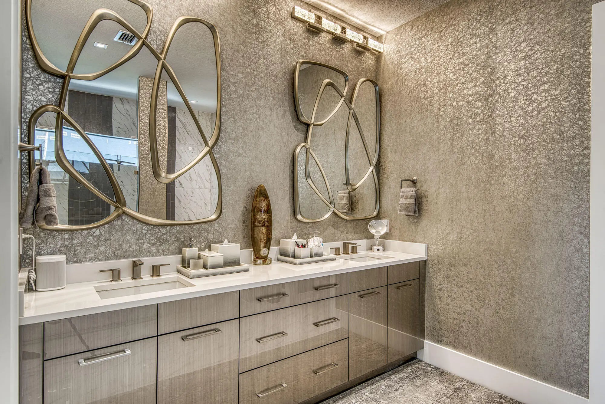 A CATEGORY OF ONE! Welcome to a modern masterpiece in Artistry Palm Beach, with access to top amenities and proximity to world-class dining, shopping, and beaches. With 3,162 square feet under air, this residence has been thoughtfully curated, from the highest-tier upgrades on a prime lake-view lot to the exquisite interiors crafted by LA Design Group. Custom Jordan cabinetry, Swarovski-accented master closet, designer ceilings, and premium finishes elevate the home's elegance. Smart home technology includes two Carrier Infinity SEER 24 HVACs, a Rinnai tankless water heater, an integrated Sonos sound system, Samsung Frame TVs, and a full-home security system with 10 CCTV cameras, digital locks, and environmental monitoring.