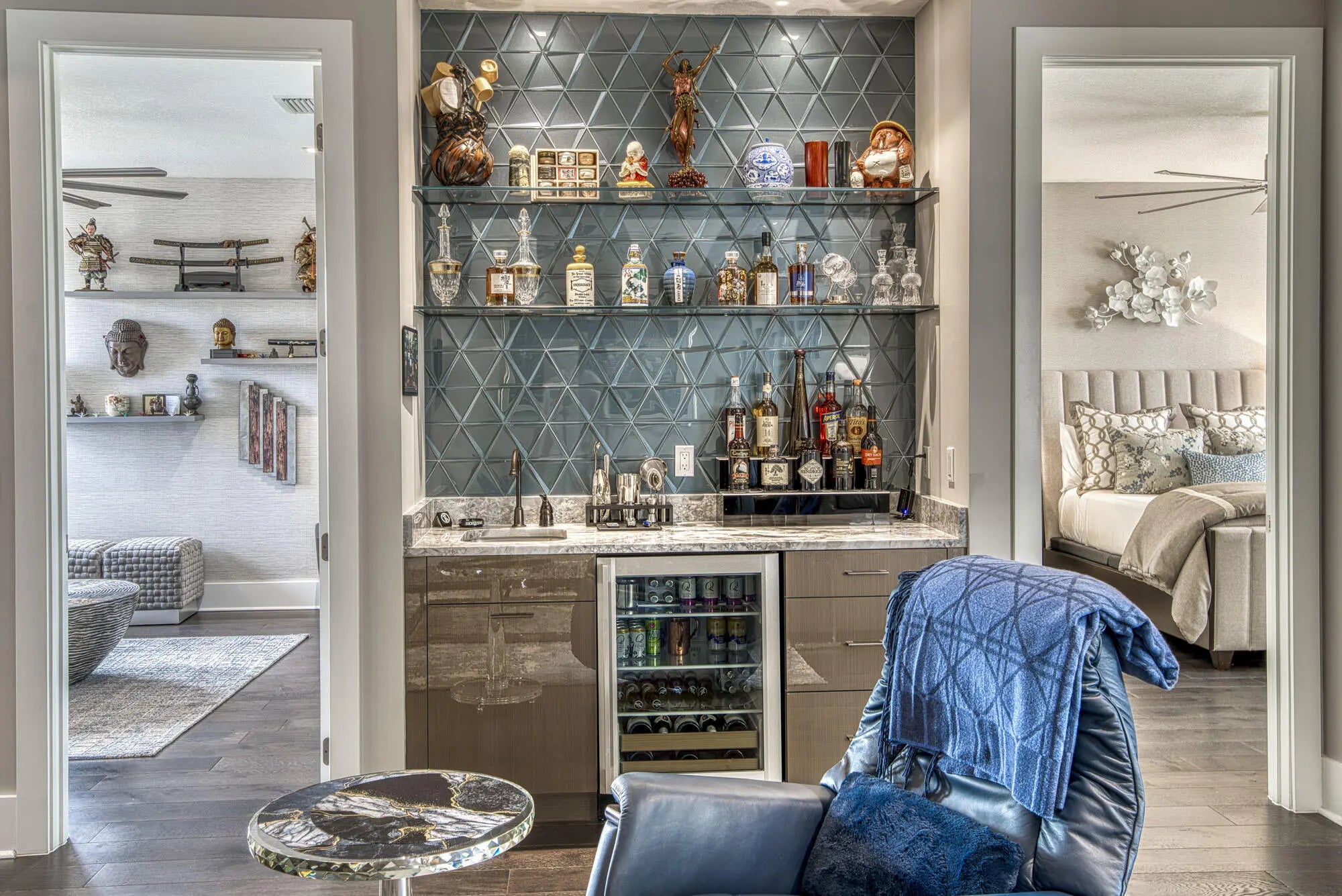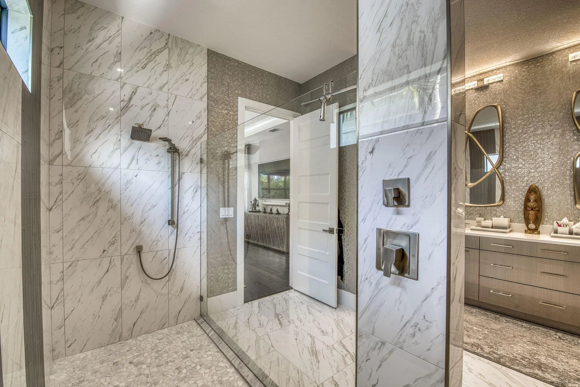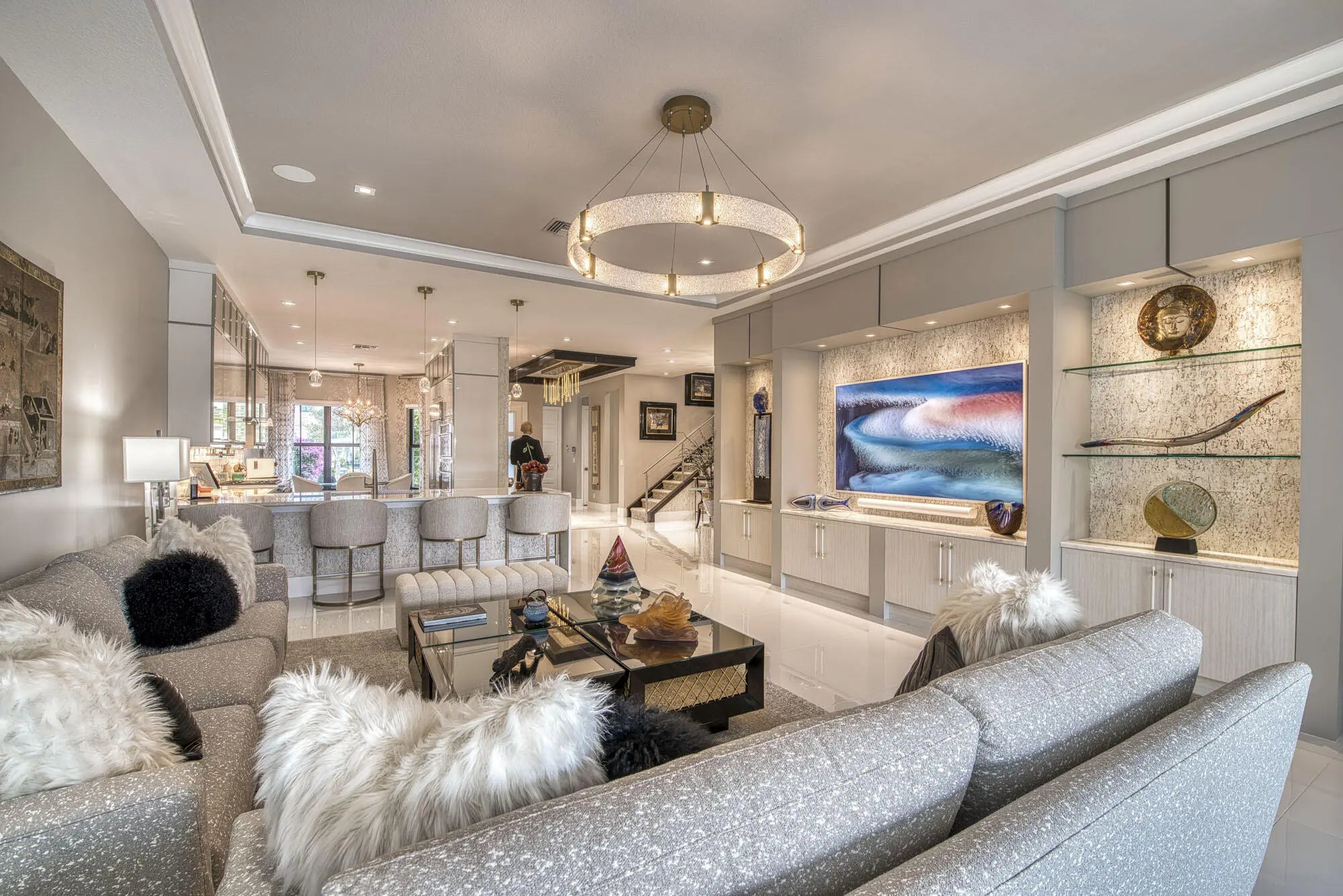 Bar, Built-in Features, Entrance Foyer, High Ceilings, Walk-In Closet(s), Closet Cabinetry, Custom Mirrors, Upstairs Living Area, Storage