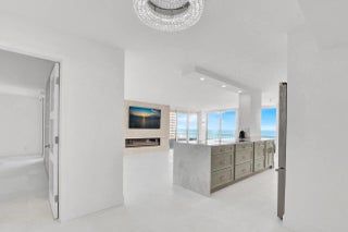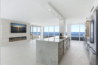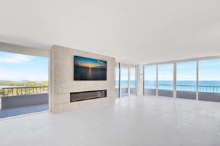 Experience luxury living that will exceed your expectations! Panoramic oceanfront living in one of the most desired buildings and stacks at Water Glades! Experience a lavishly designed & decorated 7th floor residence where sunrise and sunset are viewed from expansive floor-to-ceiling high-impact glass. This 2-bedroom, 2-bathroom condo offers the best of both worlds, with breathtaking oceanfront and intracoastal views. The total custom-designed and completely renovated apartment includes only the finest quality materials, built by one of the premier builders in the area. The residence, completed with Level 5 finishes throughout, features honed snow-white marble floors, a striking natural coral stone fireplace, and walls of floor-to-ceiling impact glass and sliders opening to a wrap-around balcony with direct ocean and intercoastal views. The living space is anchored by a rare natural coral stone fireplace, creating an inviting focal point that is almost unheard of in oceanfront condos. The kitchen is highlighted by White Mystery marble countertops, a Carrera marble backsplash, and custom glazed cabinetry, complemented by a full suite of Bosch appliances. The primary suite offers a custom closet system and a spa-inspired bathroom with Crystallo countertops, double sinks, custom cabinetry, and a white glass stone tile shower. The guest bathroom mirrors the same elevated design with Crystallo stone in the shower, counters, double sinks, and custom cabinetry. Additional upgrades include electric blinds throughout, a full-size Electrolux washer/dryer, 3 Sony televisions already in place, and custom-made barstools. Water Glades is located on the preferred north end of Singer Island, directly on the ocean, spanning over 11+ acres and 1,025 feet of private beach, and beautifully manicured grounds resting beside MacArthur State Park, offering privacy and protected natural beauty. Minutes from Palm Beach Gardens, PGA Boulevard, Worth Avenue, and Palm Beach International Airport, it delivers elevated privacy, polished ease, and effortless access to everything that matters. Residents enjoy two heated pools, private beach access, an oceanfront clubhouse with a social room, fitness center, library, tennis and pickleball courts, on-site management, and a 24-hour manned guard gate in a secure oceanfront community. Unit comes with a Covered Parking Space.