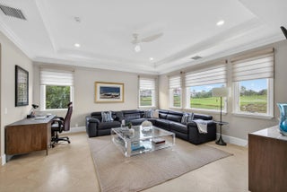 An exceptional opportunity to own a Golf Cottage in one of Palm Beach Gardens' most prestigious communities. Perfectly positioned with breathtaking views of the 18th hole and clubhouse, this is widely regarded as the premier location in the neighborhood - ideal for watching the dramatic finish of any golf tournament. The home has been extensively remodeled in high-end upgrades. Highlights include a dramatically expanded gourmet kitchen - more than twice the size of the original - a completely redesigned primary bathroom featuring a spacious walk-in shower; and a newly added laundry/utility room. The beautifully appointed family room showcases a custom built-in entertainment center and bar, complemented by an updated powder room. New breakfast bar on 2nd floor and newly polished marble flooring. Additional enhancements include new lighting, plumbing fixtures, and custom window treatments. Recently painted and impeccably maintained, the home is truly move-in ready. Ownership also includes a rare and exclusive membership opportunity to Old Palm Golf Club, available only to Golf Cottage owners.