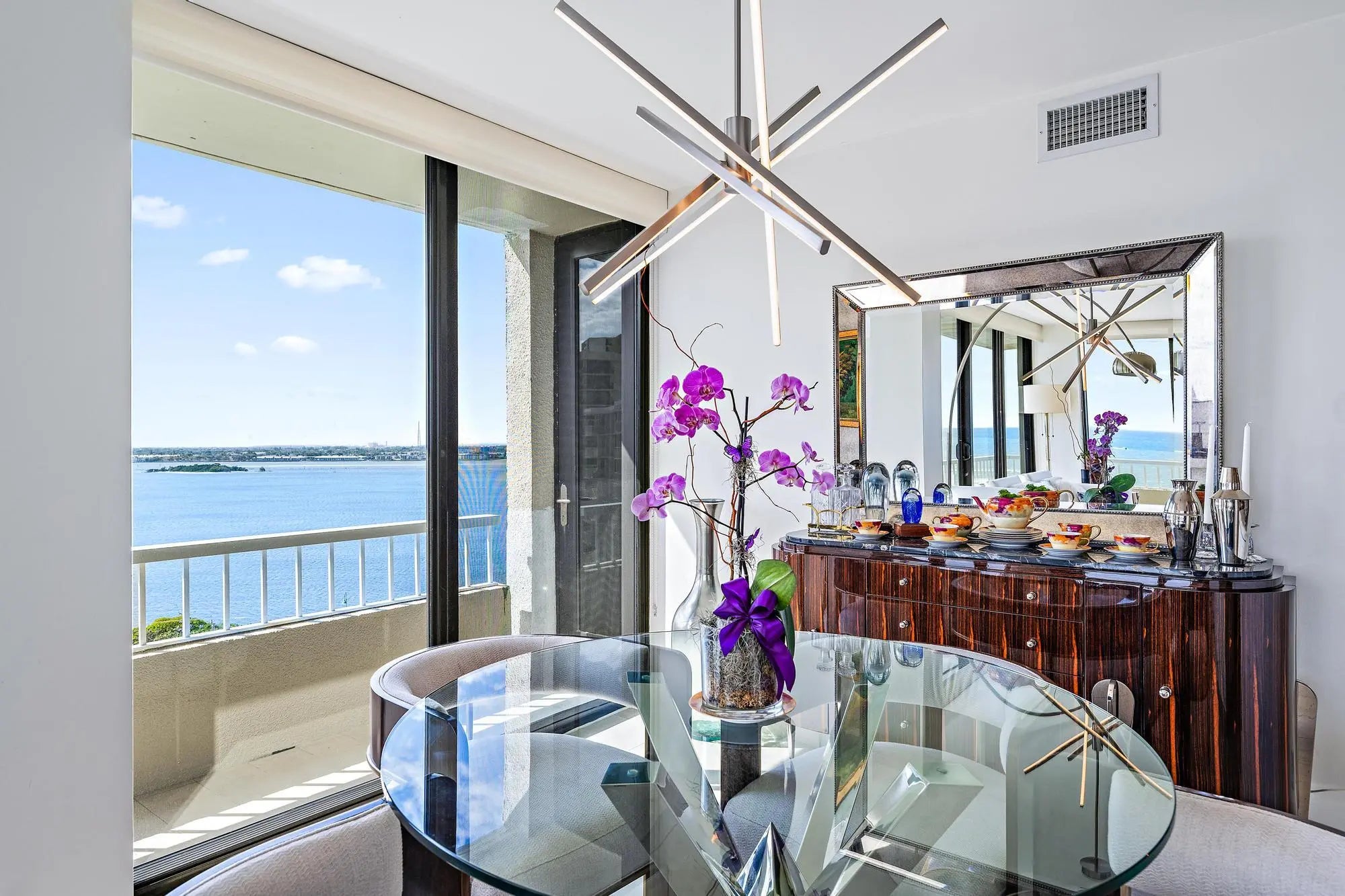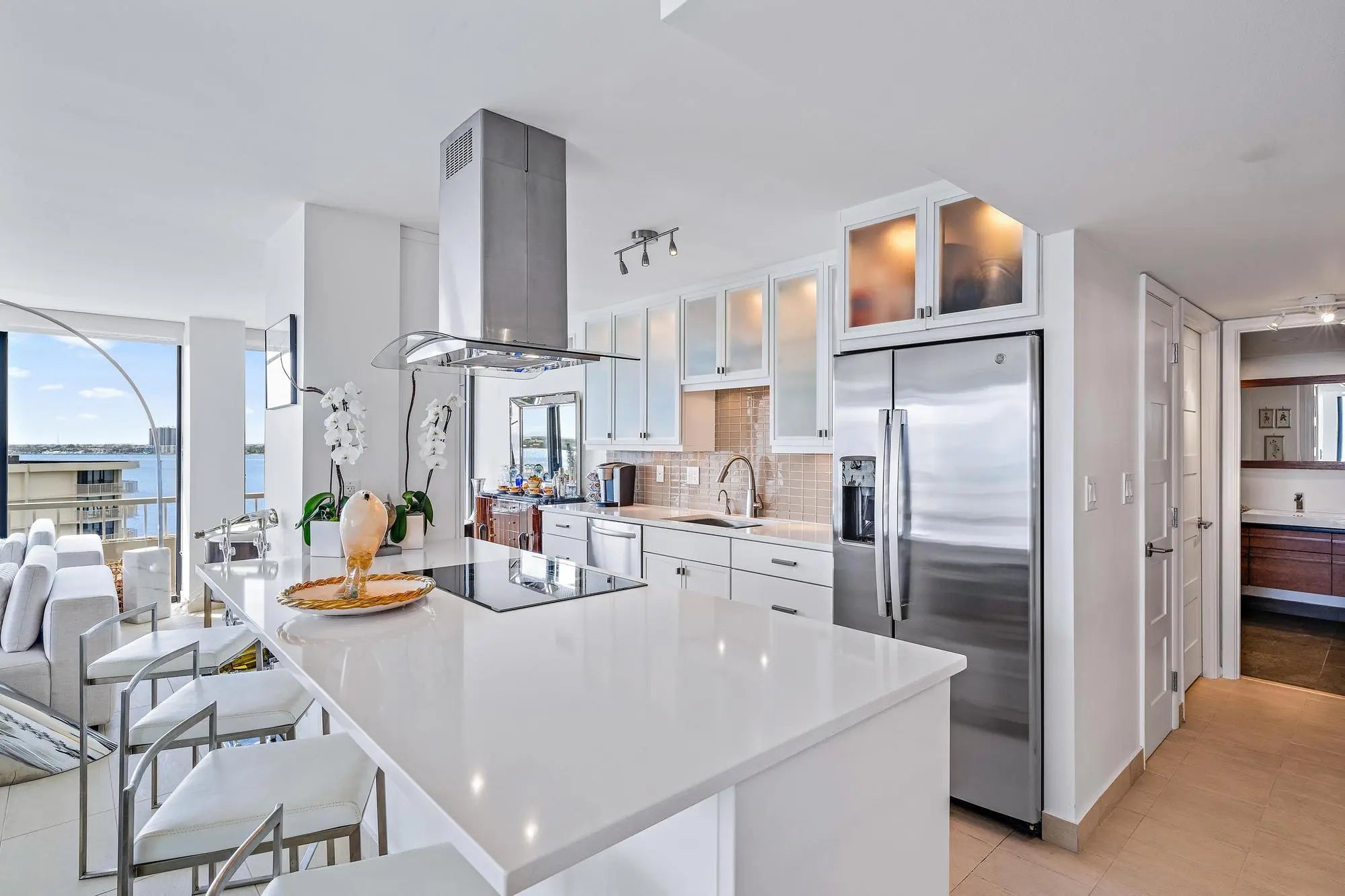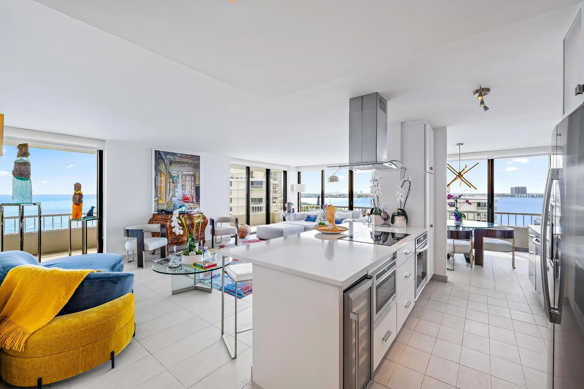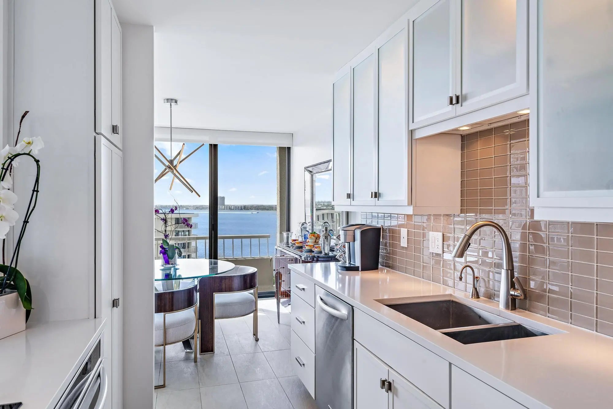Wake up to sunrise views and unwind each evening with sunsets over the Intracoastal in this front-row coastal residence. Located in the gated, oceanfront community of Water Glades on Singer Island, this beautifully renovated condo offers sweeping views of the ocean, Intracoastal, and city skyline. Spanning over 1,400 square feet, the residence features two bedrooms and two full bathrooms with a bright, open layout and tile flooring throughout. Expansive sliding glass doors fill the space with natural light and frame stunning water views. The condo is curated with some furnishings negotiable (minus exceptions) for an easy move-in experience. Impact-rated windows throughout the residence provide both security and peace of mind, complemented by thoughtful upgrades including a new bidet, advanced water filtration with hot and cold systems, and newer appliances. The renovated kitchen includes white cabinetry, quartz countertops, stainless steel appliances, a wine cooler, newer hot water on demand at the kitchen sink, and a large island that opens to the living areaperfect for everyday living and entertaining. Step onto the covered balcony to enjoy ocean breezes, passing boats, and vibrant sunsets. The primary suite offers a peaceful retreat with a sitting area, spacious closet, and spa-style bathroom with dual vanities, glass-enclosed shower, and soaking tub. The guest suite is equally inviting and generously sized, easily accommodating family and guests. Water Glades is a premier, 24-hour manned-gated oceanfront community offering a refined, low-maintenance lifestyle. Residents enjoy a newly renovated lobby, two resort-style pools, a fitness center, putting green, tennis courts, shuffleboard, a well-appointed library and community rooms, and one parking space. Nestled alongside a preserve, the property offers a sense of privacy and tranquility rarely found on Singer Island. Ideally situated just minutes from world-class waterfront dining, upscale shopping, and entertainment, with convenient access to PGA Boulevard, this residence places the very best of coastal South Florida living within reach. Endless outdoor pursuitsfrom boating and fishing to golfare right at your fingertips. The building has successfully completed its 30-year recertification, including new balconies and structural repairs, with spalling completed and painting scheduled by the association. All current assessments have been paid in full, with no known pending assessments, providing confidence and long-term value for the next owner.