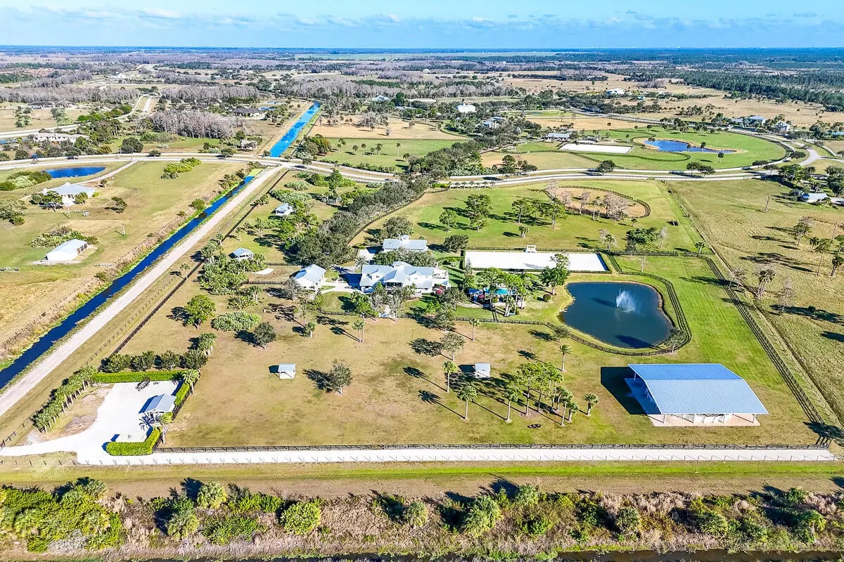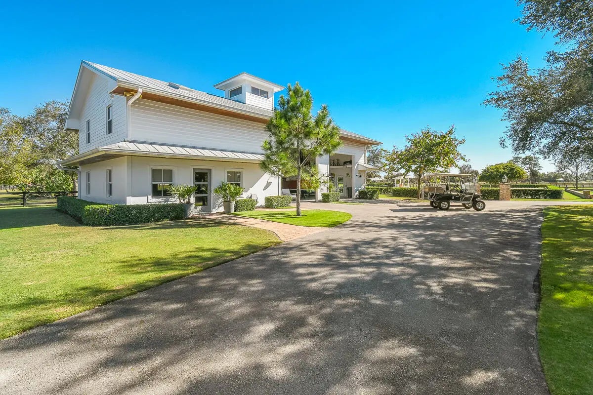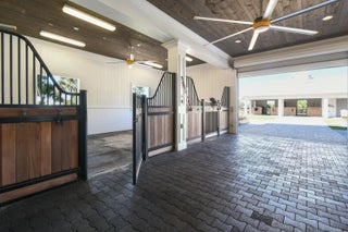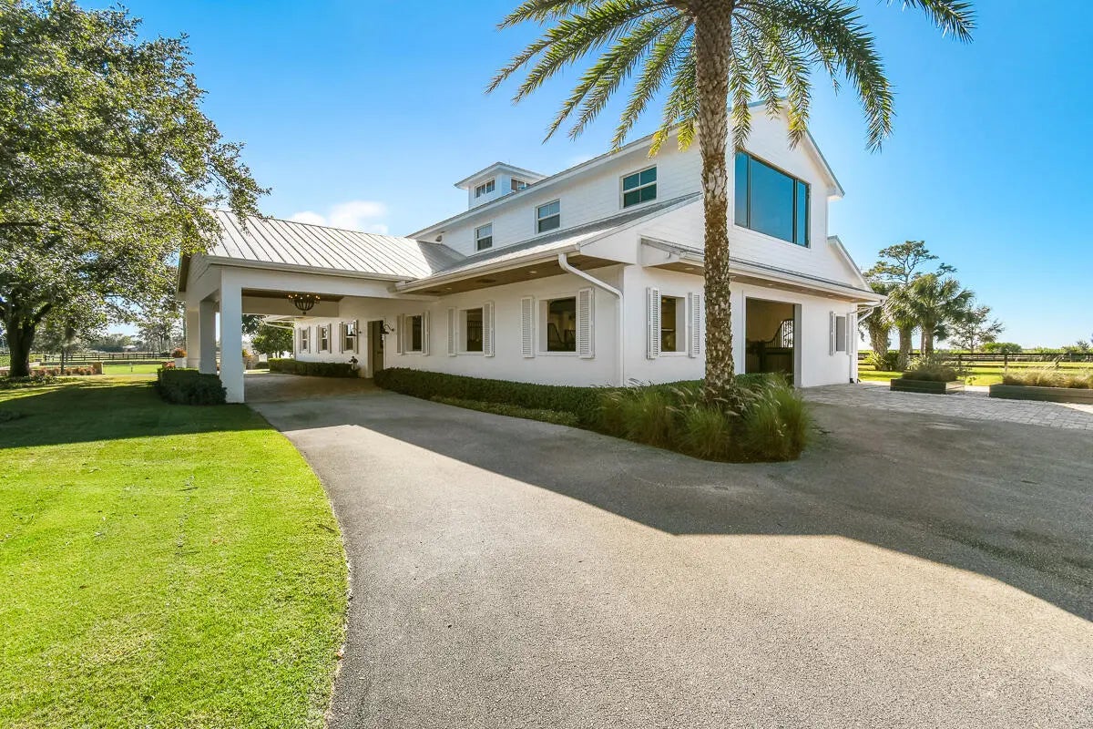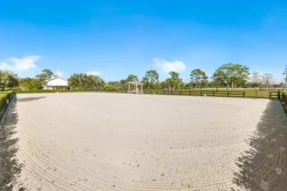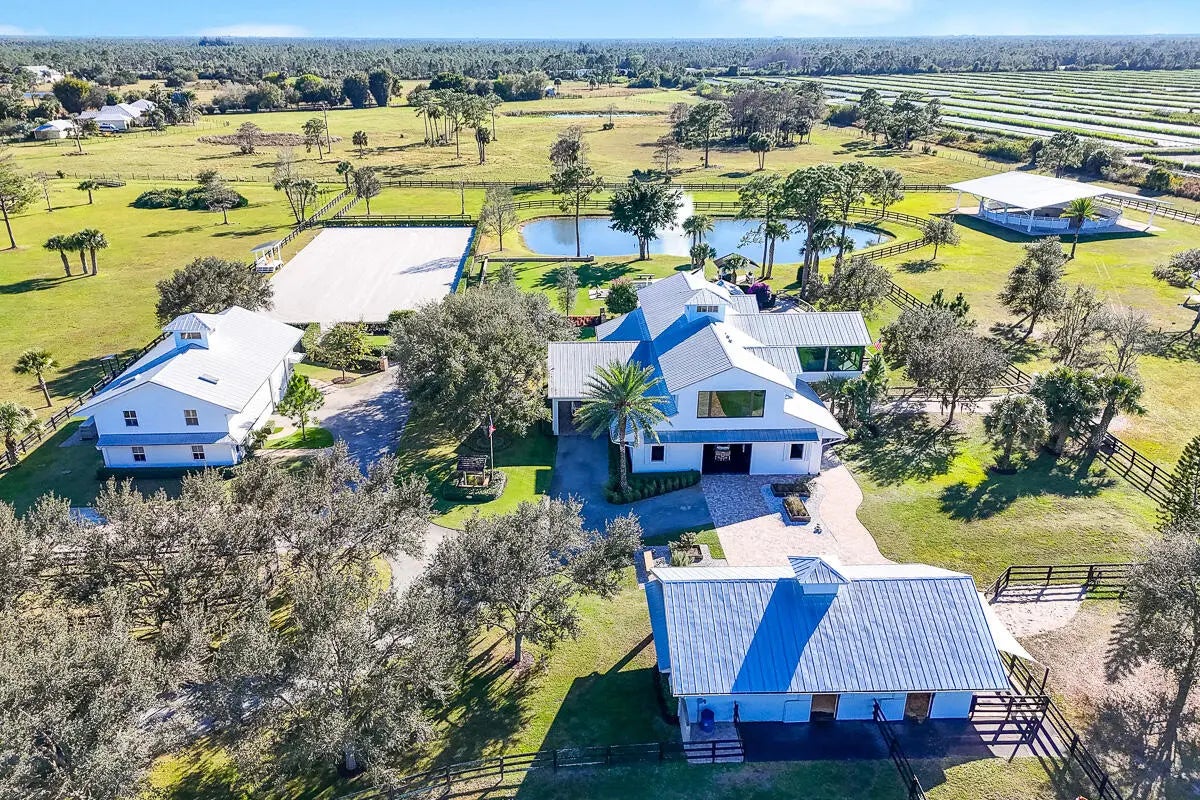 Private Gated Luxury Equestrian Estate West of Hobe Sound. Minutes to beaches, dining, shopping, I-95, Apogee Golf Club, Atlantic Fields, and The Ranch. Trailside Community is gated and features PVC white fencing for every estate throughout. This estate welcomes you with an Oak-lined long driveway with modern teak gates, keypad entry and scenic views in every direction. This estate features a total of 3 Bedrooms, 3.5 baths with open floor plan, gourmet kitchen, gas range, walk-in pantry, bar area, dining room, sitting room, gym with steam shower, outdoor shower, walk-in primary closet, large primary bath, two patios off main living area, all-glass modern living room, and expansive outdoor entertaining areas. Resort-style outdoor amenities include 30x60 pool with built-in bench, fire pit, gas lanterns, pizza oven, brand-new grill, Green Egg, and 500-gallon propane smoker. Exceptional equestrian facilities: regulation irrigated dressage arena with premium footing and drainage, observation area; covered extra-large round pen with synthetic footing and irrigation; fenced bridle and walking path around entire property; large grassy paddocks and fields. CBS construction Barns with Eight 15x15 stalls, Big Ass Fans, fly system, hurricane rolldown shutters, fire system, rubber aisleways, 2 wash/grooming stalls, tack room, feed room, hay room, garden area, and groom apartment with full kitchen. Additional features: regulation Bermuda grass croquet court, clean pond with fountain, fenced dog area, whole-farm 60KW generator, RO pumphouse with thousand-gallon water tanks, large circular porte-cochere driveway with guest parking, separate employee entrance and parking, covered equipment area, fuel tank, multiple storage sheds, and extra-large CBS garage suitable for car/boat/RV storage with living area and gym. A rare turnkey offering combining luxury living and professional equestrian infrastructure.