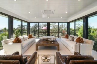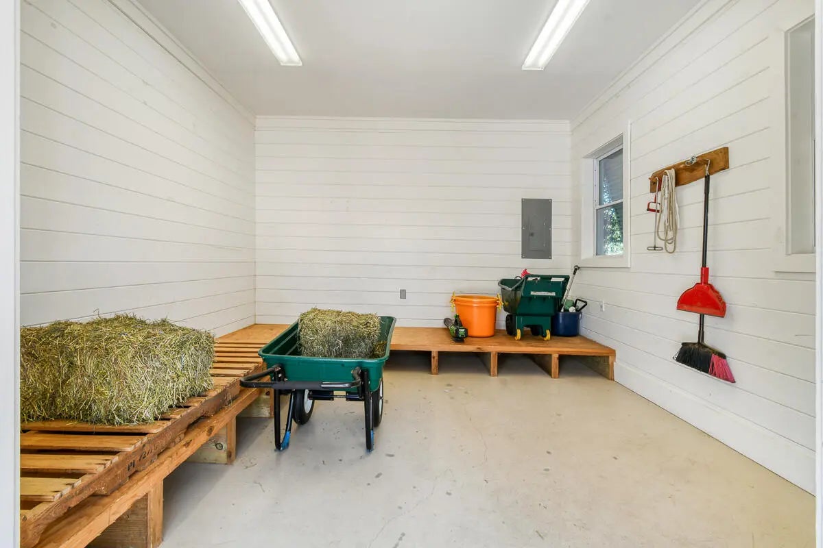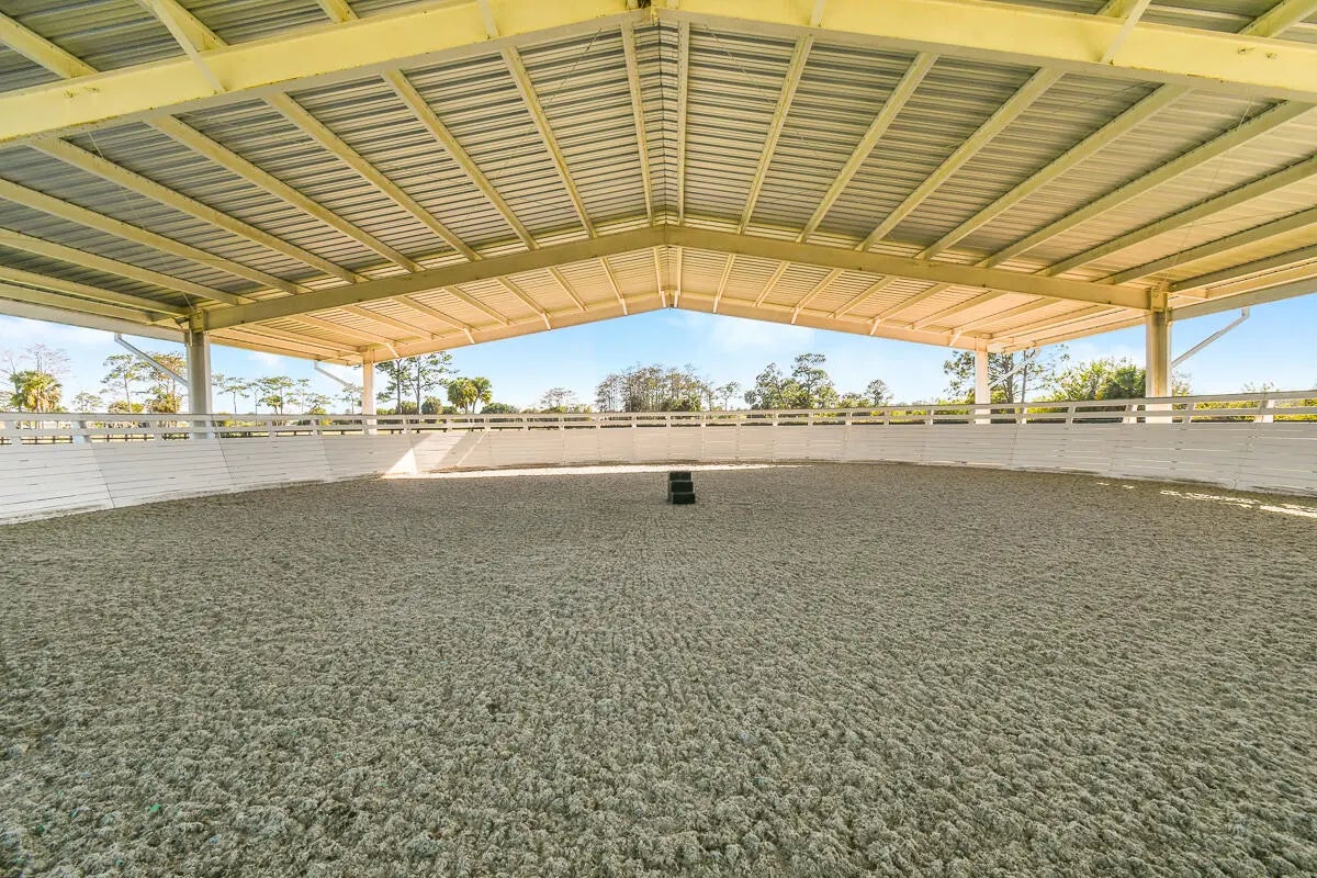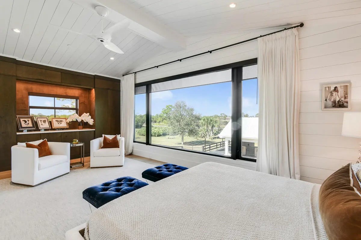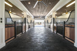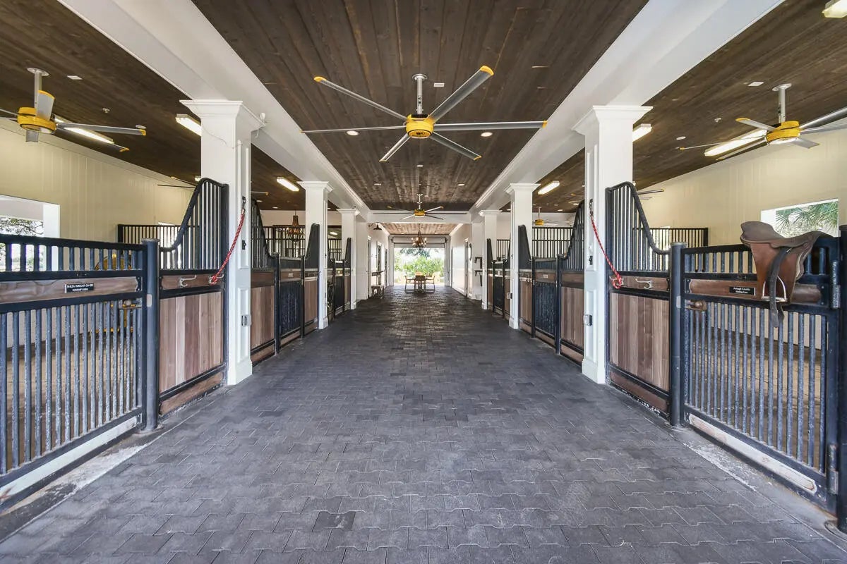 Private Gated Luxury Equestrian Estate West of Hobe Sound. Minutes to beaches, dining, shopping, I-95, Apogee Golf Club, Atlantic Fields, and The Ranch. Trailside Community is gated and features PVC white fencing for every estate throughout. This estate welcomes you with an Oak-lined long driveway with modern teak gates, keypad entry and scenic views in every direction. This estate features a total of 3 Bedrooms, 3.5 baths with open floor plan, gourmet kitchen, gas range, walk-in pantry, bar area, dining room, sitting room, gym with steam shower, outdoor shower, walk-in primary closet, large primary bath, two patios off main living area, all-glass modern living room, and expansive outdoor entertaining areas. Resort-style outdoor amenities include 30x60 pool with built-in bench, fire pit, gas lanterns, pizza oven, brand-new grill, Green Egg, and 500-gallon propane smoker. Exceptional equestrian facilities: regulation irrigated dressage arena with premium footing and drainage, observation area; covered extra-large round pen with synthetic footing and irrigation; fenced bridle and walking path around entire property; large grassy paddocks and fields. CBS construction Barns with Eight 15x15 stalls, Big Ass Fans, fly system, hurricane rolldown shutters, fire system, rubber aisleways, 2 wash/grooming stalls, tack room, feed room, hay room, garden area, and groom apartment with full kitchen. Additional features: regulation Bermuda grass croquet court, clean pond with fountain, fenced dog area, whole-farm 60KW generator, RO pumphouse with thousand-gallon water tanks, large circular porte-cochere driveway with guest parking, separate employee entrance and parking, covered equipment area, fuel tank, multiple storage sheds, and extra-large CBS garage suitable for car/boat/RV storage with living area and gym. A rare turnkey offering combining luxury living and professional equestrian infrastructure.